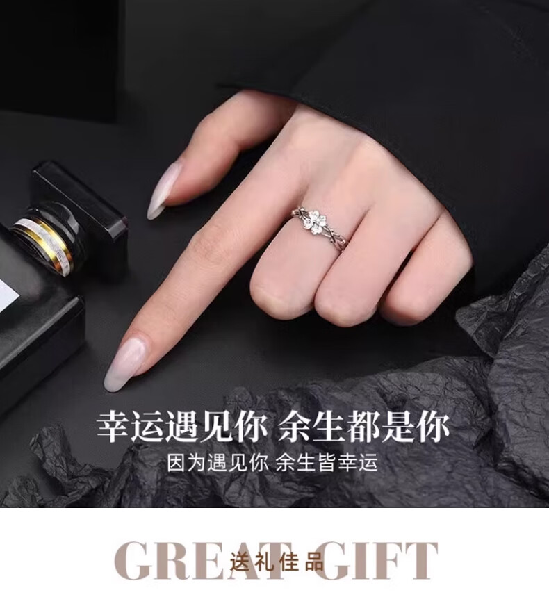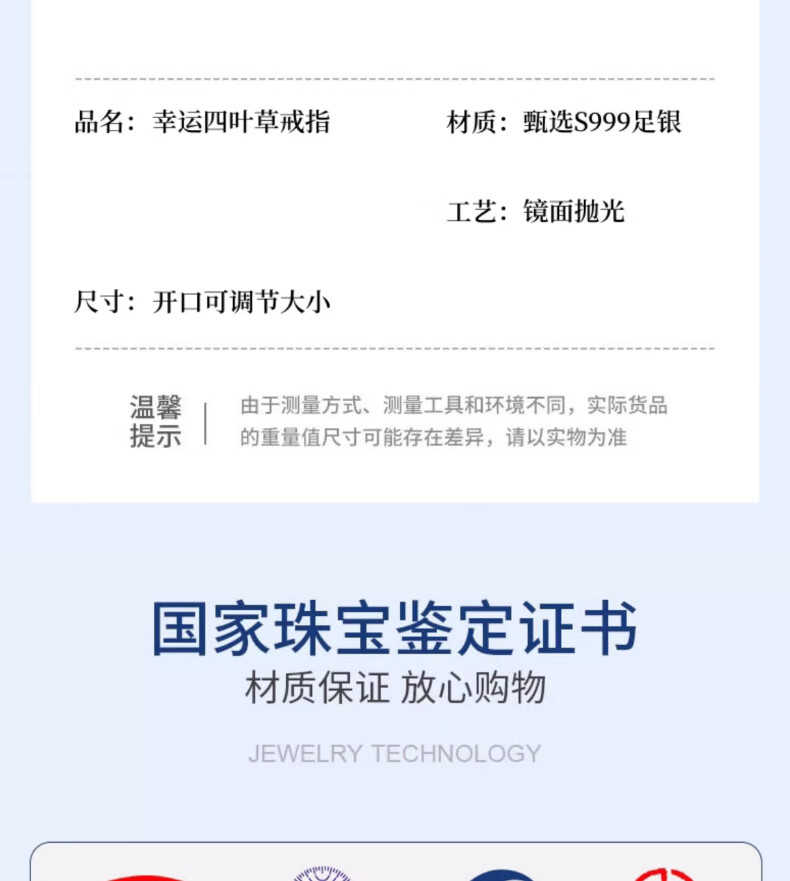 Xinshe S999 sterling silver ring women's four-leaf clover 2025 new light luxury niche design high-end birthday gift for girlfriend lucky four-leaf clover S999 pure silver ring