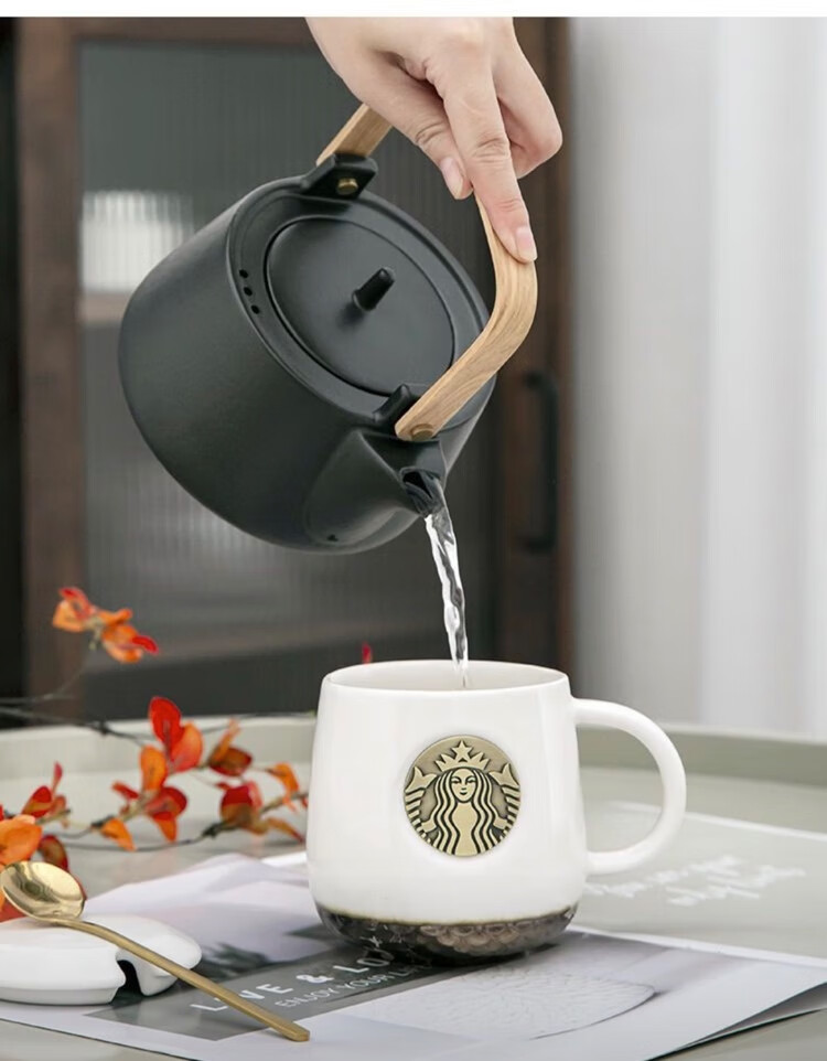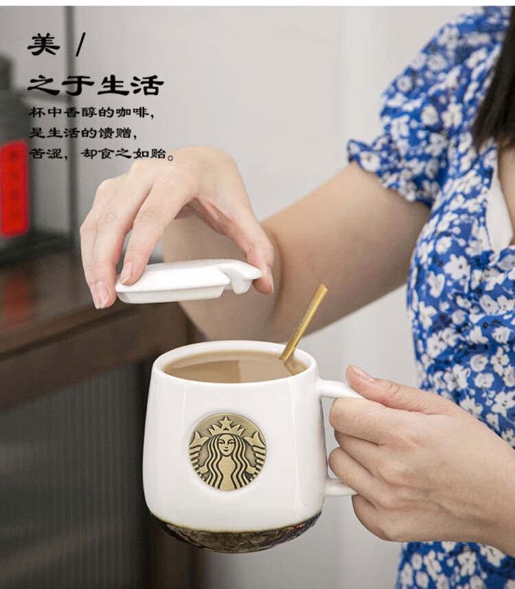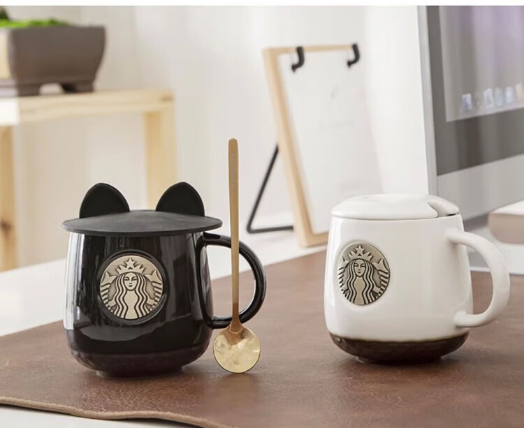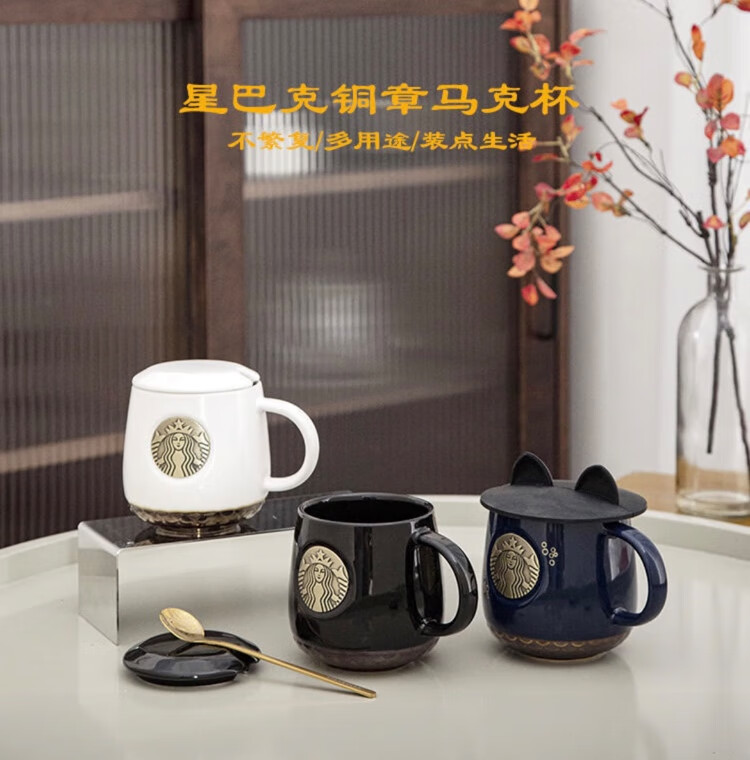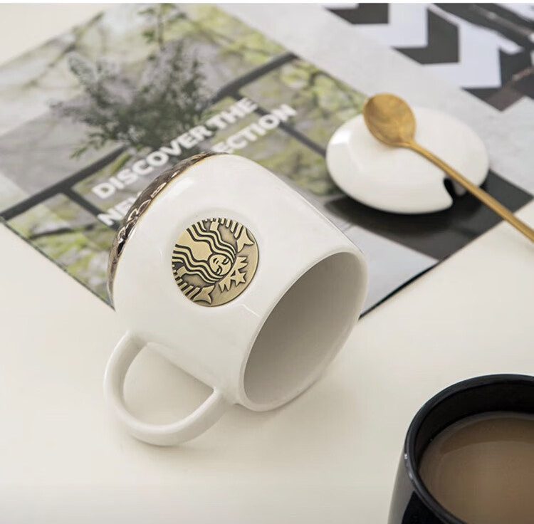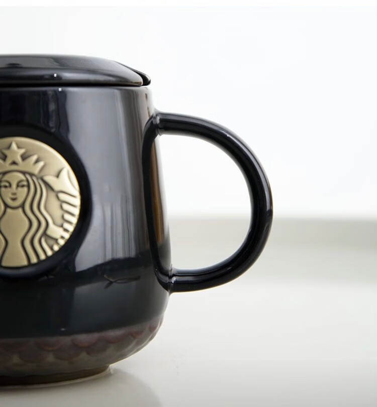 Starbucks classic black, red and white fish scale ceramic bronze mug, water cup, coffee cup, retro mermaid couple cup gift, blue single cup original box, free handbag