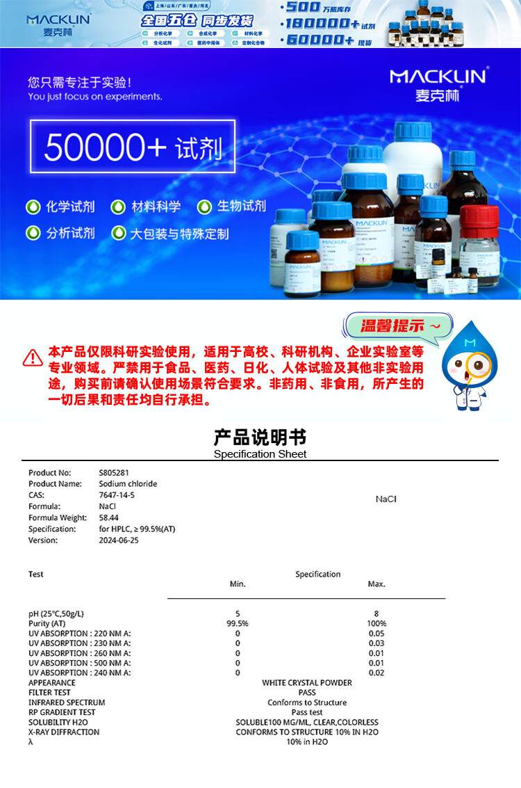 Macklin sodium chloride CAS 7647-14-5 S805281-5kg