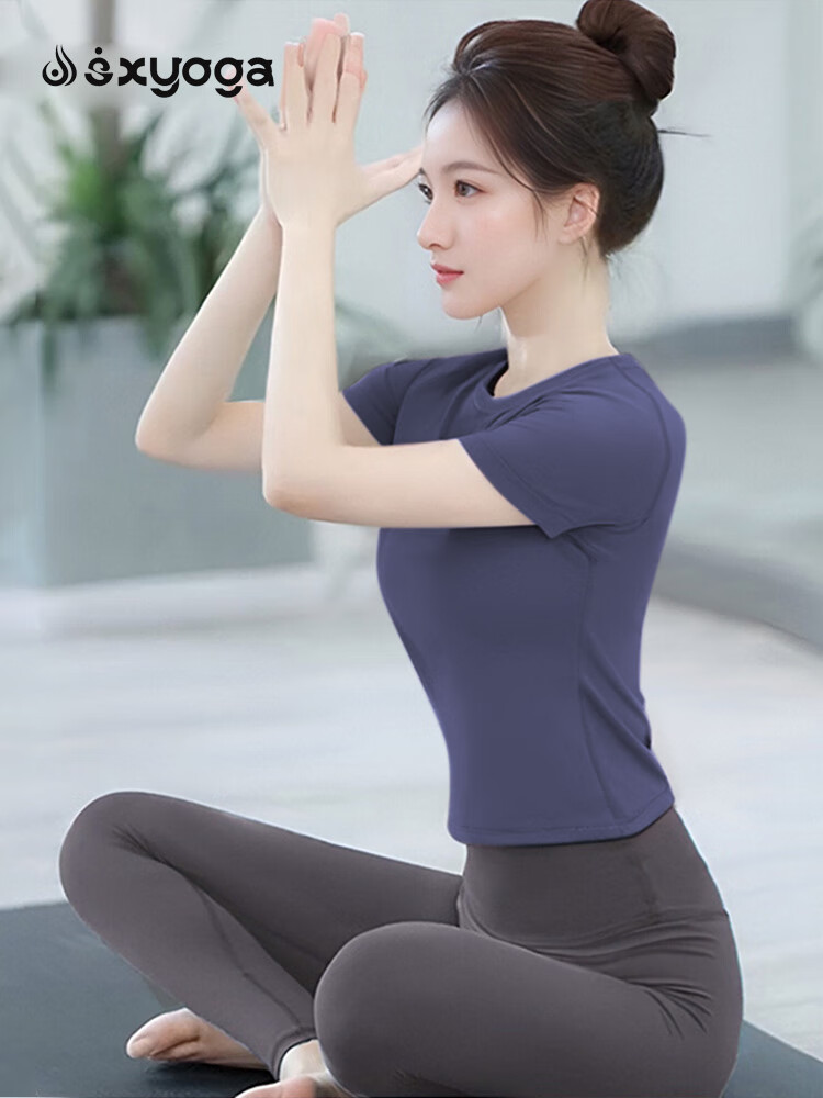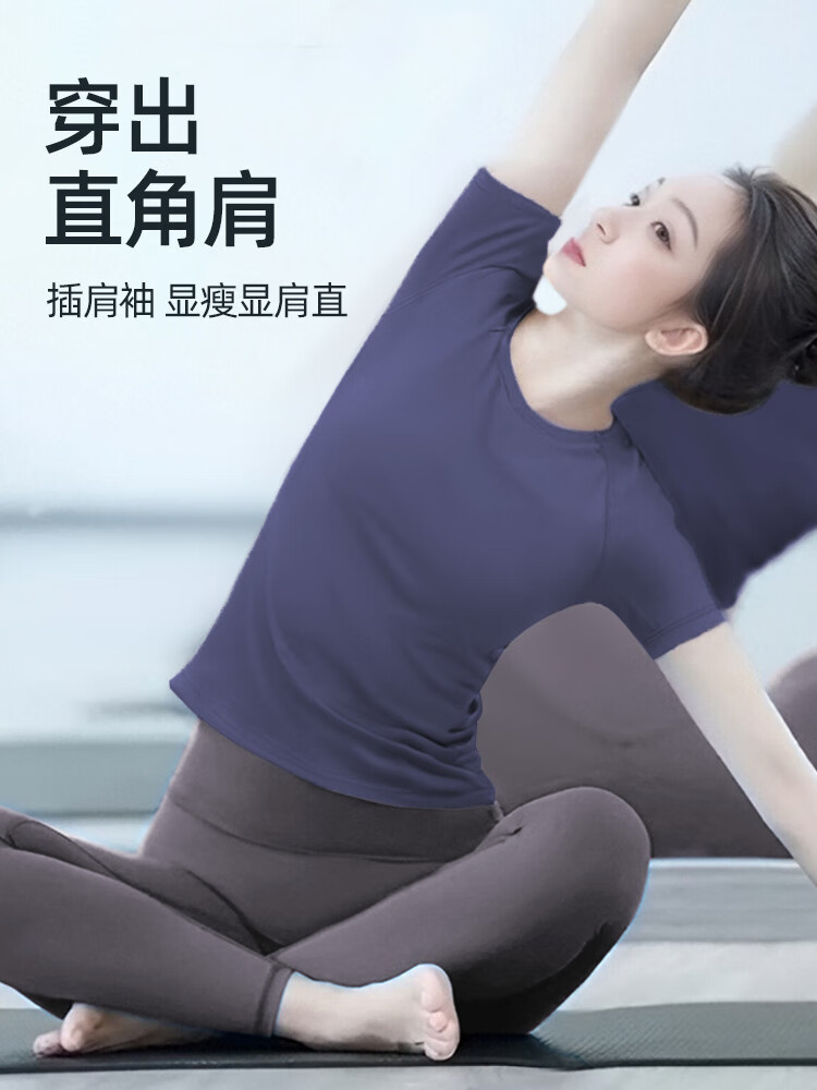 Double Show Double Show Clothing Yoga Wear for Women 2025 New Style Beautiful High-end Tops Beautiful Pilates Training Professional Sports Dark Gray Blue Top + Dove Gray Pants Set L 110-120
