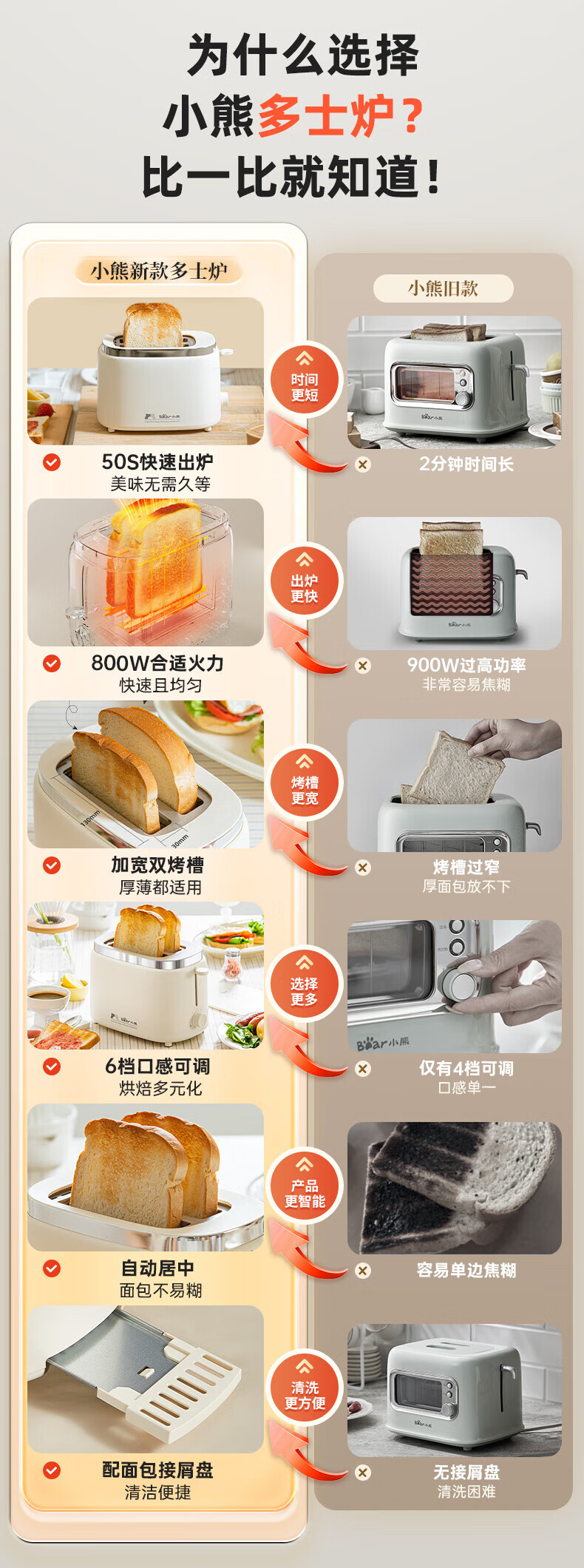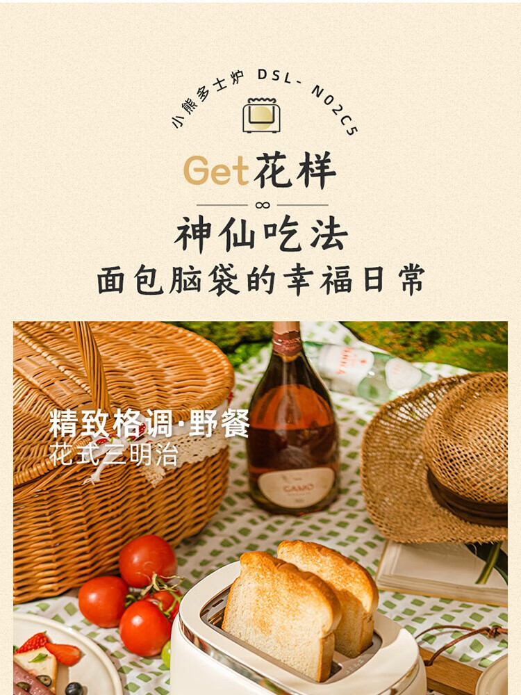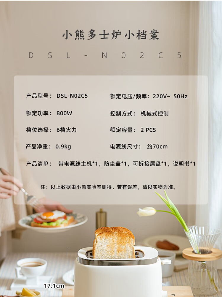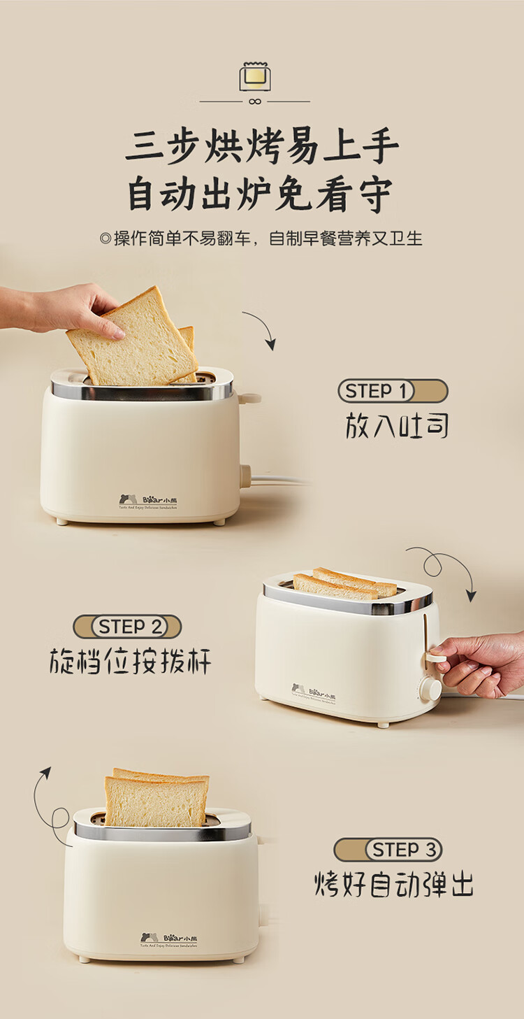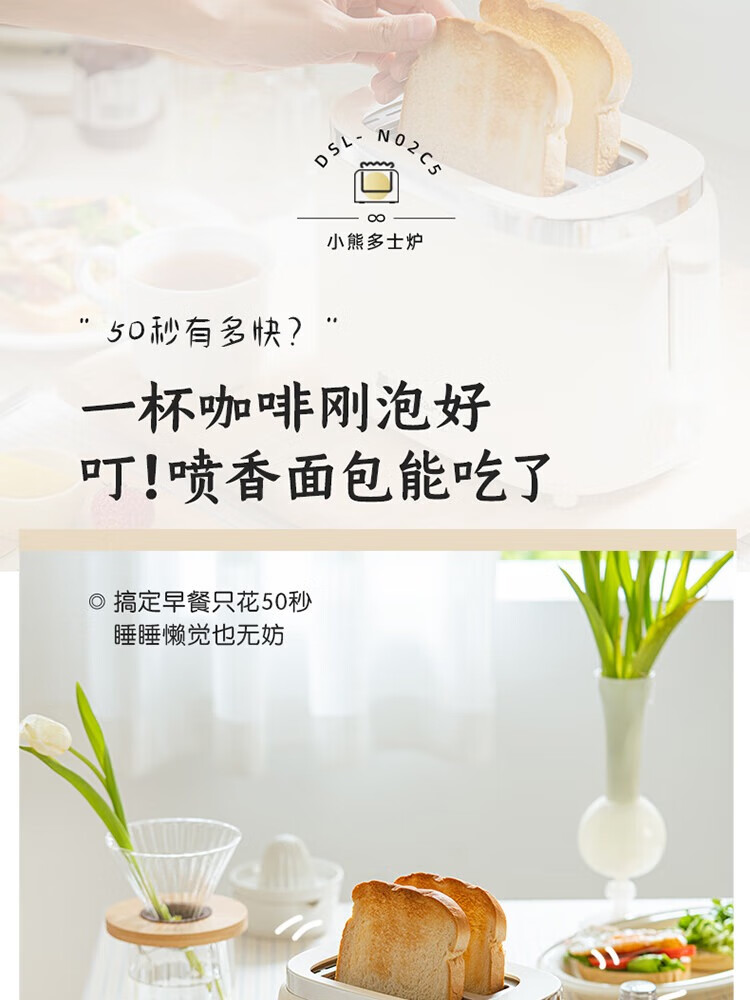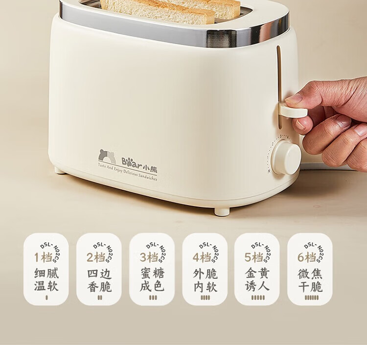 Bear Toaster Home Breakfast Toaster Toaster Toasted Sandwich Bread Multifunctional Double-sided Three-dimensional Even Toasting 6-speed Adjustment with Dust Cover New Toaster DSL-N02C5