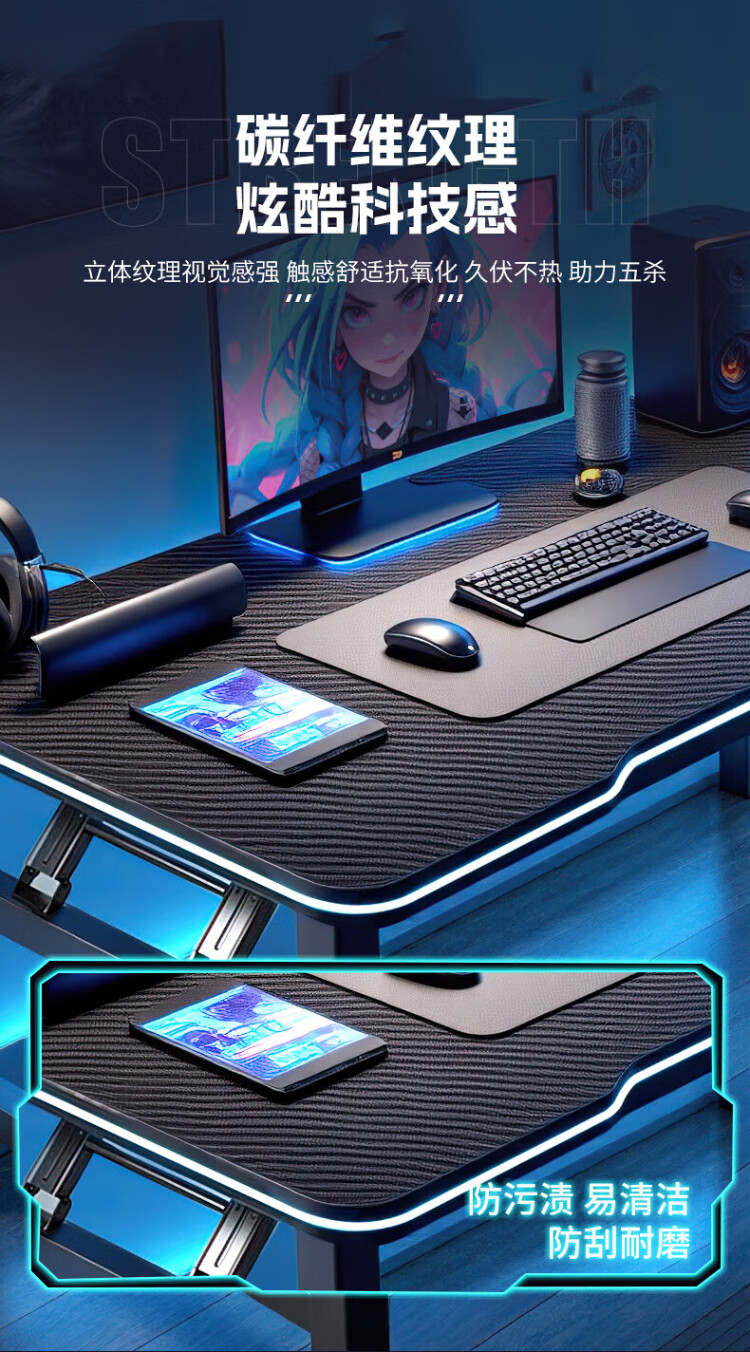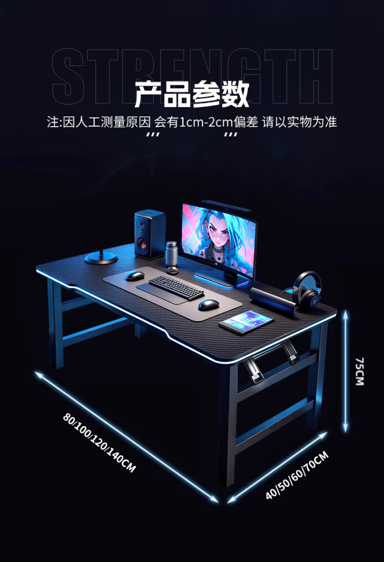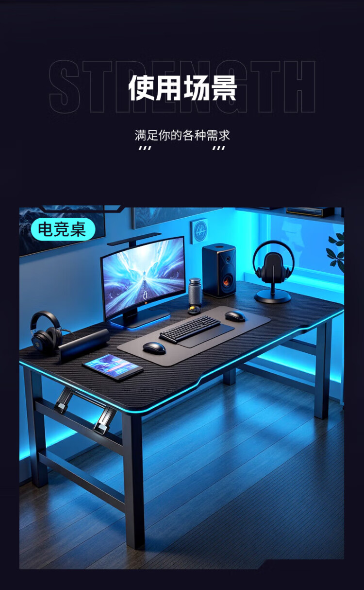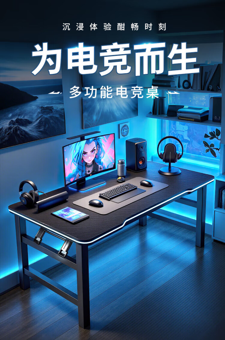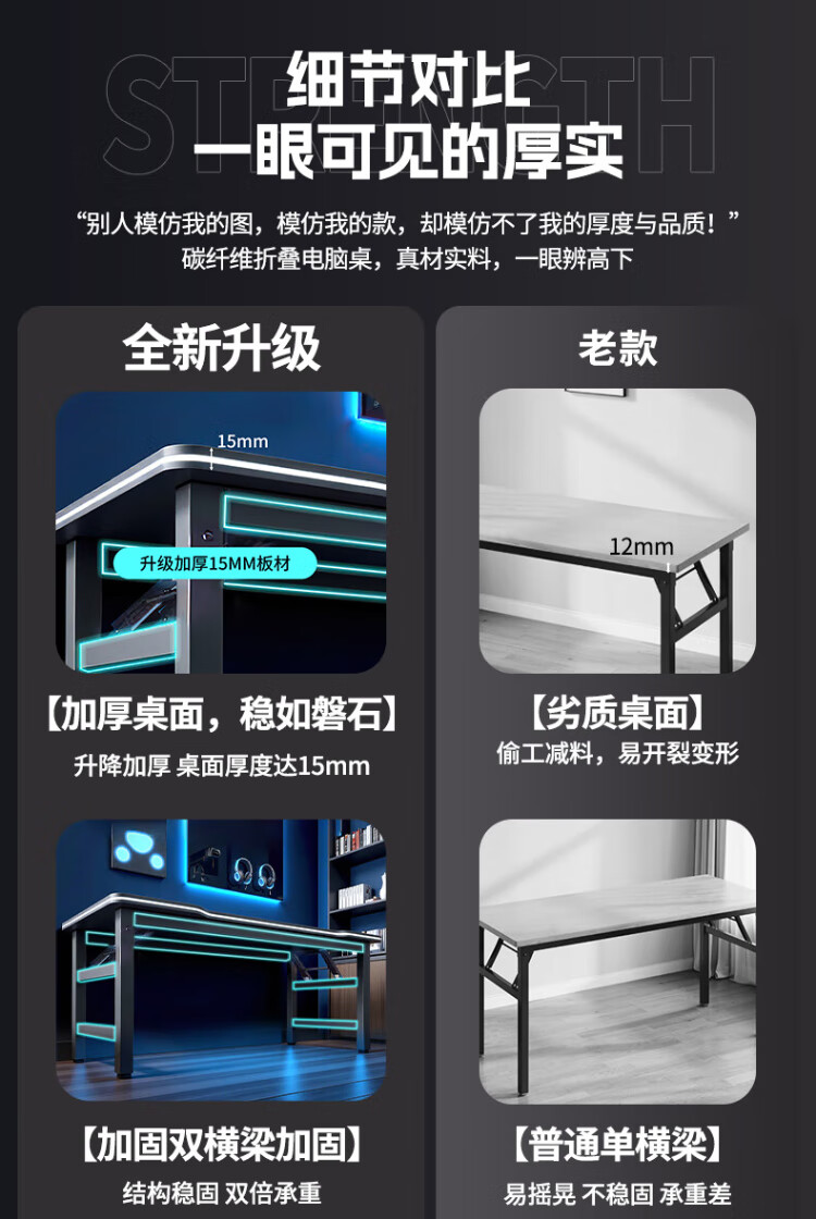 Jike folding table computer table home study desk e-sports table game table study table simple office desk long table thickened large size black 120*60