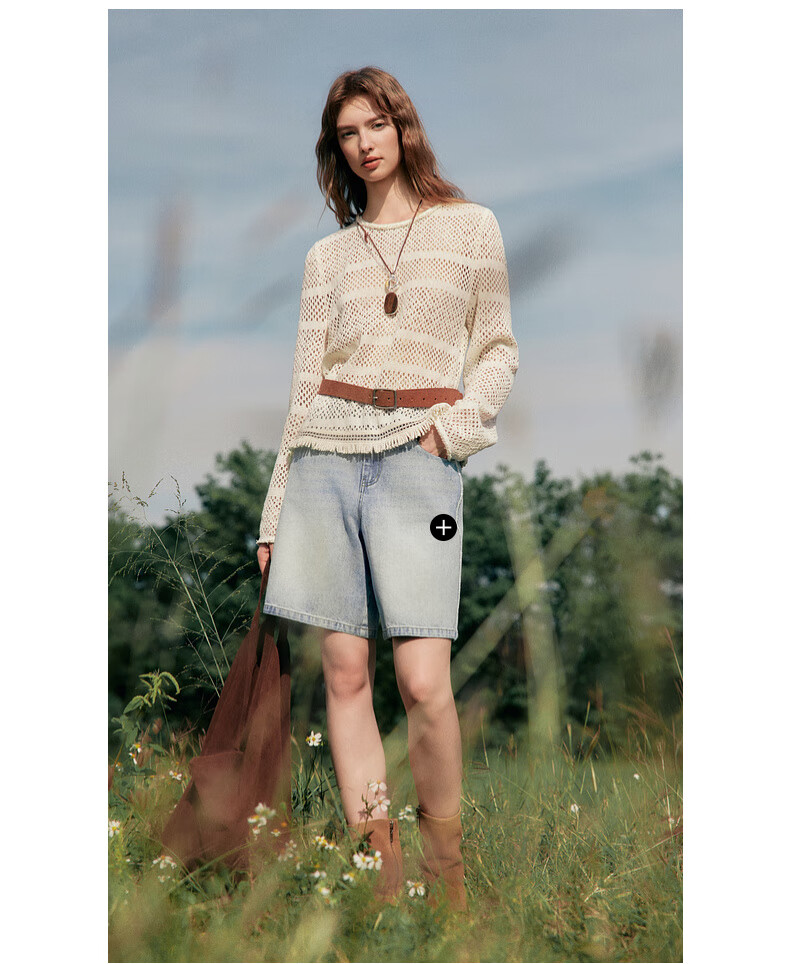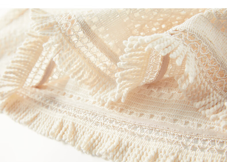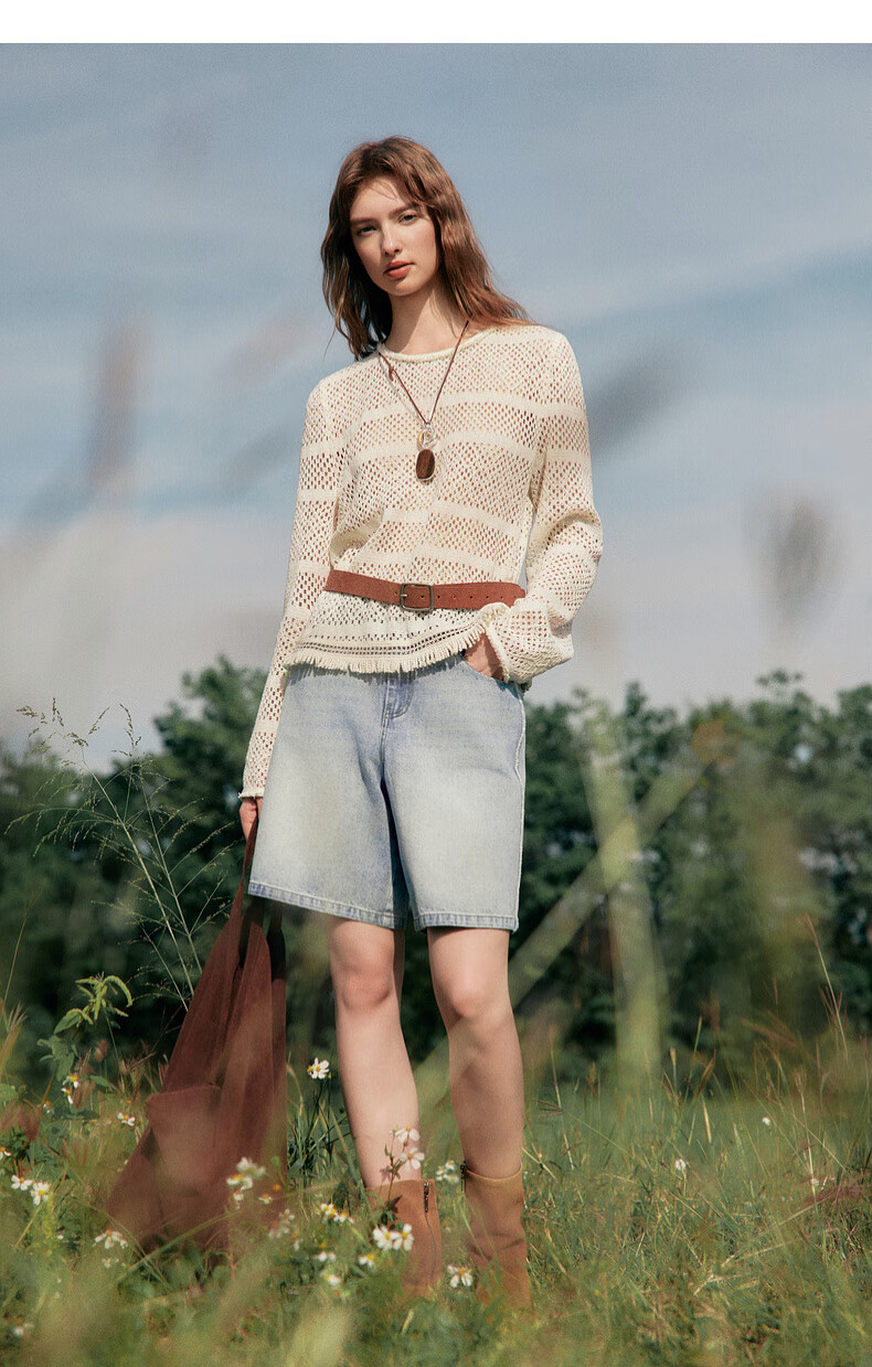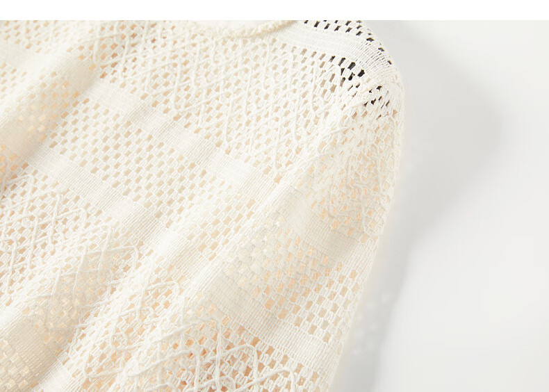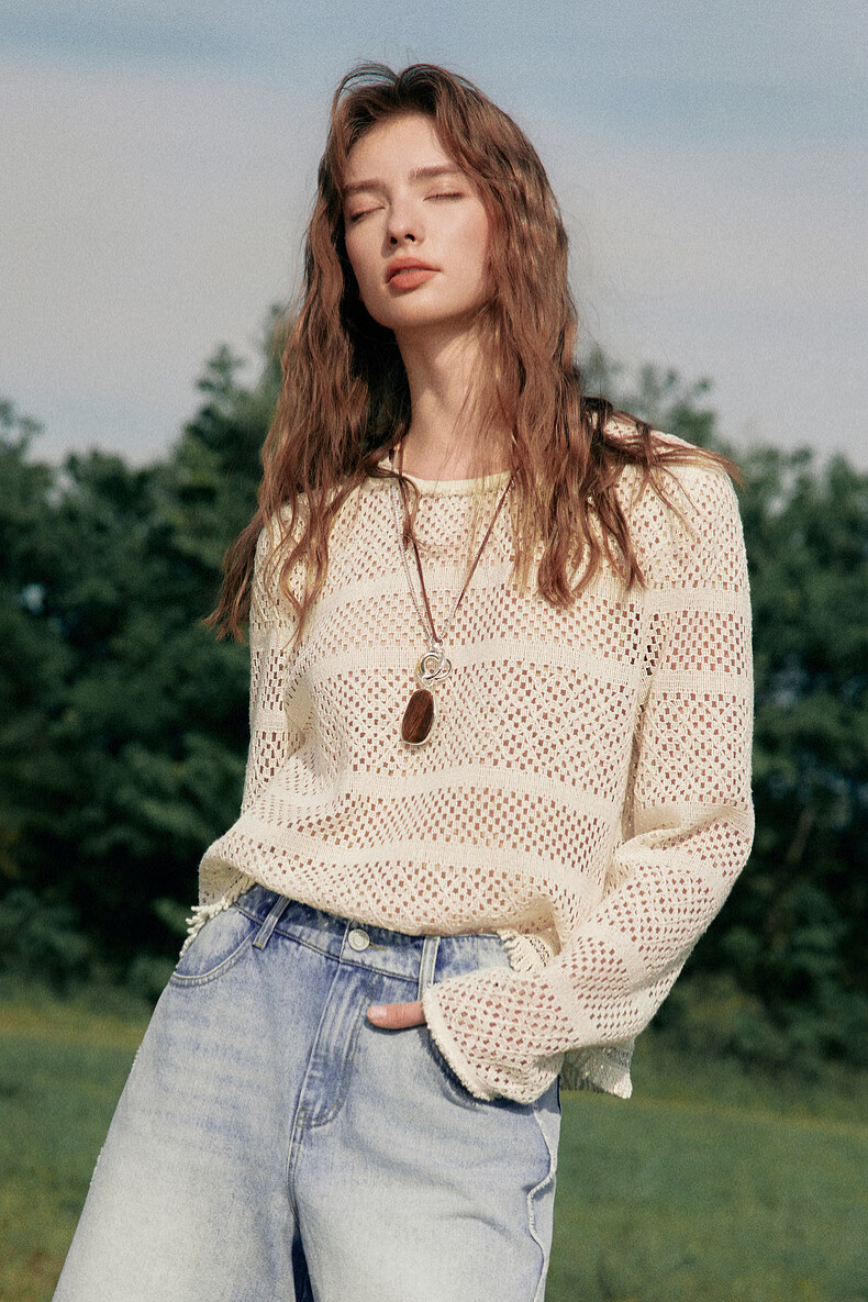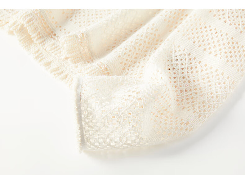 ELLE Cream Venus French fringed round neck casual shirt for women 2026 summer new hollow blouse off-white S