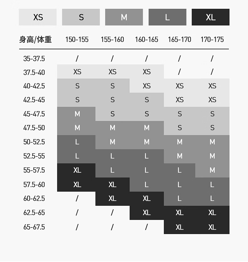 China (cm) 160-165/84-86 165-170 / 88-90 167-172 / 92-96 168-173 / 98-102 170-176 / 106-110