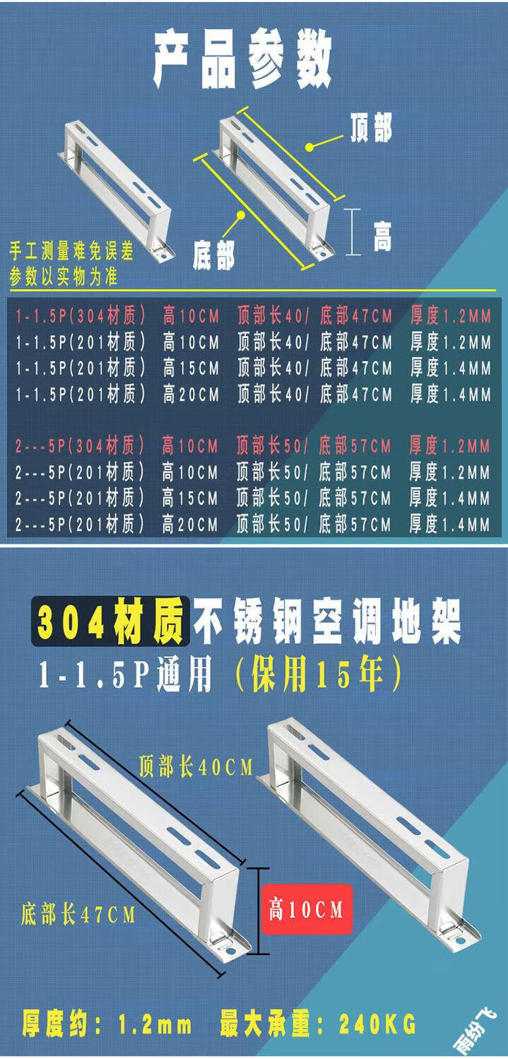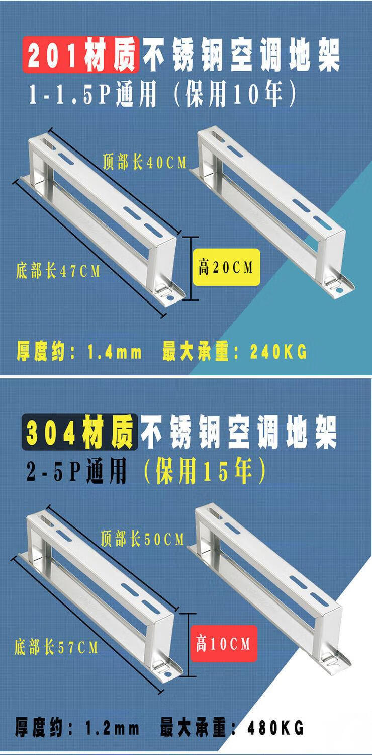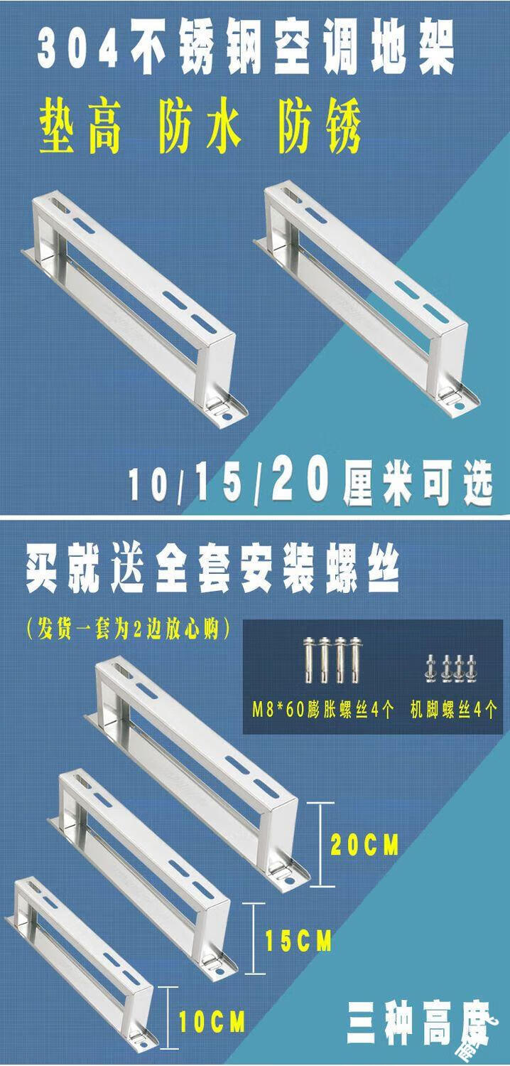 Dingniu air conditioning bracket external unit floor frame stainless steel base heightening pad host 304 thickened floor frame floor plane 201 material 1P1.5P universal 10 cm