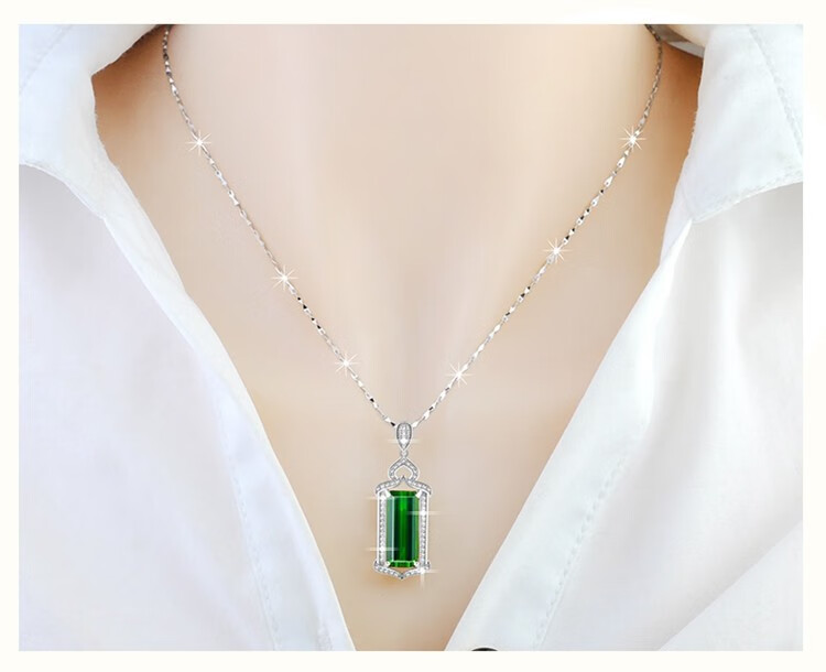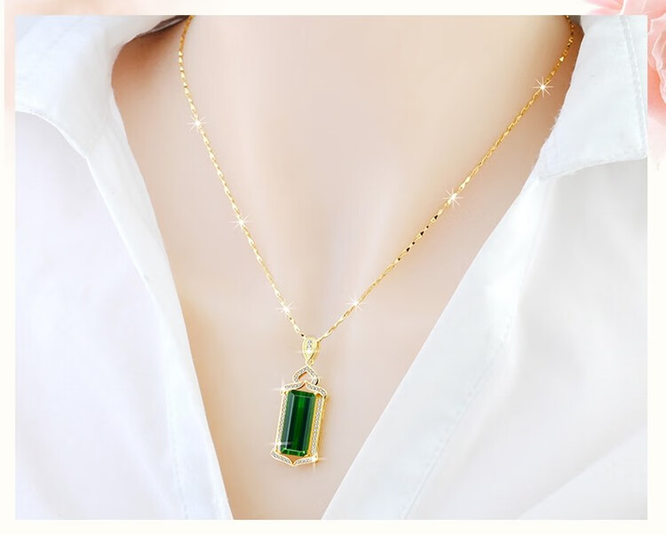 OEMG necklace for women 925 sterling silver plated 18k gold emerald zircon pendant temperament luxury silver jewelry gift for girlfriend gold green zircon necklace