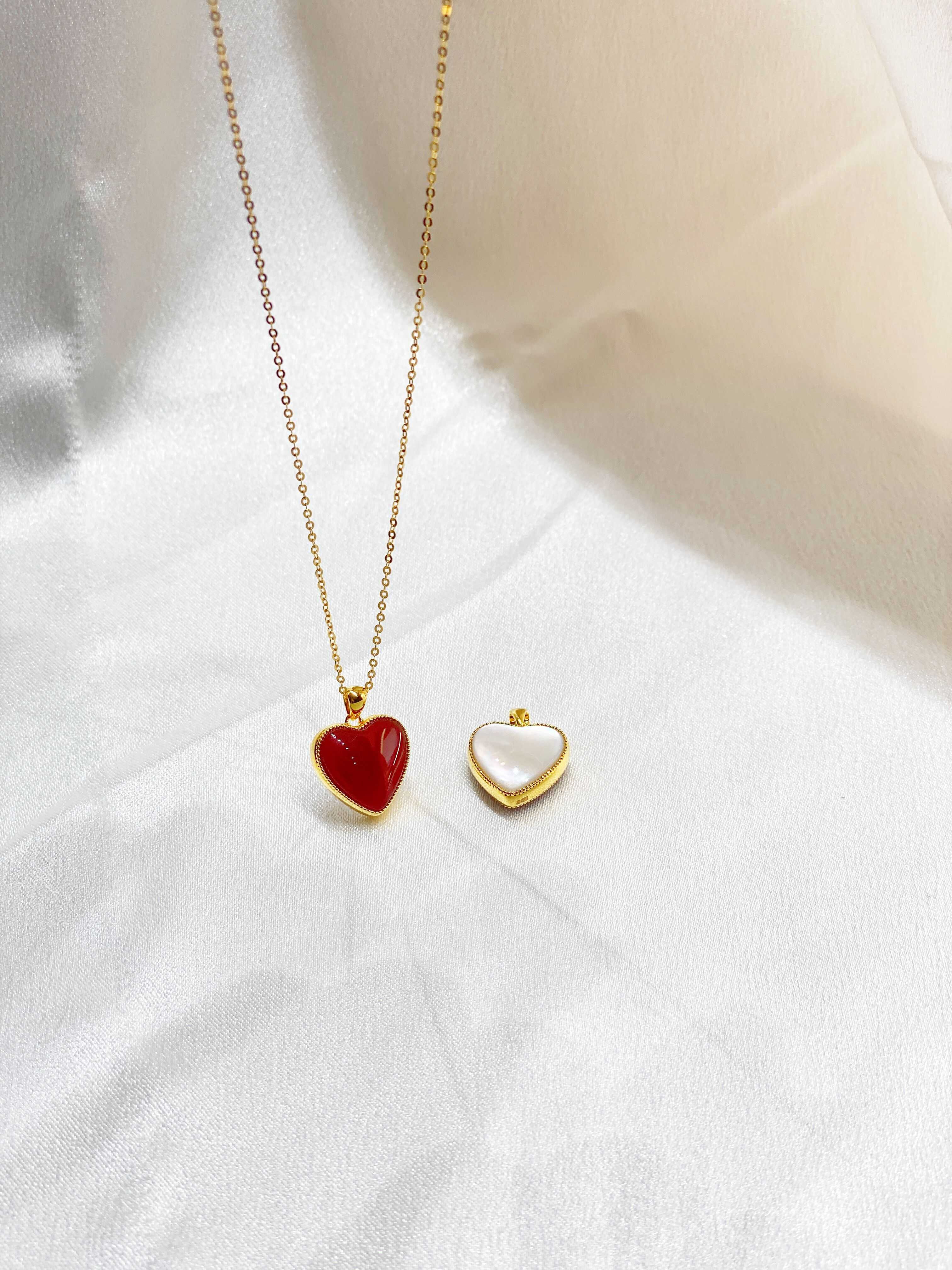 OEMG18K gold pendant double-sided love red agate pendant au750 gold necklace women's clavicle chain women's 18k gold rose gold pendant + 18k gold necklace