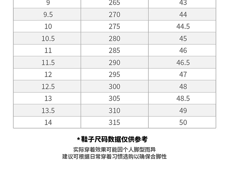 China (cm) 36 - 37 38 - 39 40 - 42 43 - 44 45 - 47
