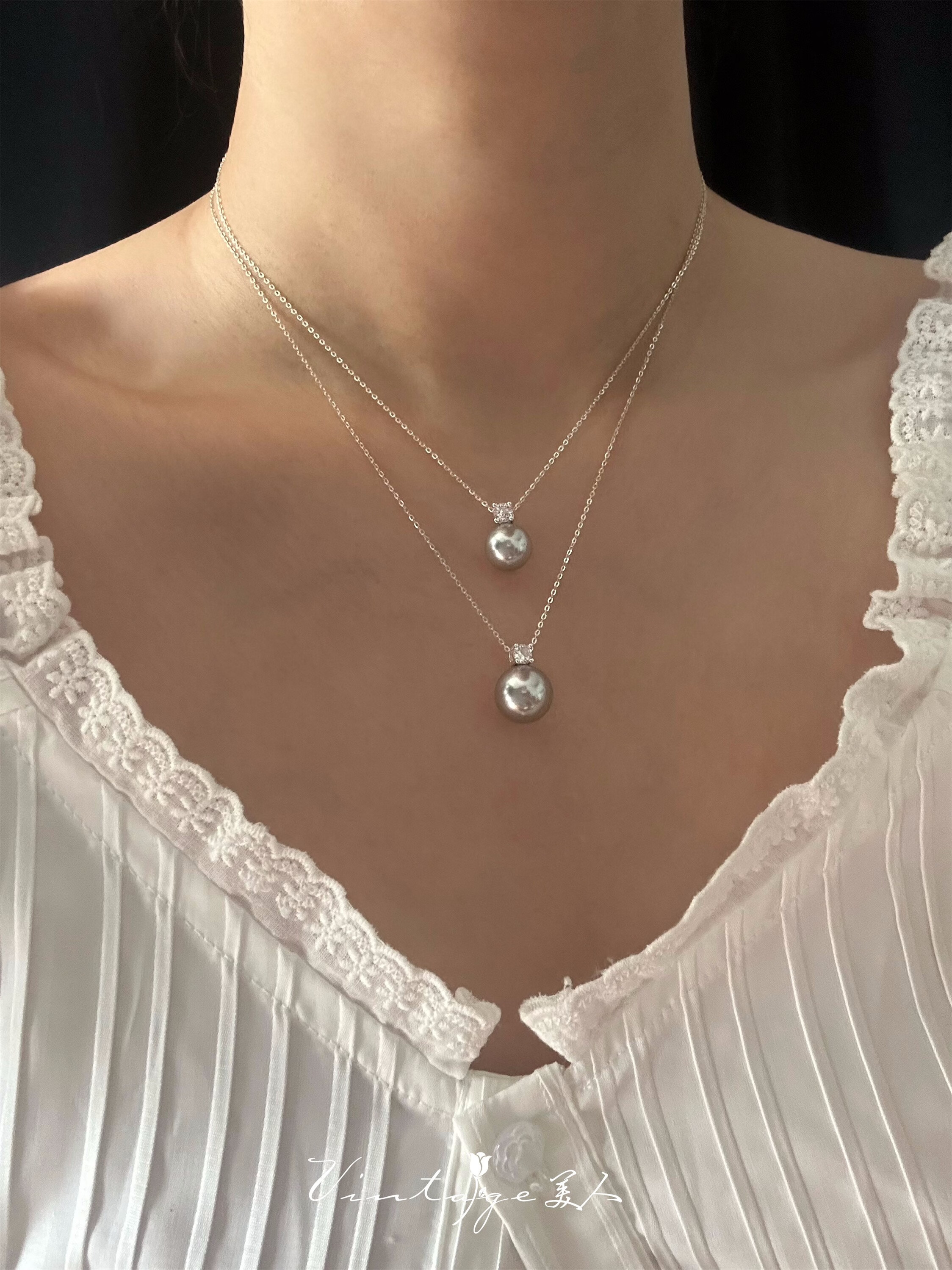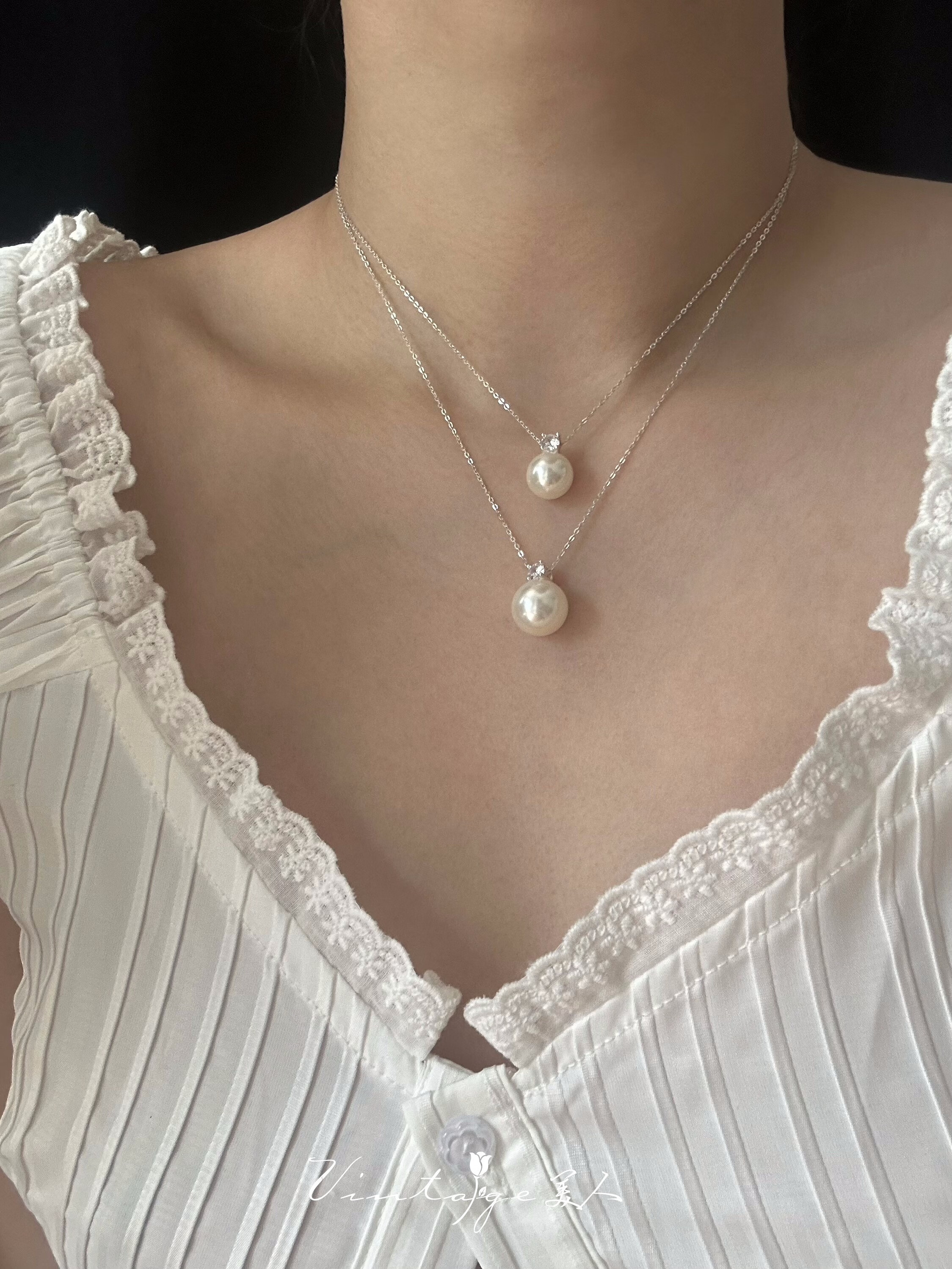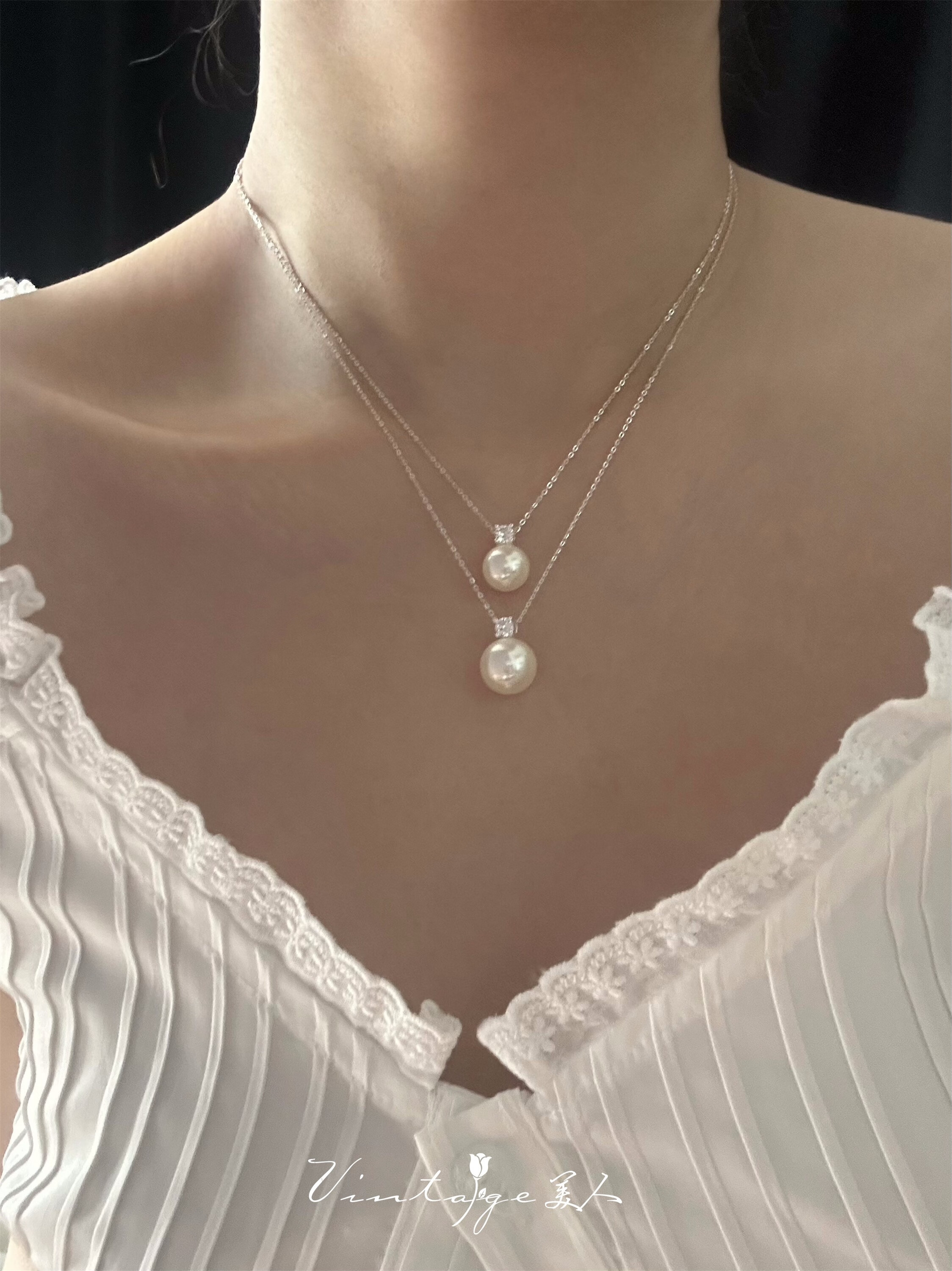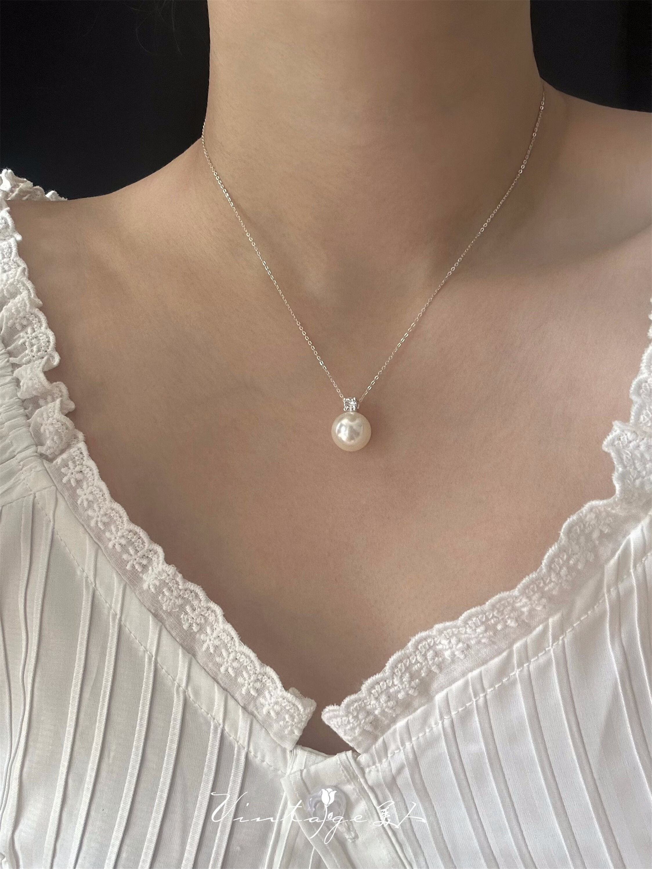 DRJEFUN Princess Swarovski Pearl French Classic Versatile Silver Necklace/Clavicle Chain Women Princess Tahiti 12mm-Necklace