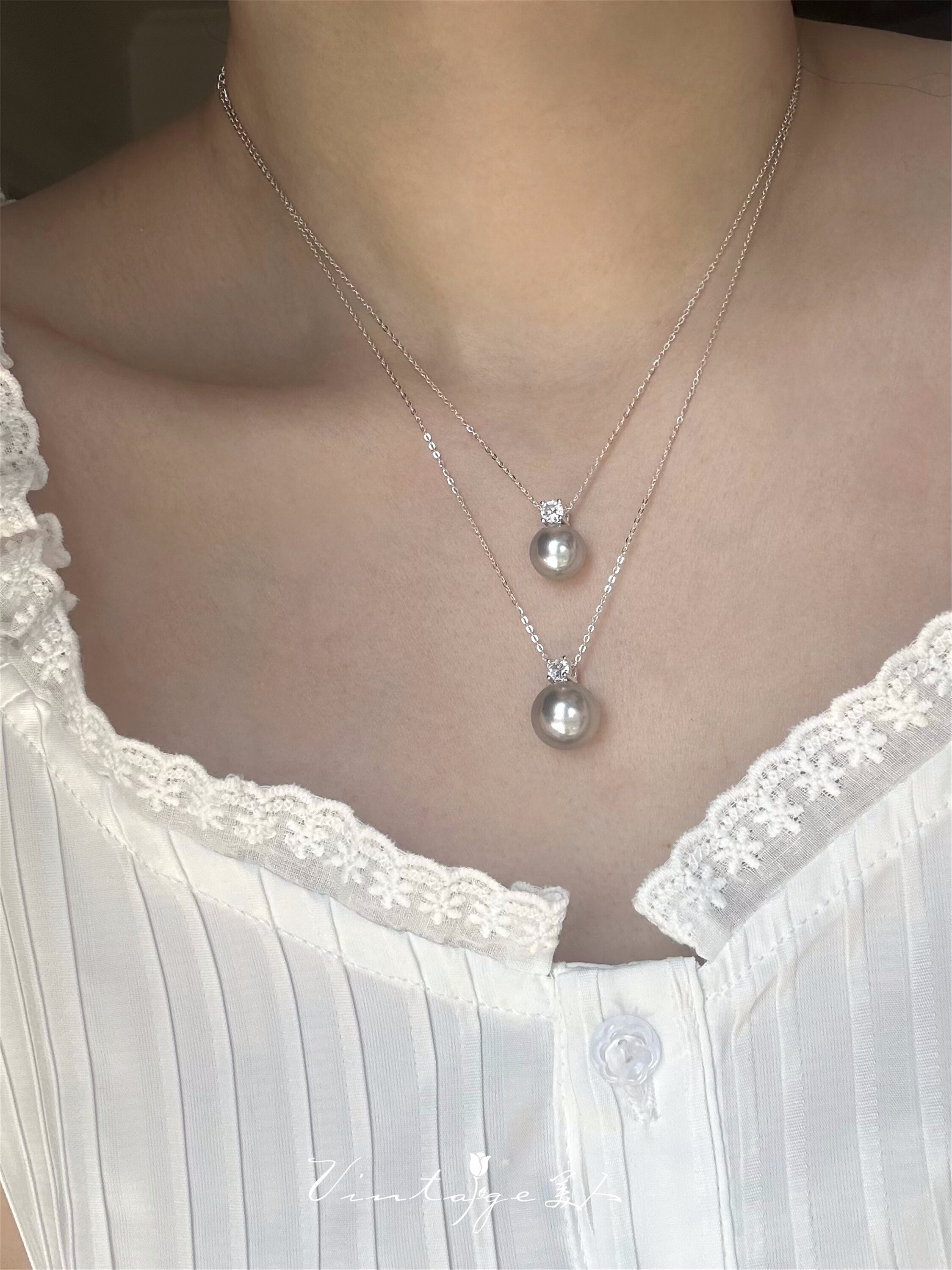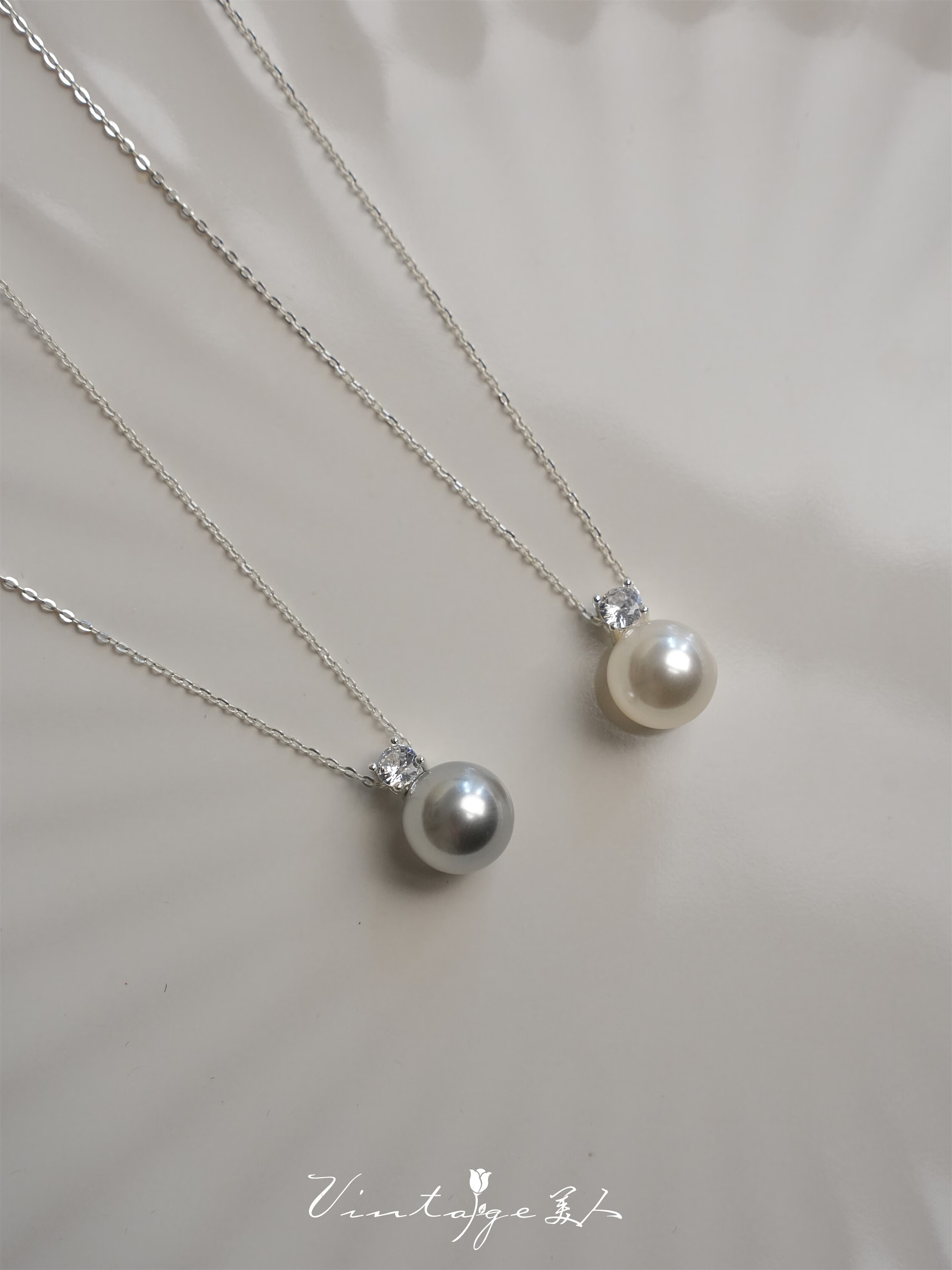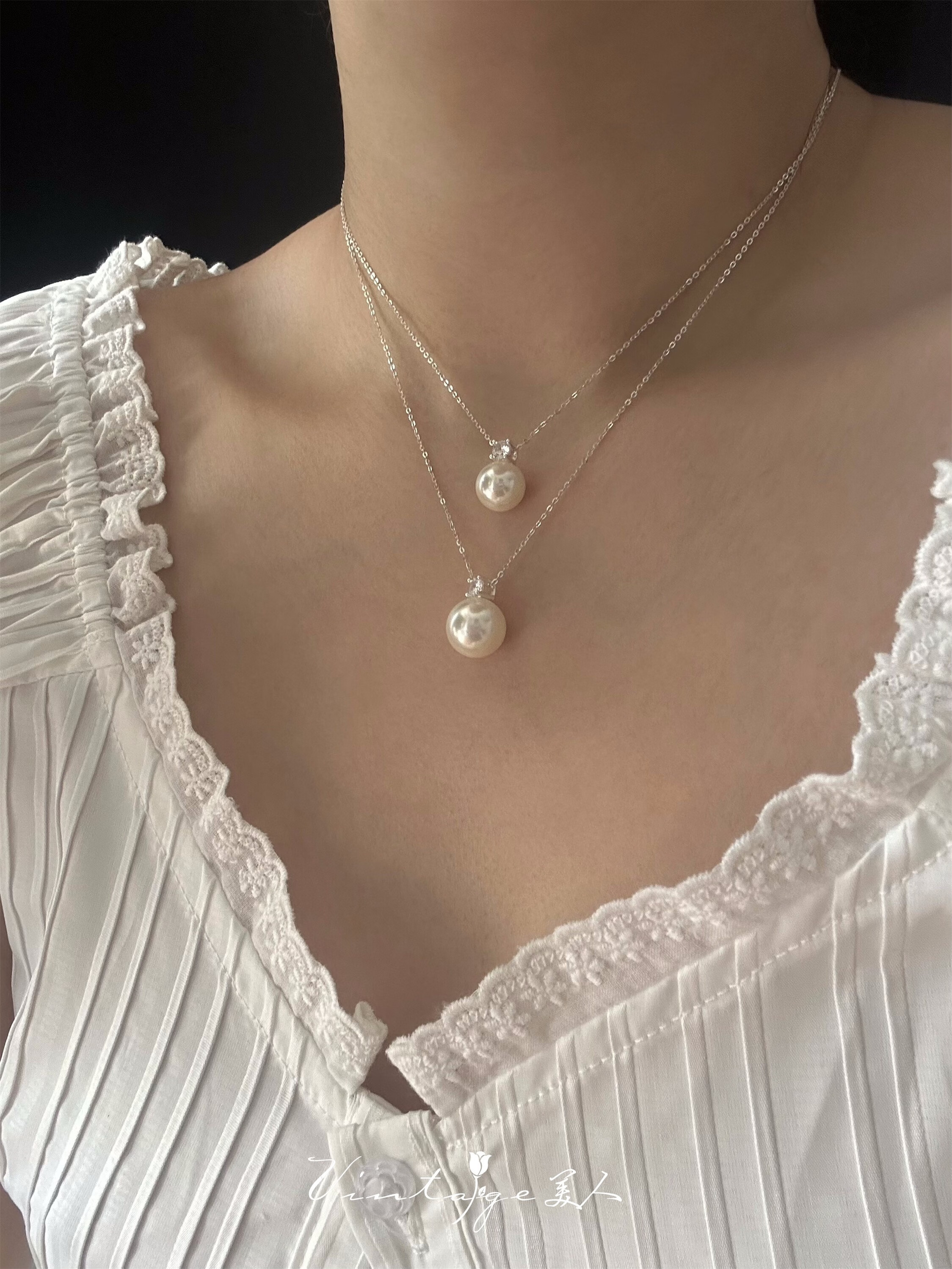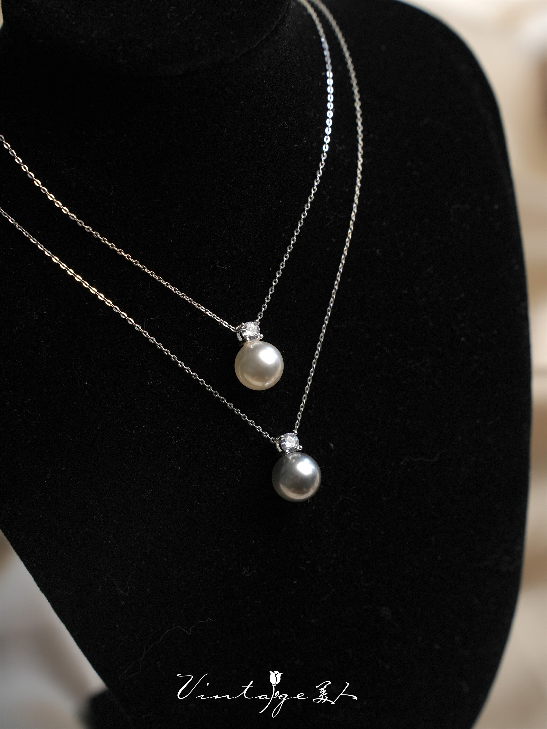 DRJEFUN Princess Swarovski Pearl French Classic Versatile Silver Necklace/Clavicle Chain Women Princess Tahiti 12mm-Necklace