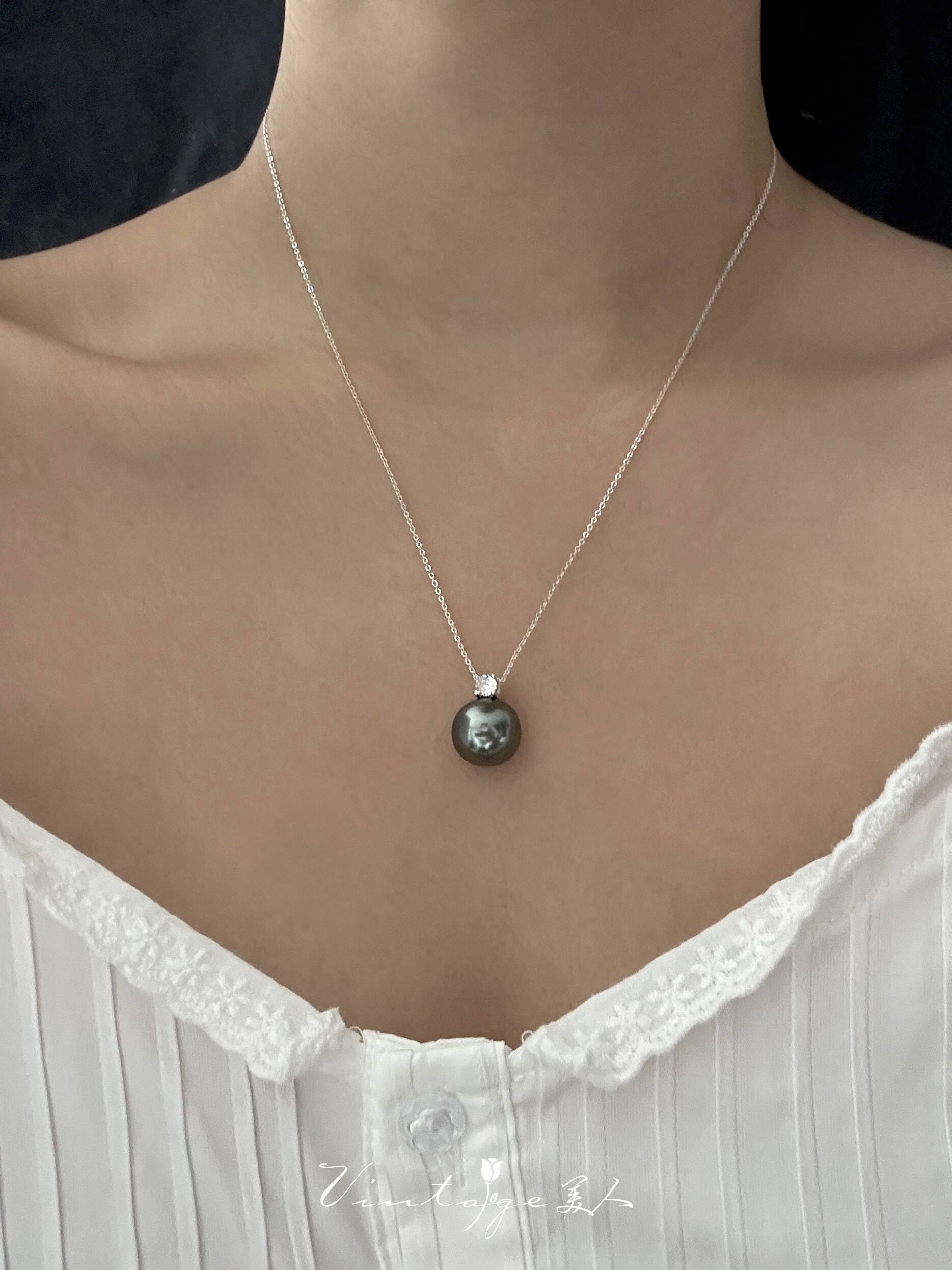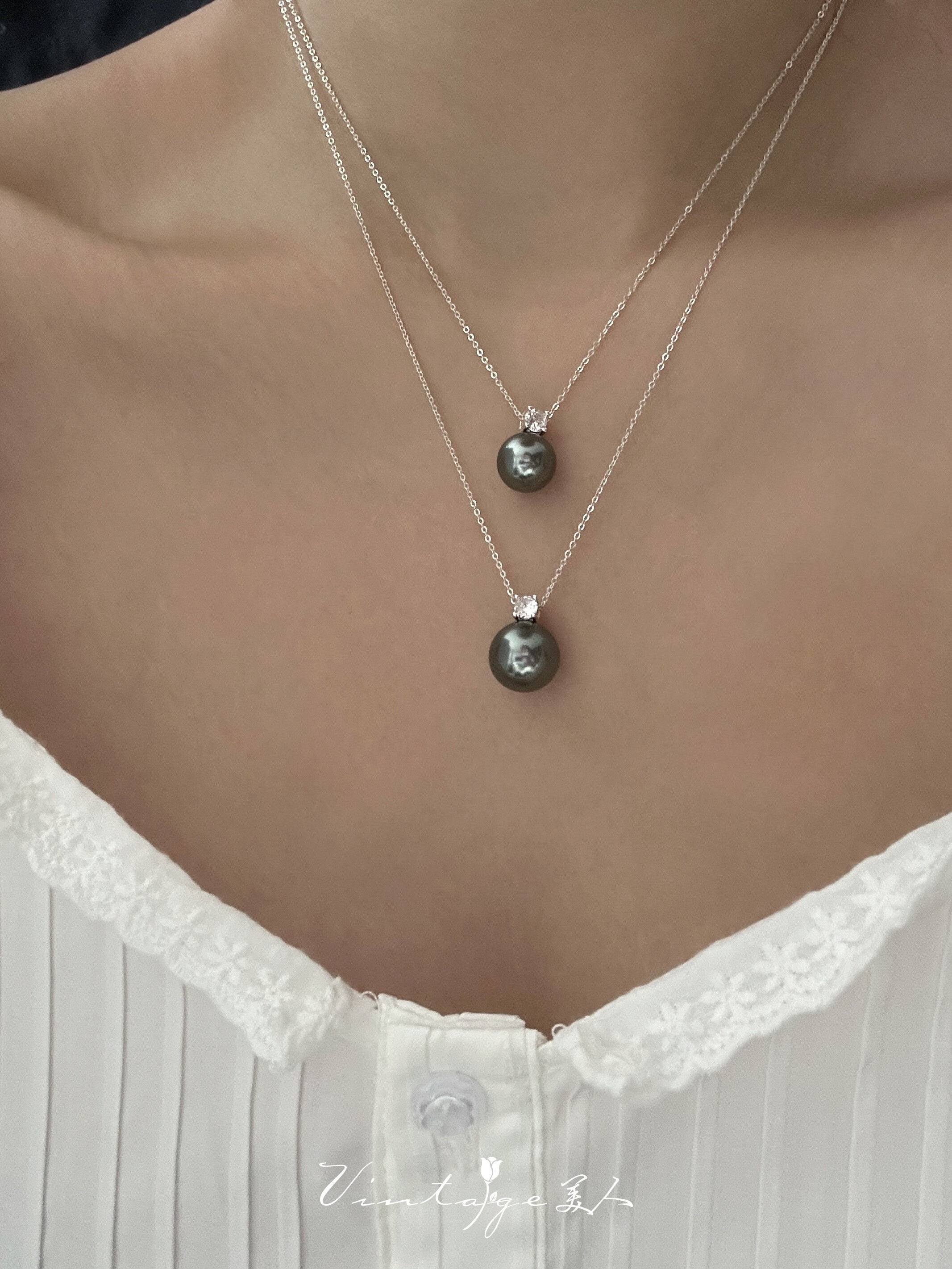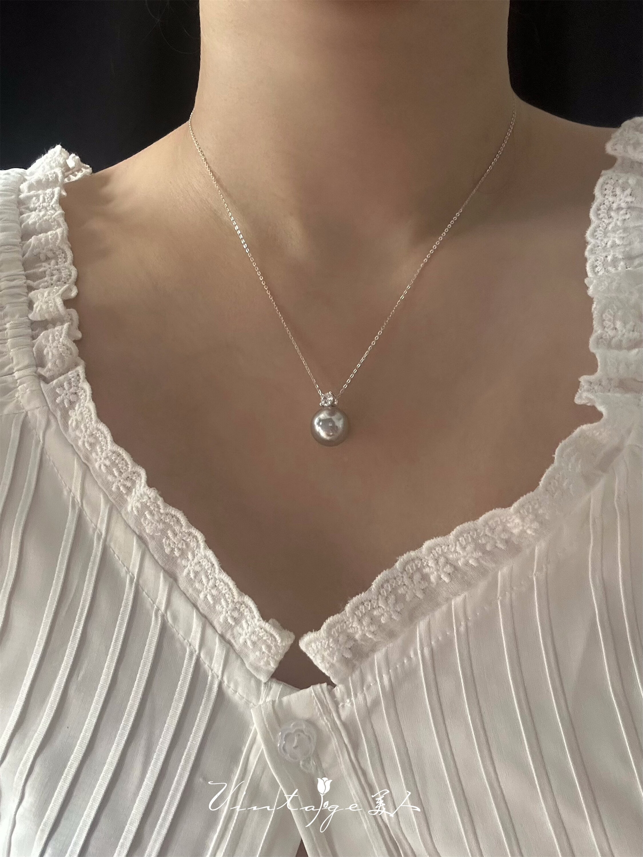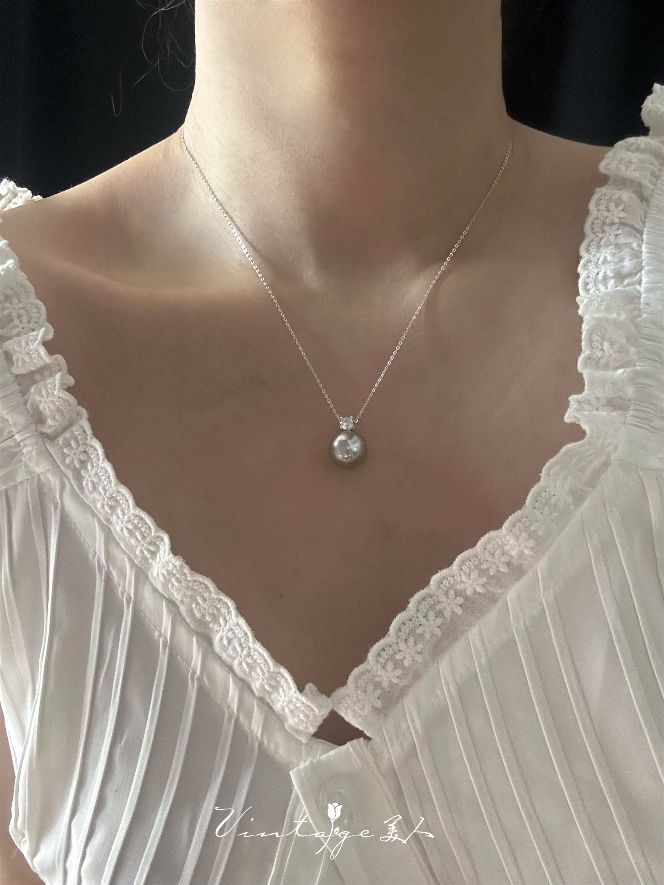 DRJEFUN Princess Swarovski Pearl French Classic Versatile Silver Necklace/Clavicle Chain Women Princess Tahiti 12mm-Necklace