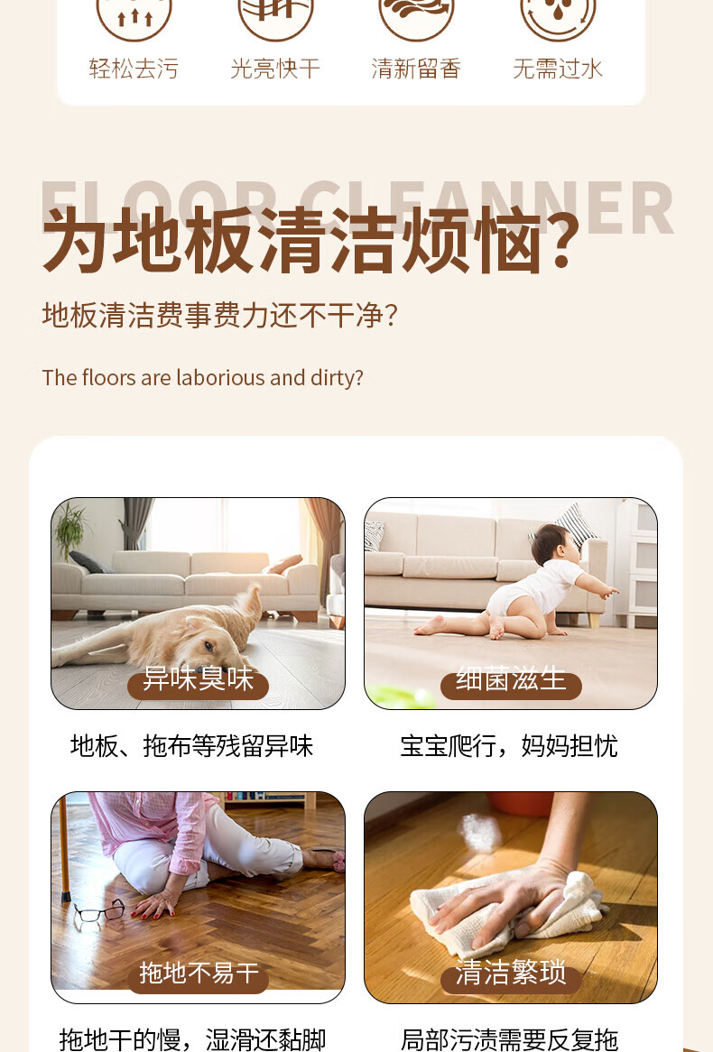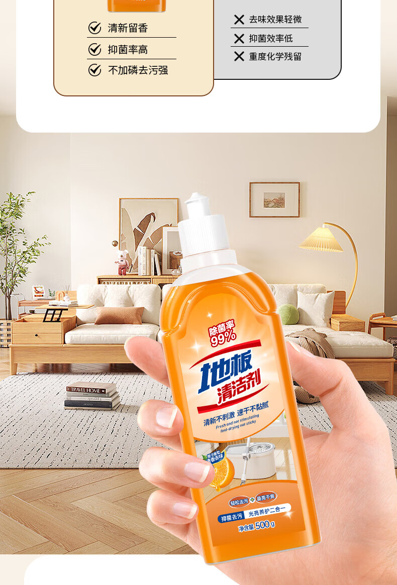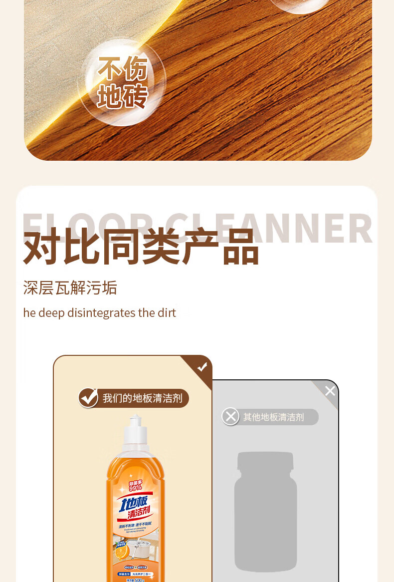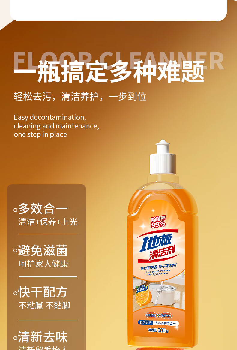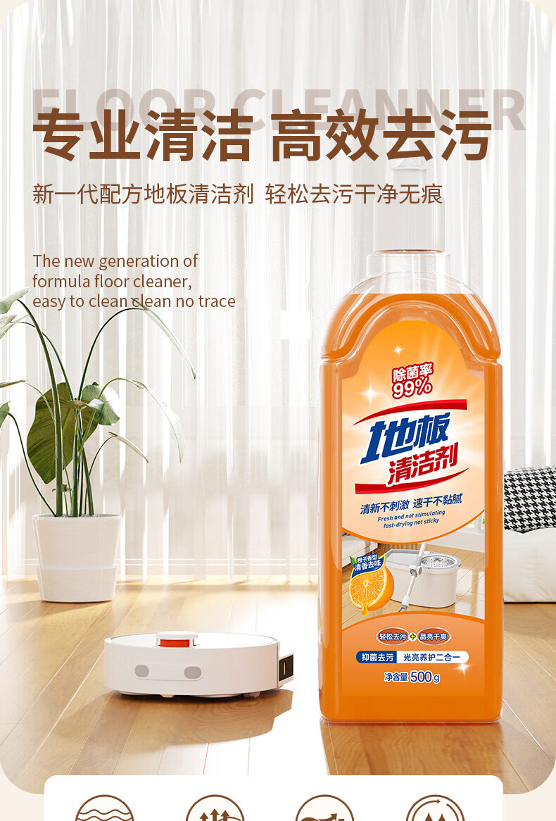Jieboli floor cleaner tile cleaning and mopping special liquid strong decontamination household wooden floor sterilization fragrance cleaning liquid floor cleaner 1 bottle sweet orange fragrance