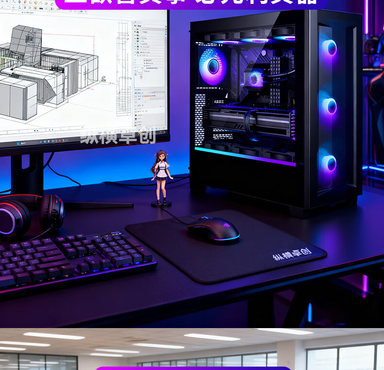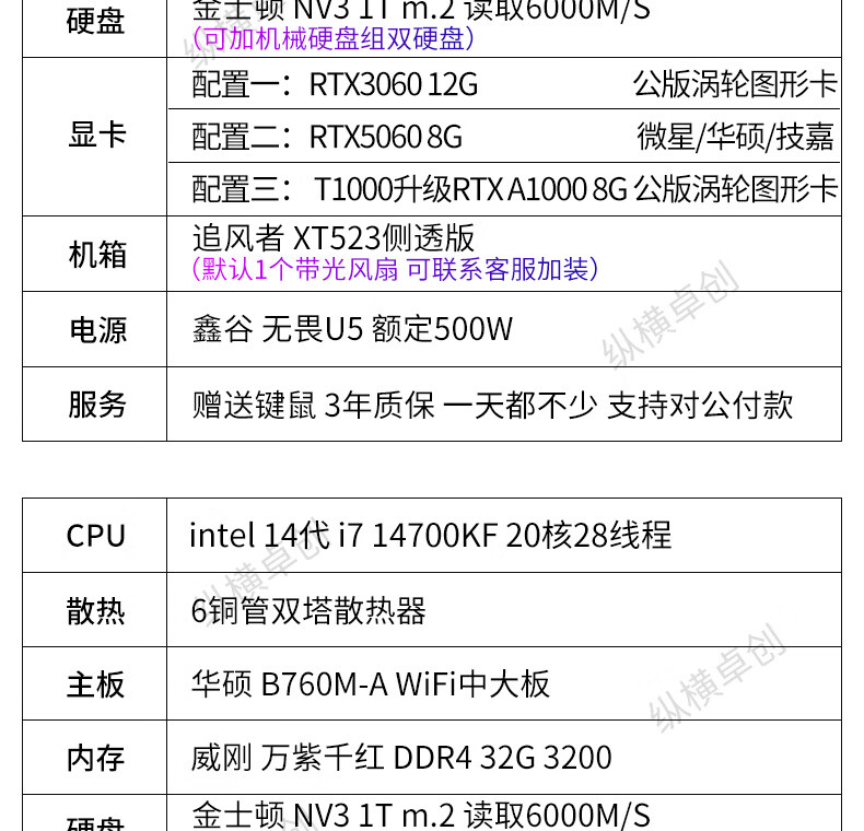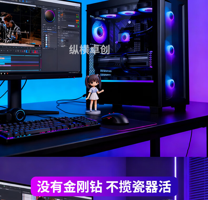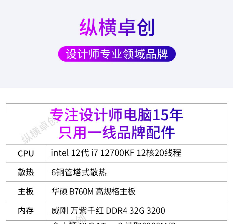 Zongheng Zhuochuang Designer graphics workstation video editing 20-core i7 14700KF/RTX5060Ti 16G/2000ADA modeling rendering drawing assembly desktop computer host configuration one i7 12700KF+3060 12G