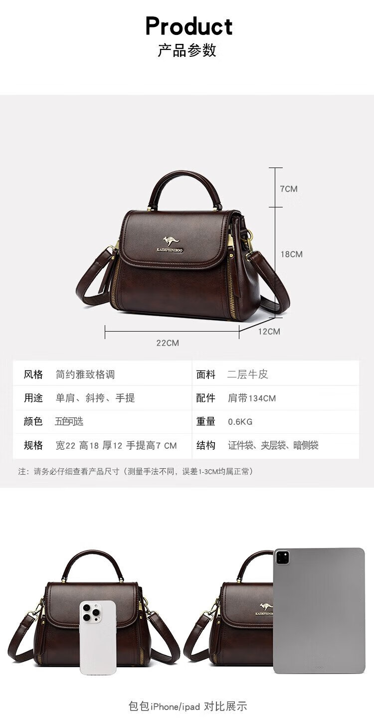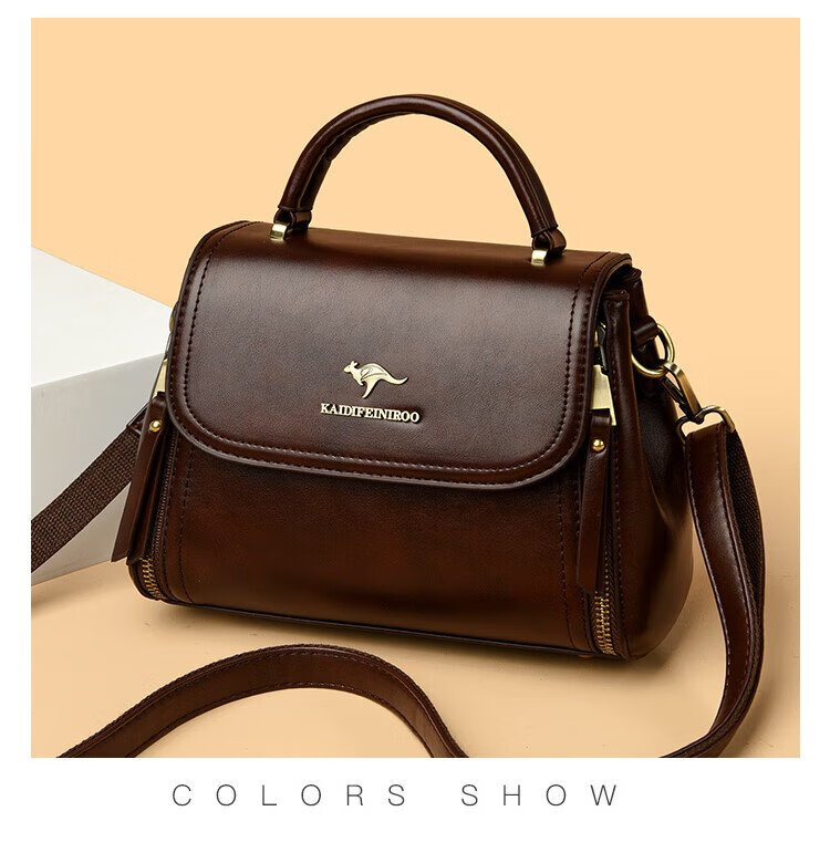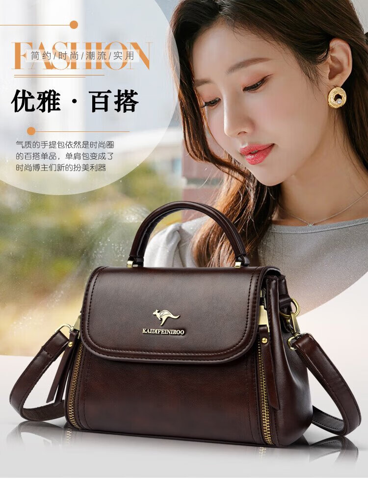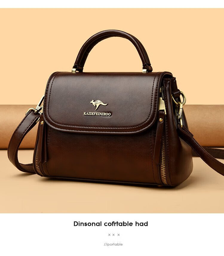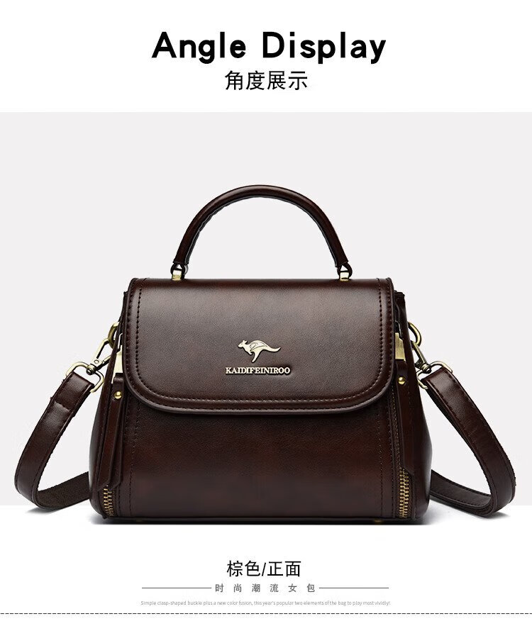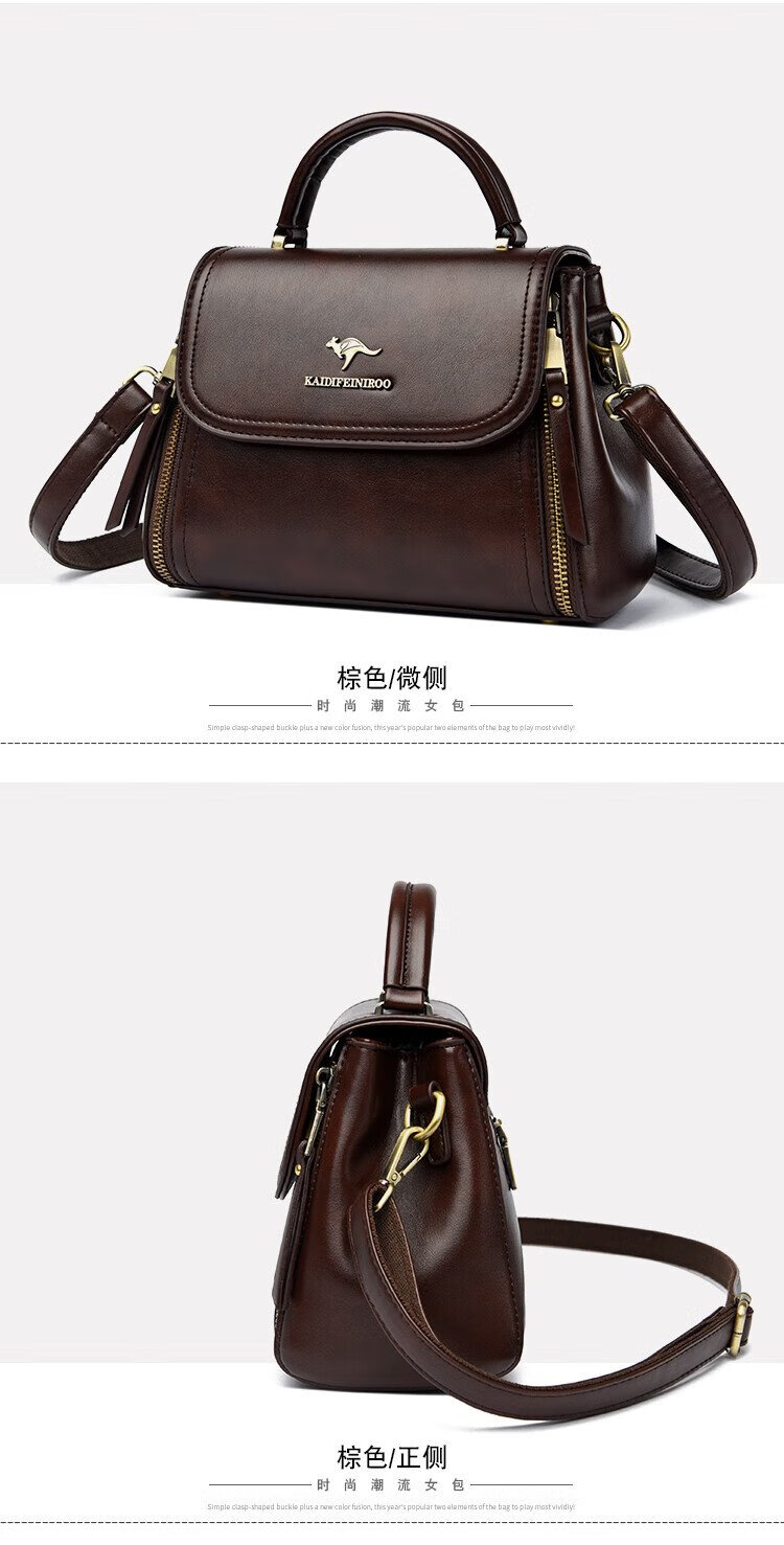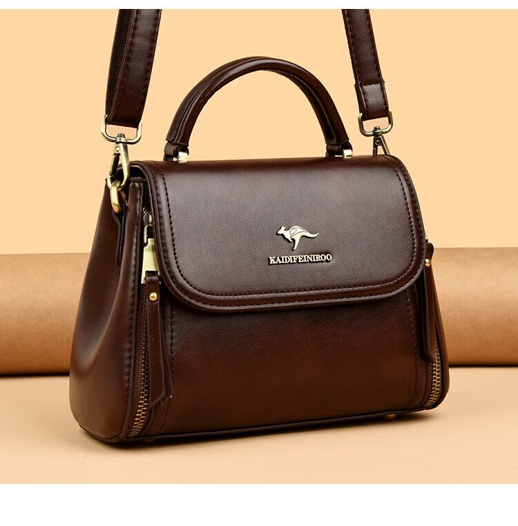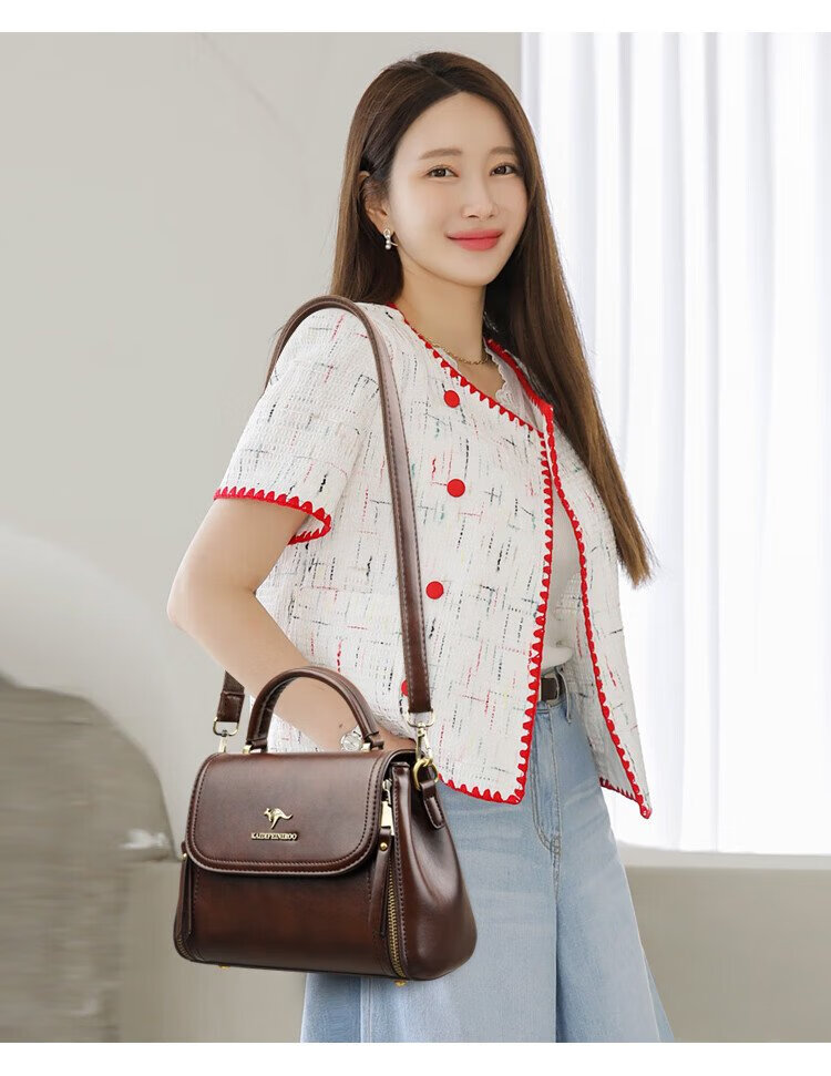 Kangaroo Cara Bag Women's Bag Women's 2025 Autumn and Winter New Middle-aged Women's Bag Mom Bag Crossbody Small Bag Genuine Leather Shoulder Bag Brown (Hand Bag + Card Holder + Gift Box)