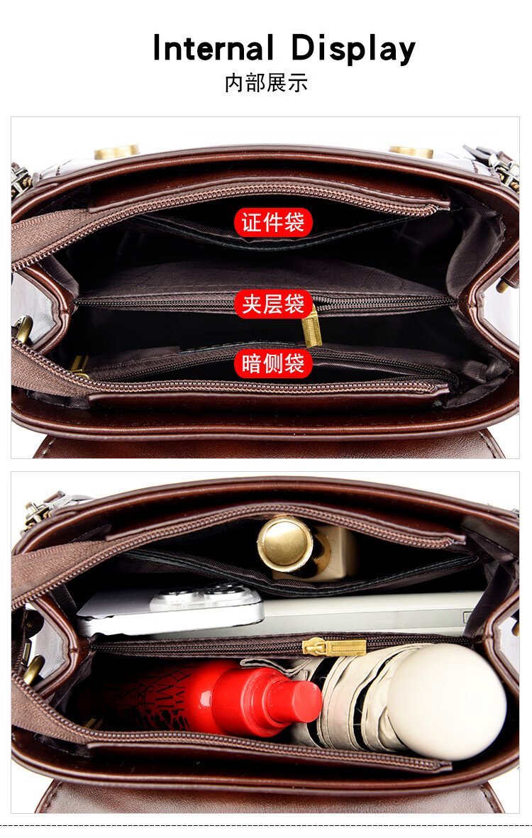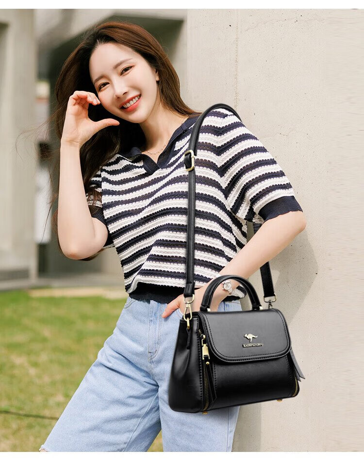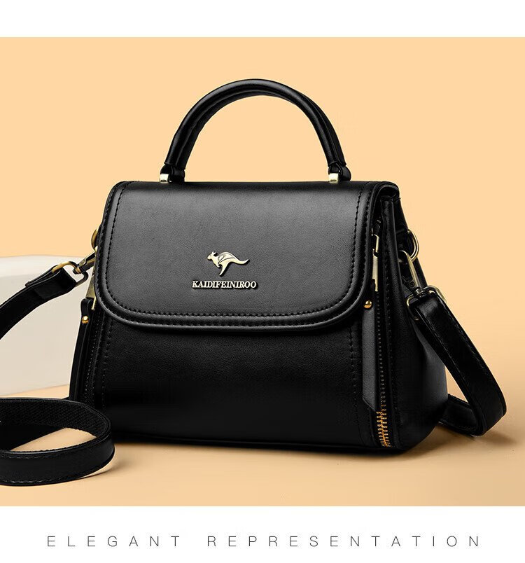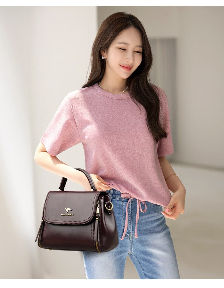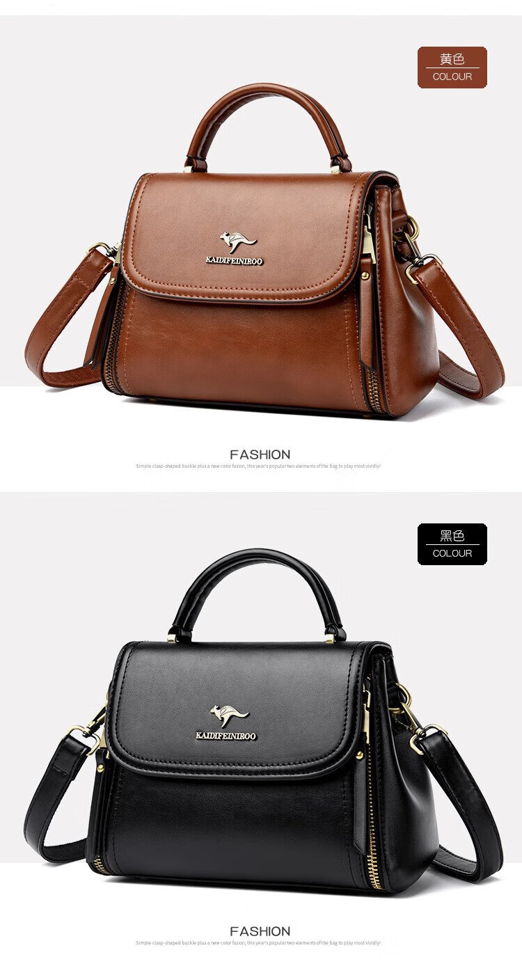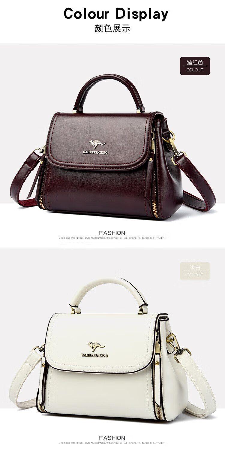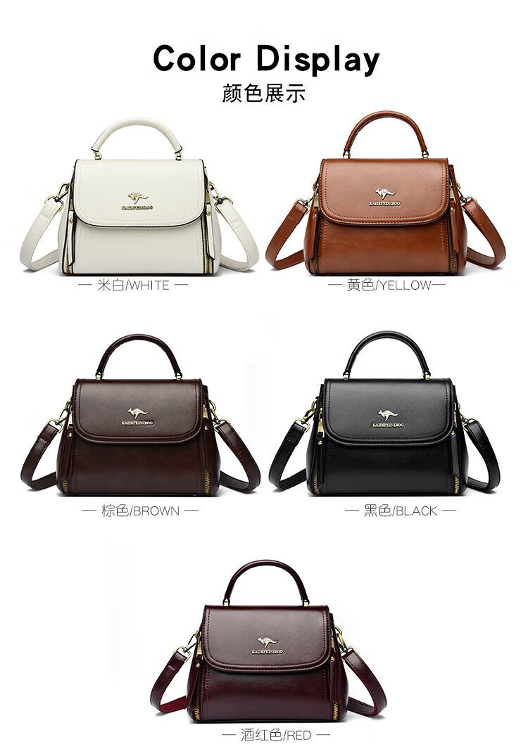 Kangaroo Cara Bag Women's Bag Women's 2025 Autumn and Winter New Middle-aged Women's Bag Mom Bag Crossbody Small Bag Genuine Leather Shoulder Bag Brown (Hand Bag + Card Holder + Gift Box)
