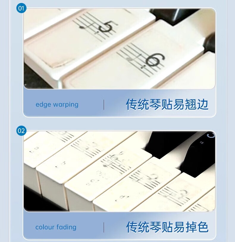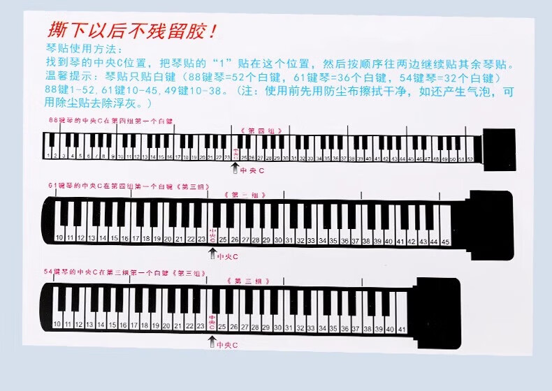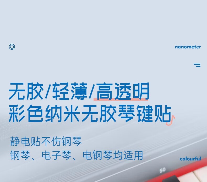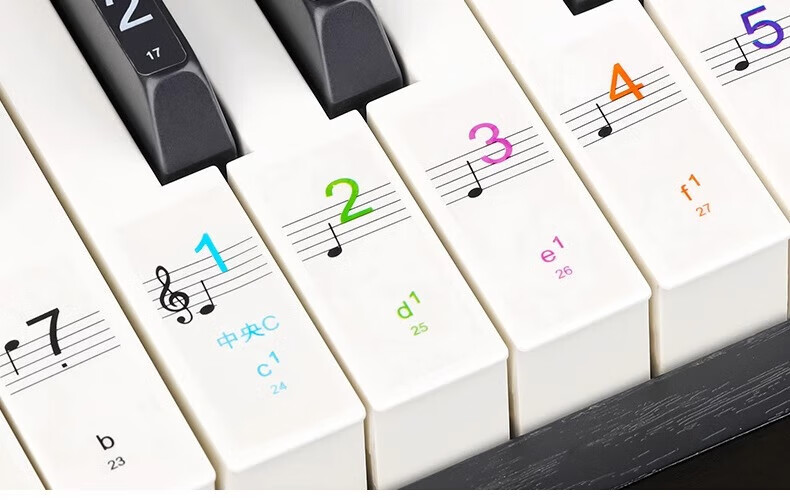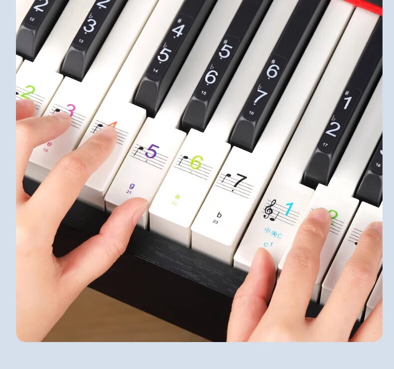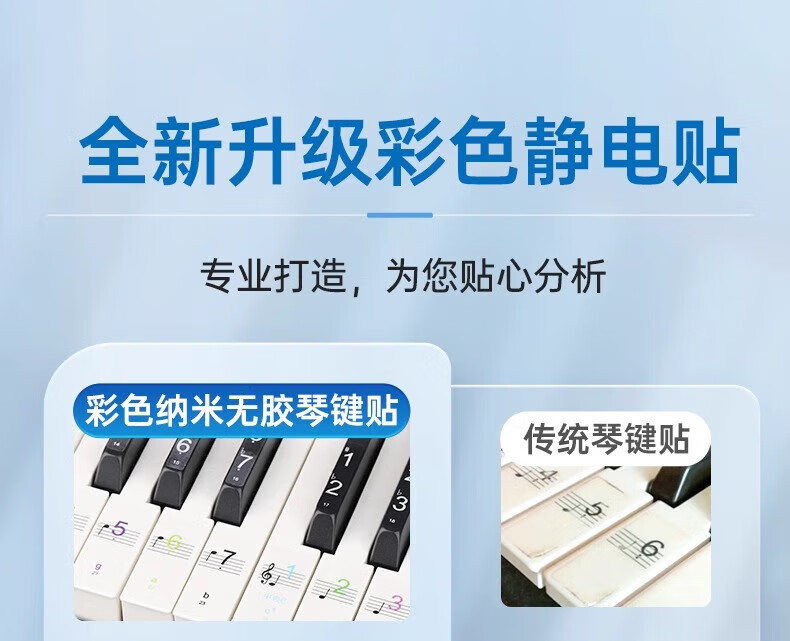 Yuan ethnic color piano keyboard stickers, glue-free electronic keyboards, universal 88/61/54 key children and adults staff note stickers, color electrostatic stickers, universal piano/electronic keyboard/electric steel smooth keys