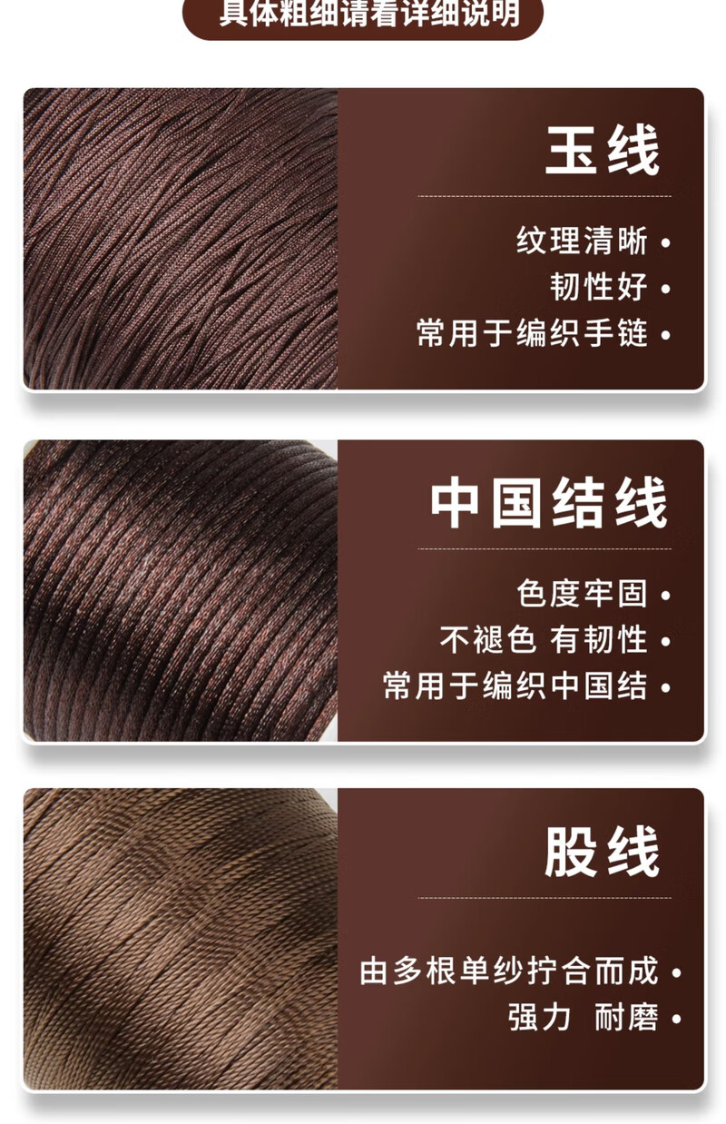 Aifsa braided rope hand rope rope pendant lanyard brown braided rope strand handmade beaded wire bracelet pendant string jade wire No. 73 jade wire / thick 0.6mm / about 50m