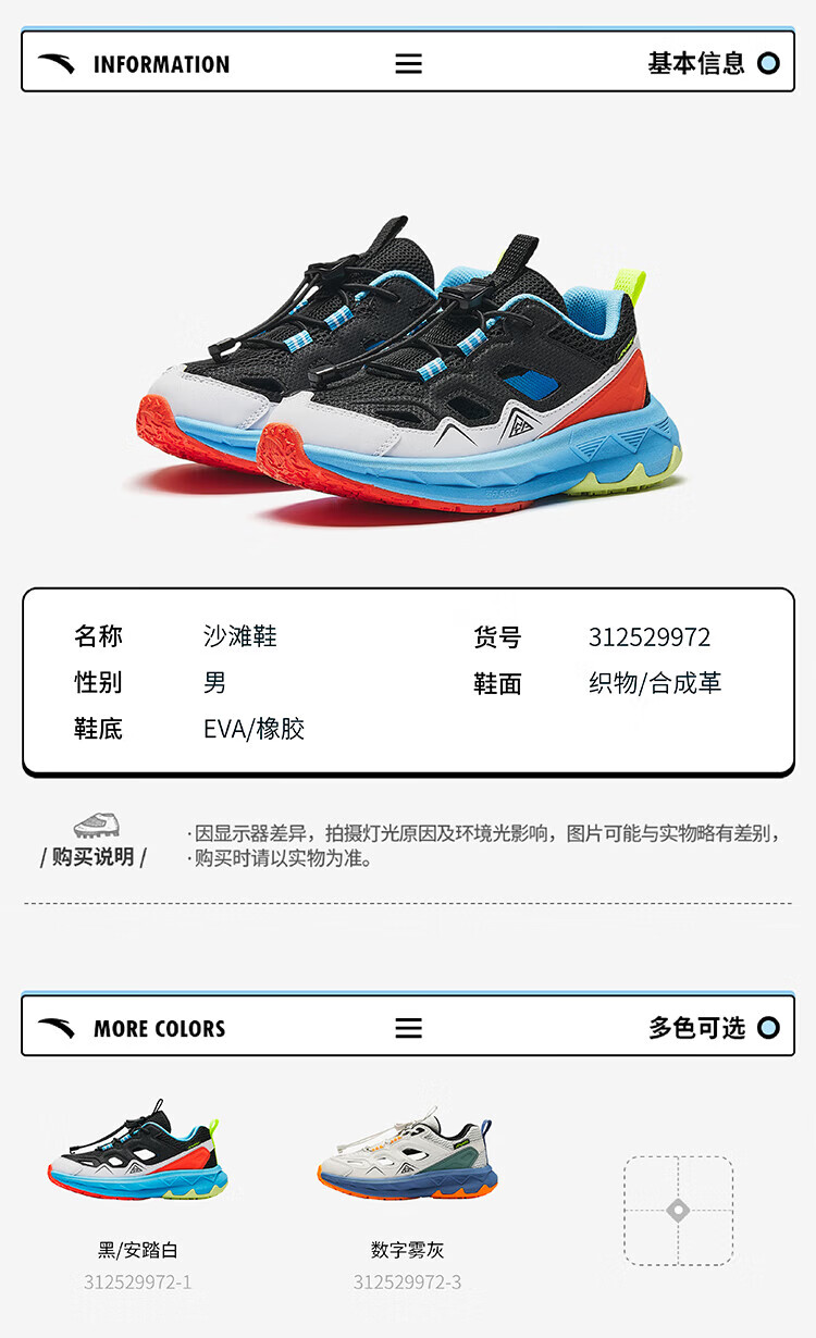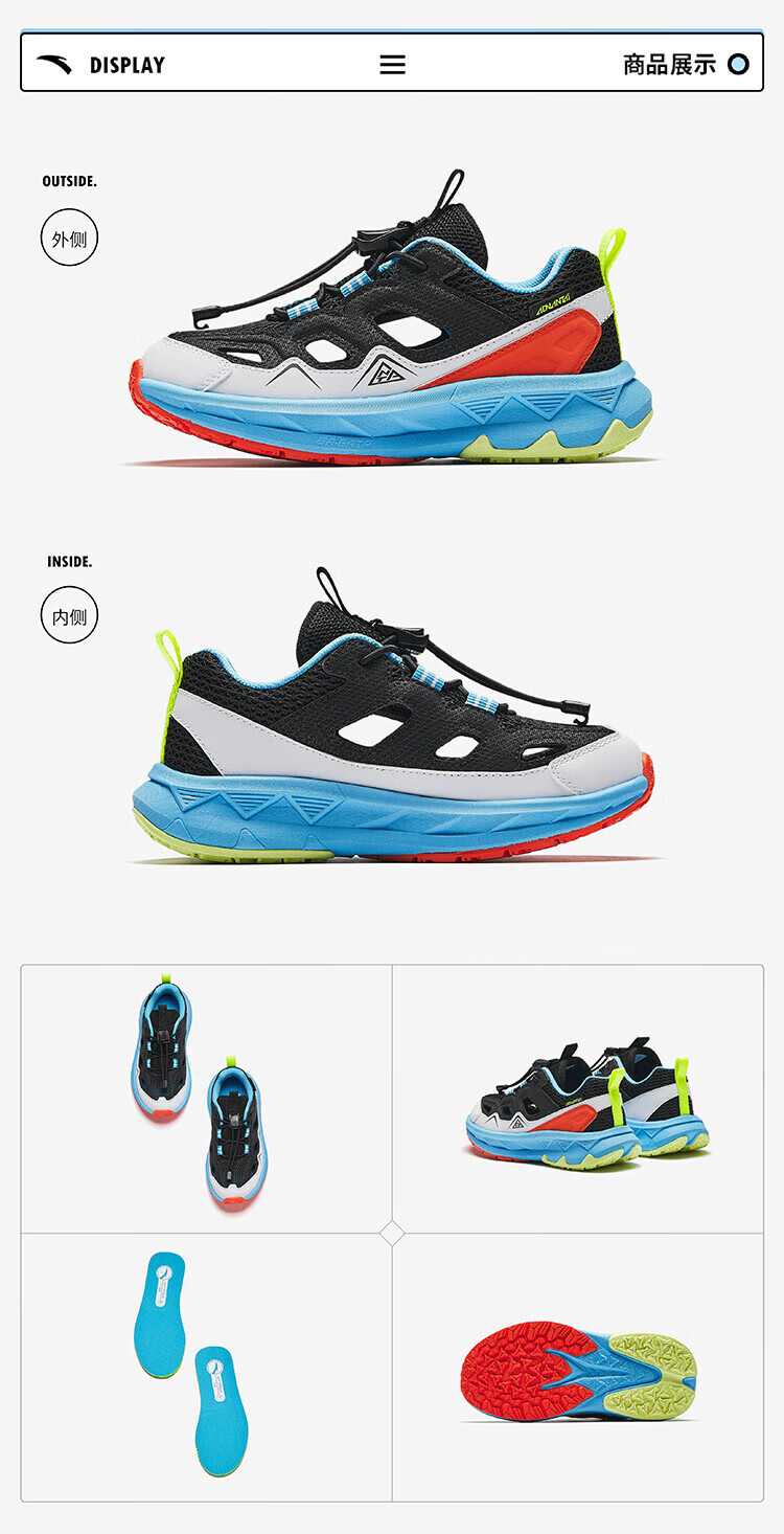 ANTA Children's Sandals Boys' Shoes 2026 Summer New Arrivals Strong Spring Outdoor Mountain Hiking Beach Shoes Frame Sports Shoes Black/Anta White-1 30