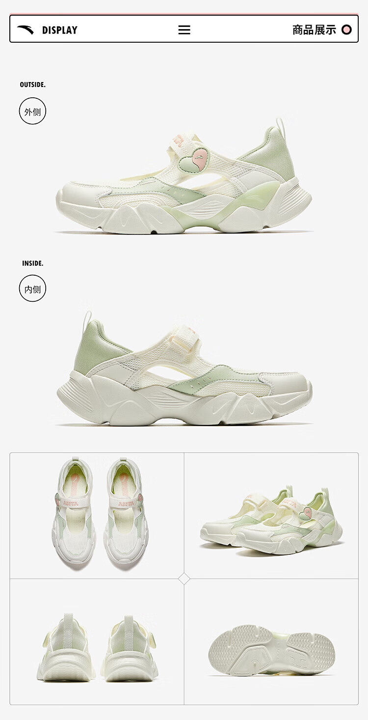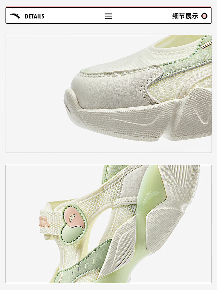 ANTA children's and girls' frame shoes 2026 summer new style comfortable non-slip wear-resistant Velcro breathable beach shoes sandals ivory white/yocao green-3 33