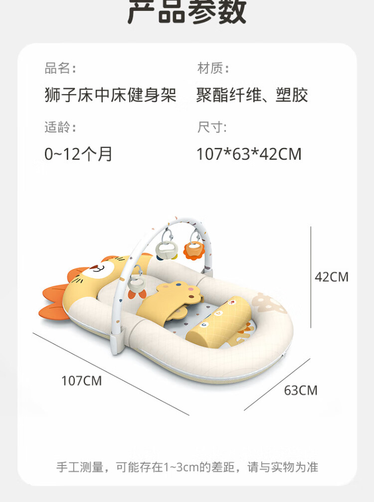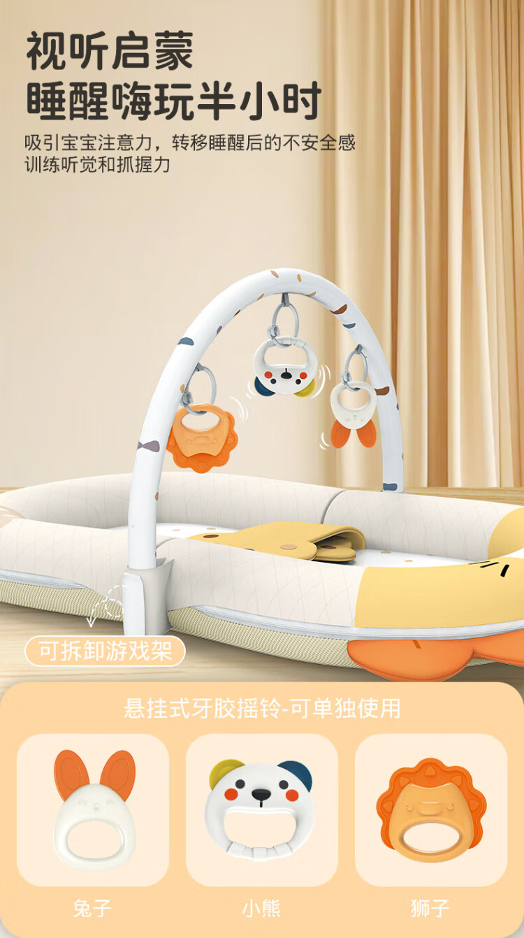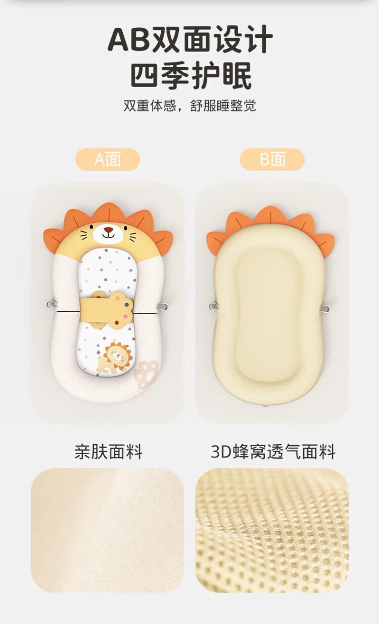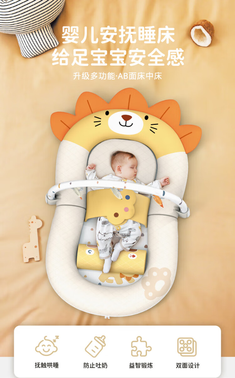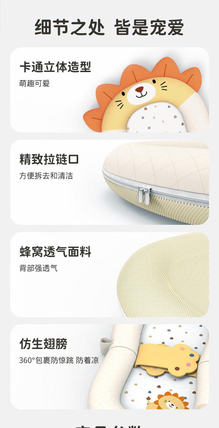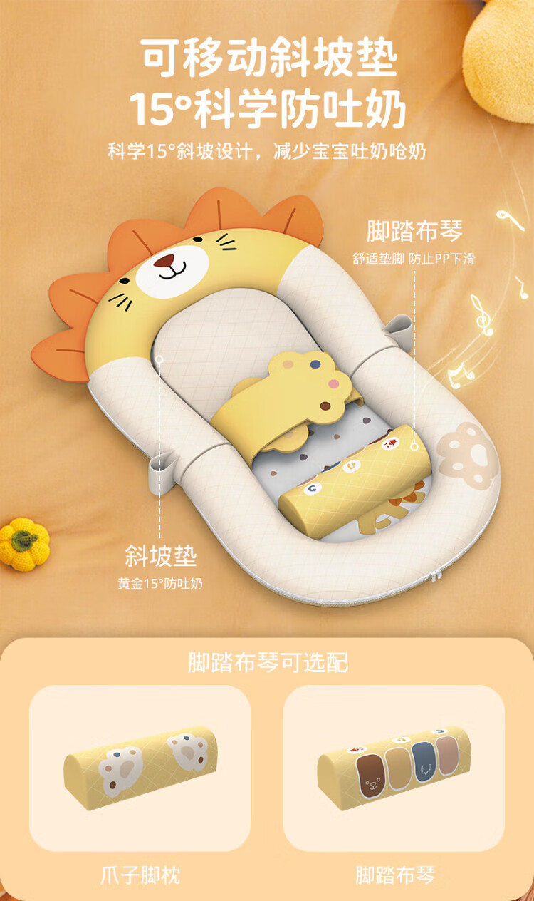 Ledingdong crib middle bed slope pillow anti-vomiting foldable newborn baby feeding artifact 0-6 months gift cute lion comfort bed