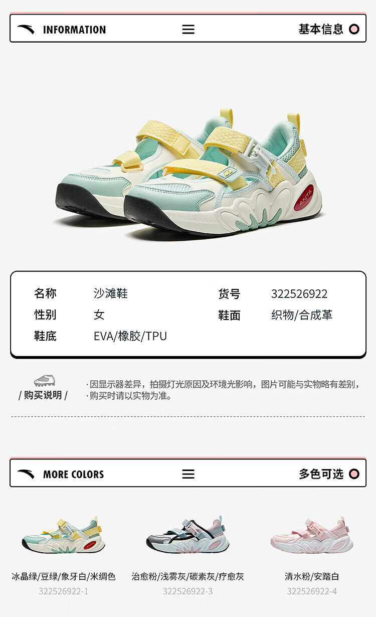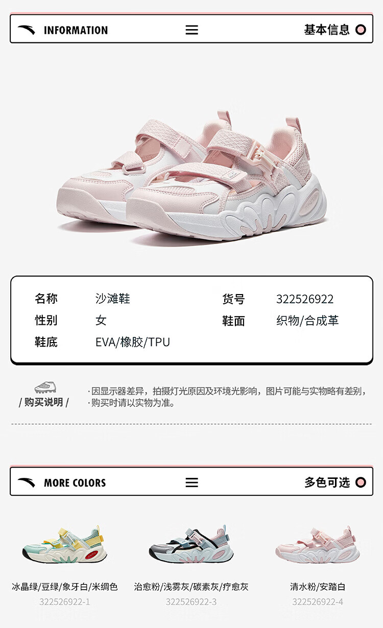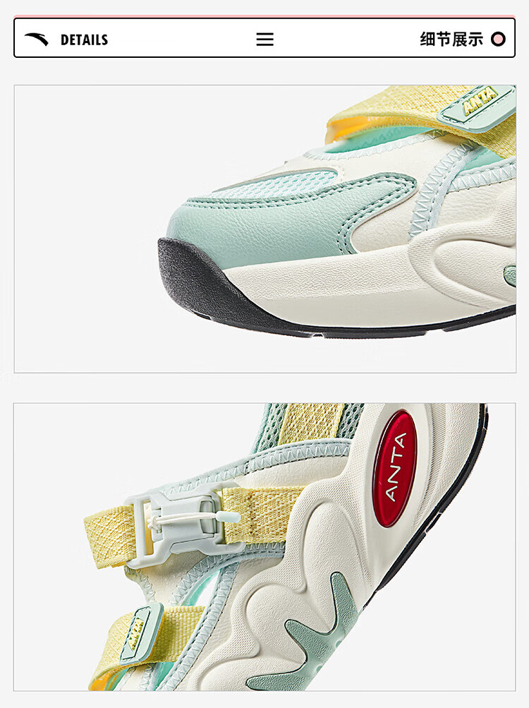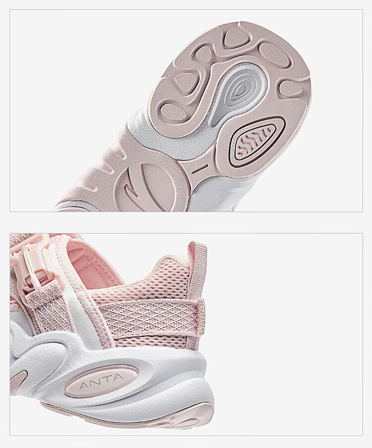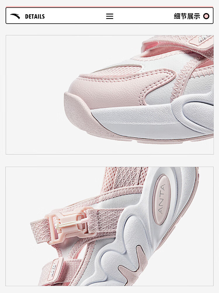 ANTA Children's Sandals Girls' Shoes 2025 Summer New Succulent Mary Jane Outdoor Sports Shoes Beach Shoes Healing Pink/Light Mist Gray/Carbon Gray/Healing Gray-3 34