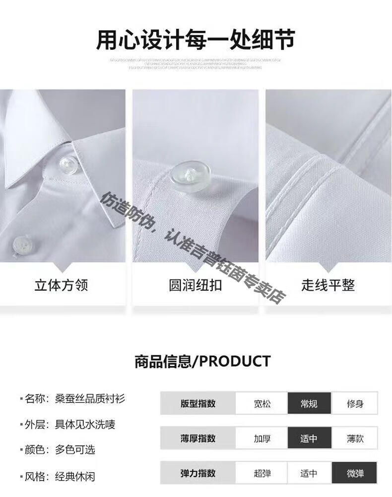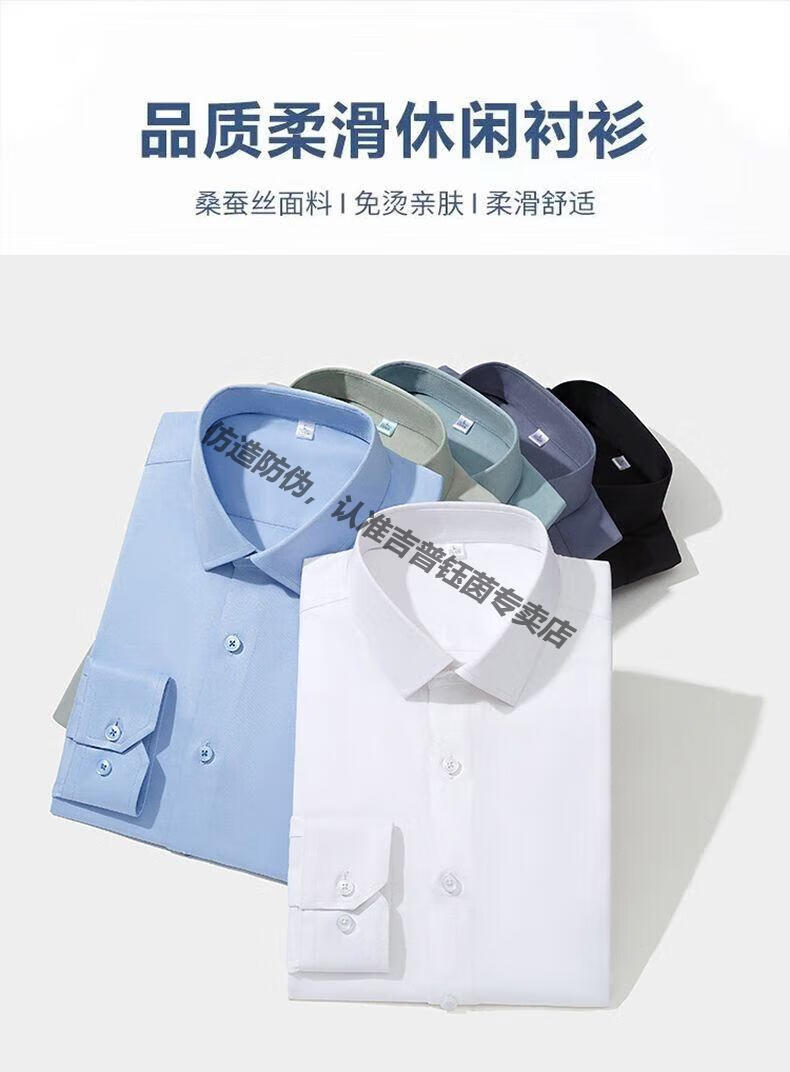 JEEP SPIRIT2025 Men's Shirt Long Sleeve Breathable Business Casual Stretch Solid Color Formal Anti-wrinkle No Ironing White Shirt Work Wear White C27 Long Sleeve Shirt M Recommended 100-120Jin Jin equals 0.5kg