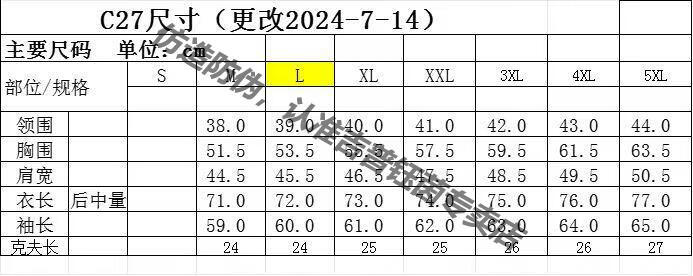 Size (cm) 42 44 46 48 50