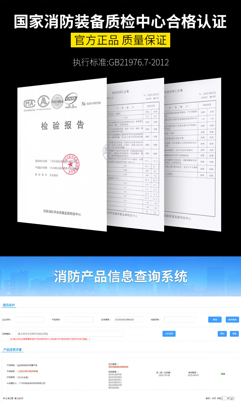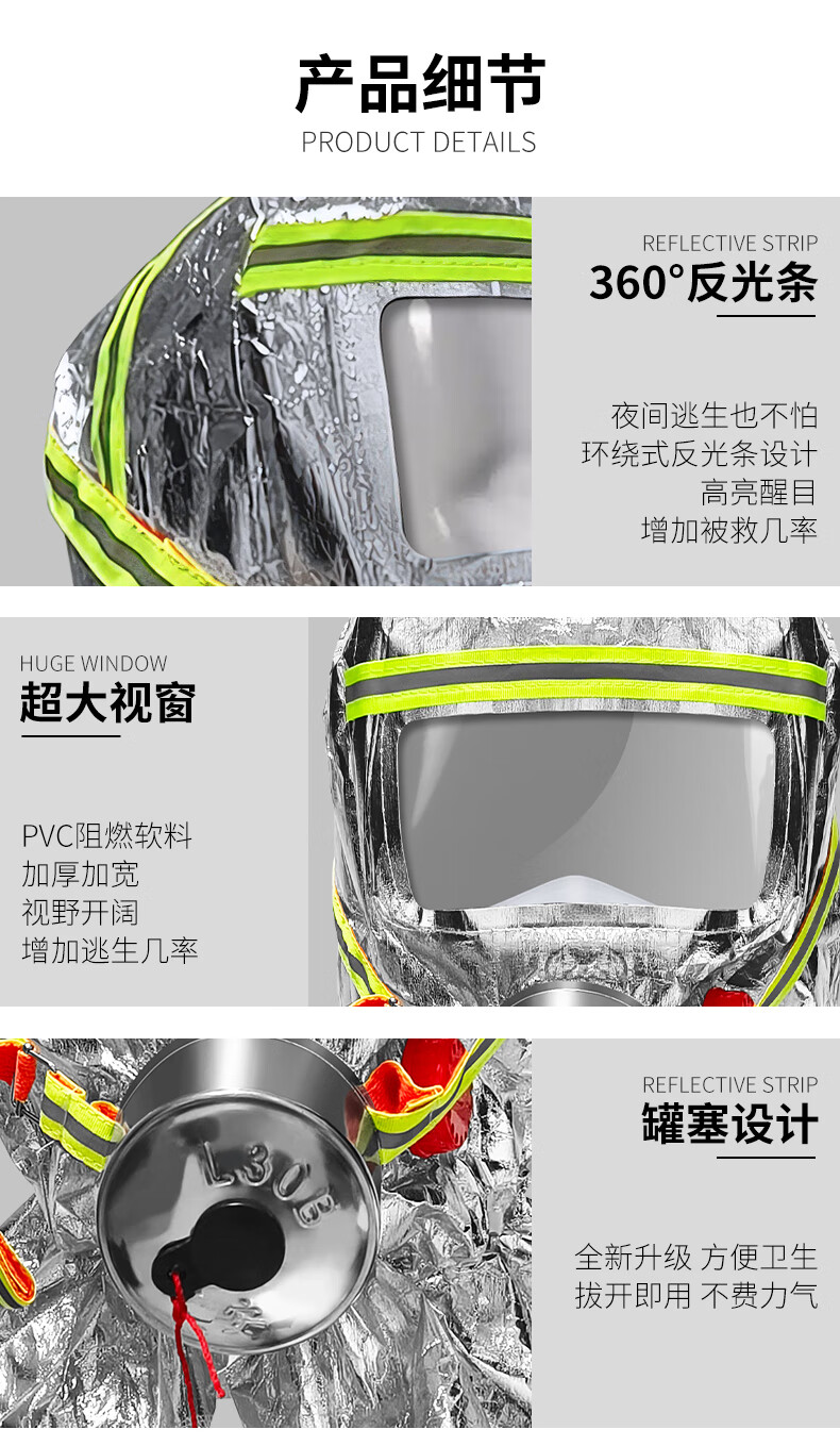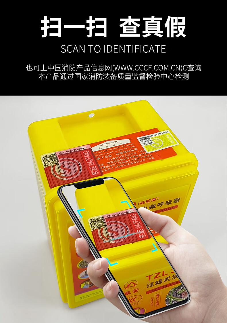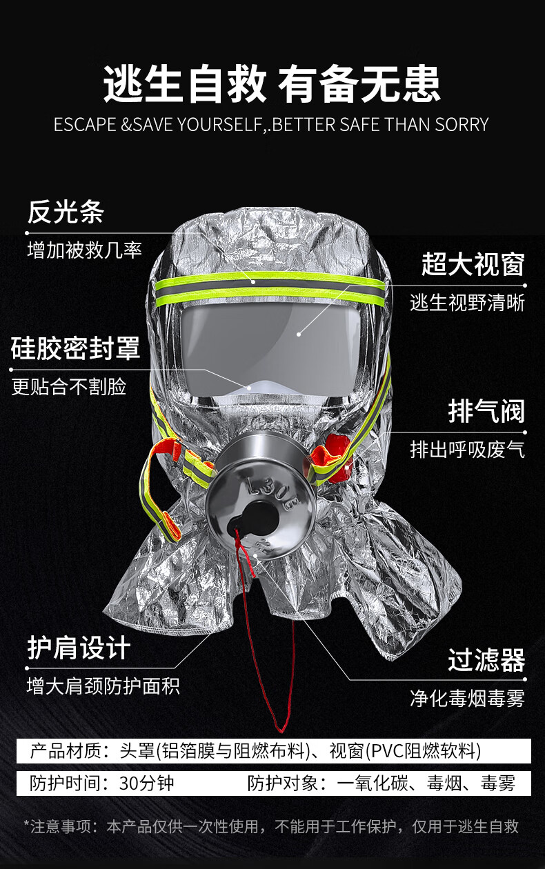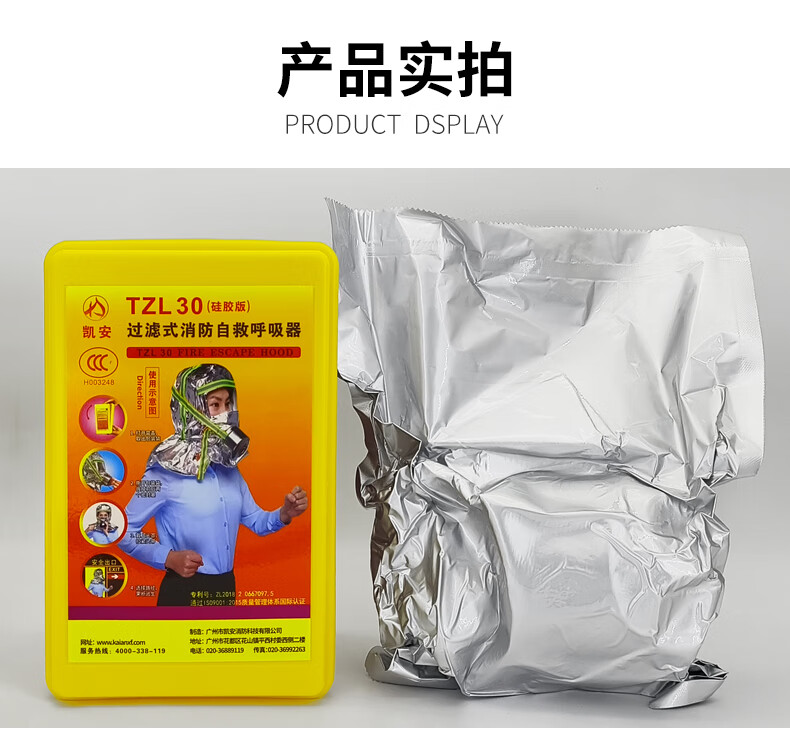 Jumu Kai'an fire mask national standard 3C certified anti-virus and anti-smoke mask fire escape mask filter respirator shawl style TZL30 silicone filter mask