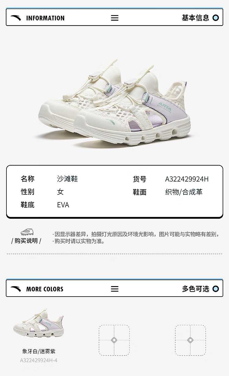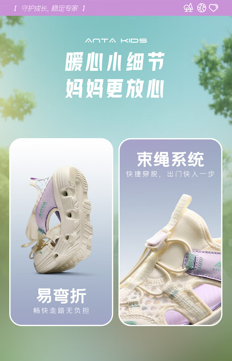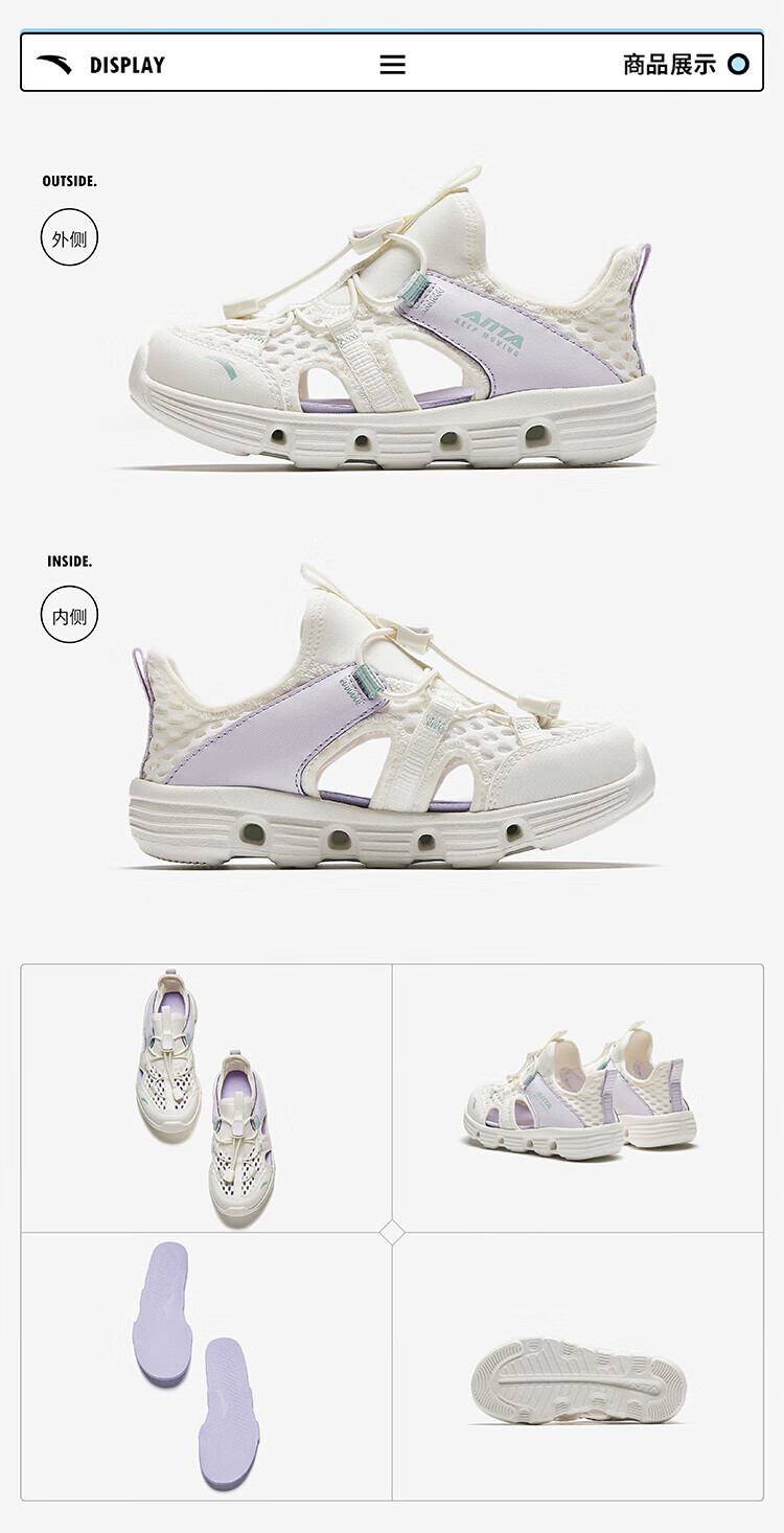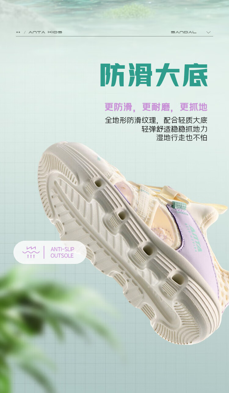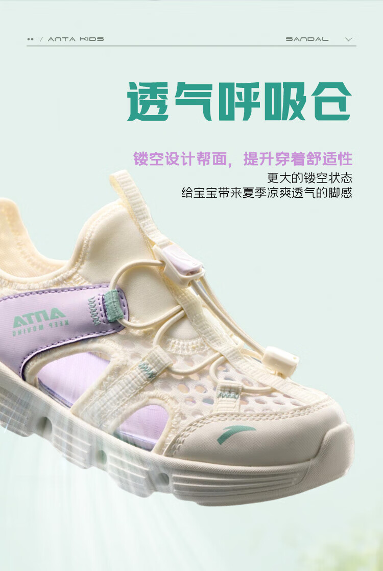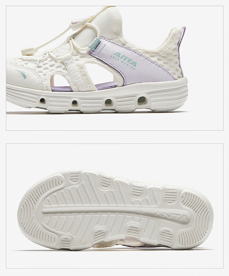 ANTA Children's Sandals Girls' Shoes 2025 Summer New Baotou Outdoor Amphibious River Tracing Shoes Beach Shoes Ivory White/Mist Purple-4 28 Shoe Inner Length 17.5cm