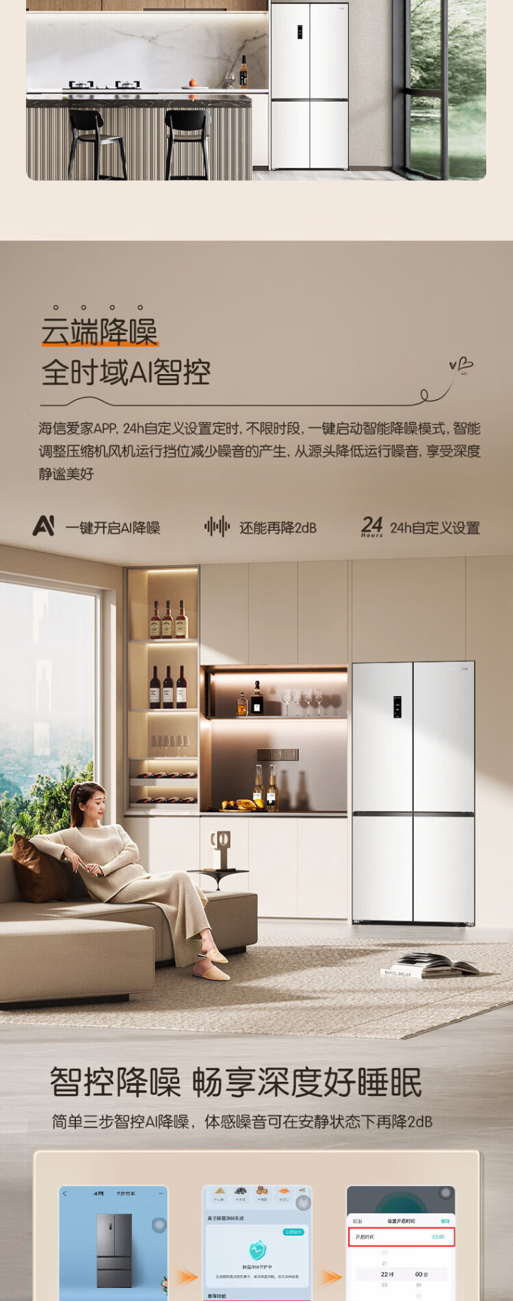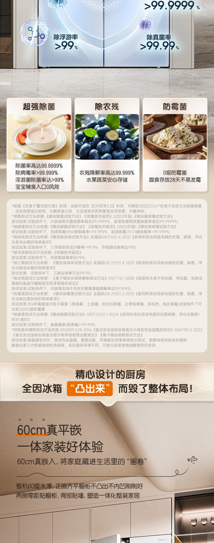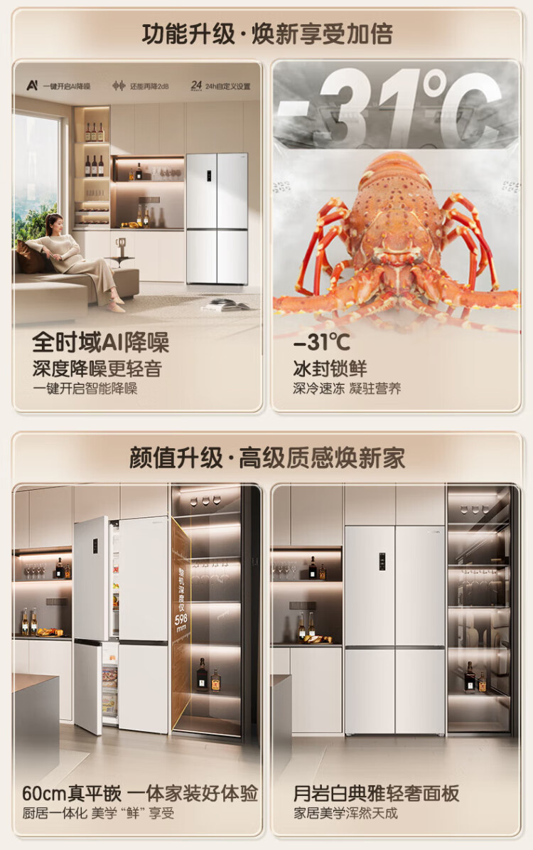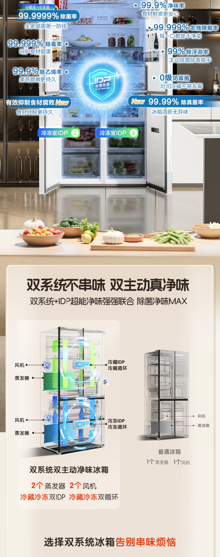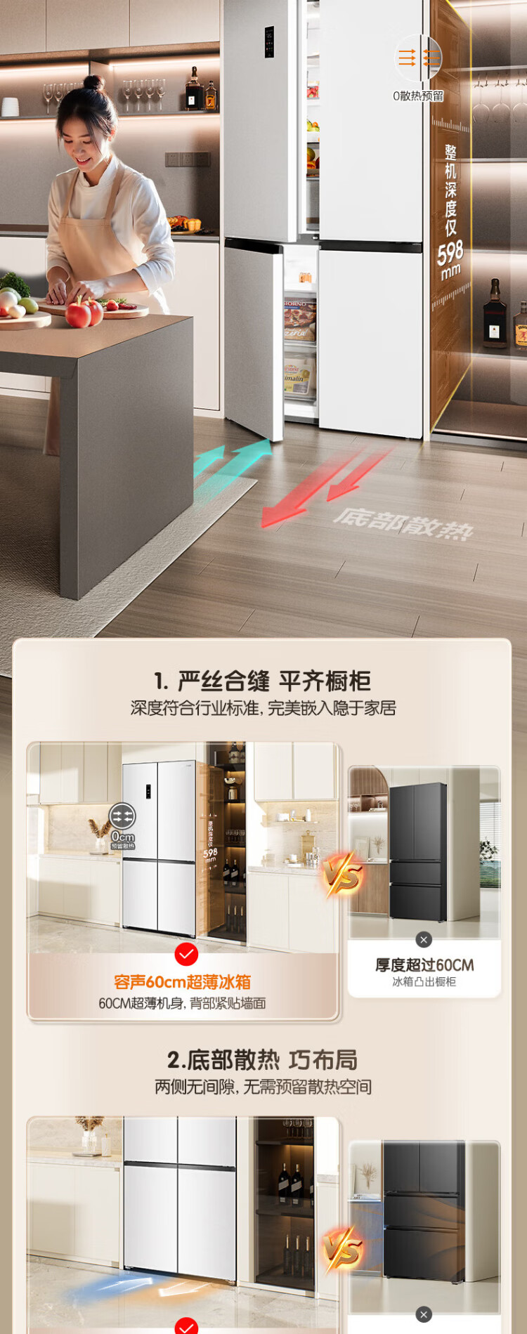 Rongsheng Tangtang 505 active dual-purification dual-system cross four-door multi-door ultra-thin zero-embedded refrigerator household first-class energy efficiency BCD-505P60CZMAD white national subsidy