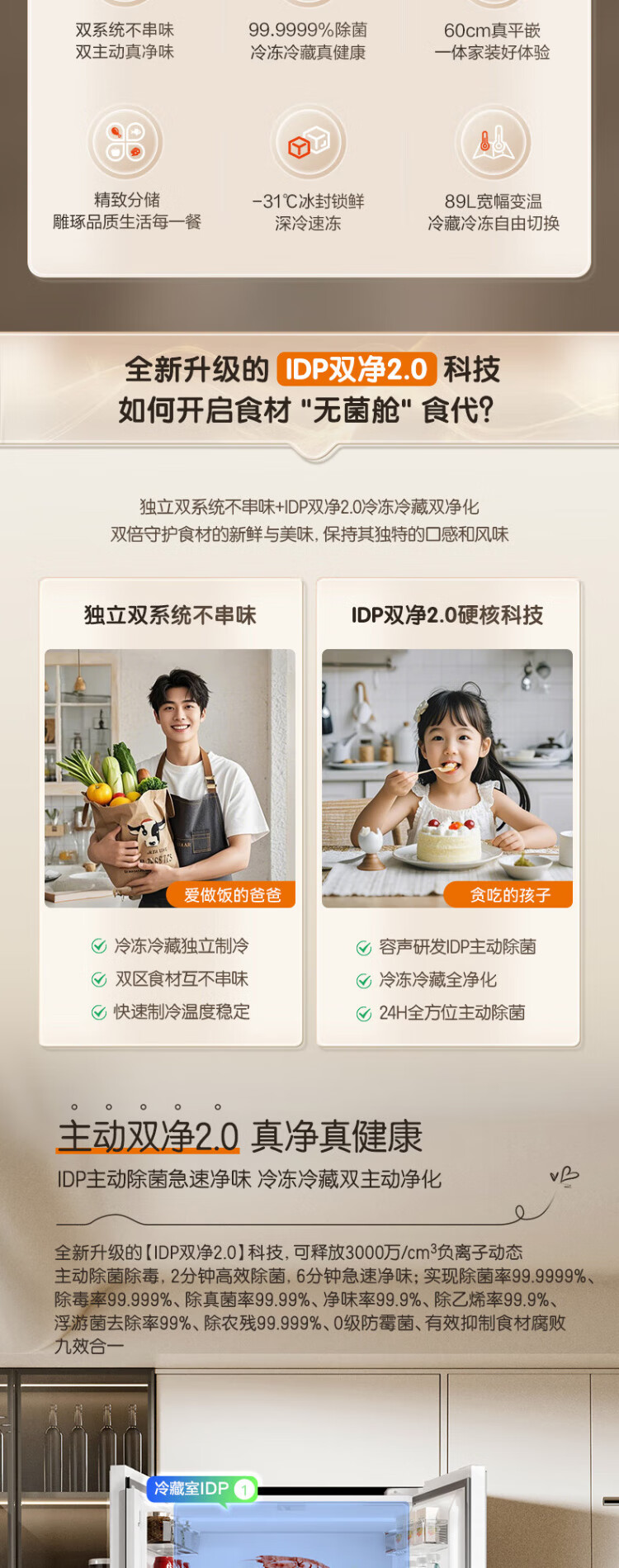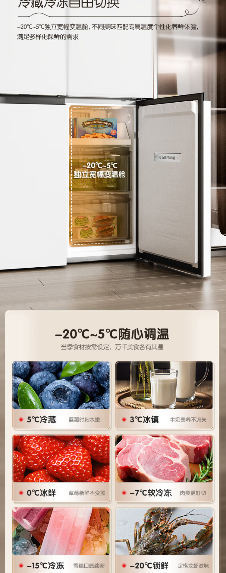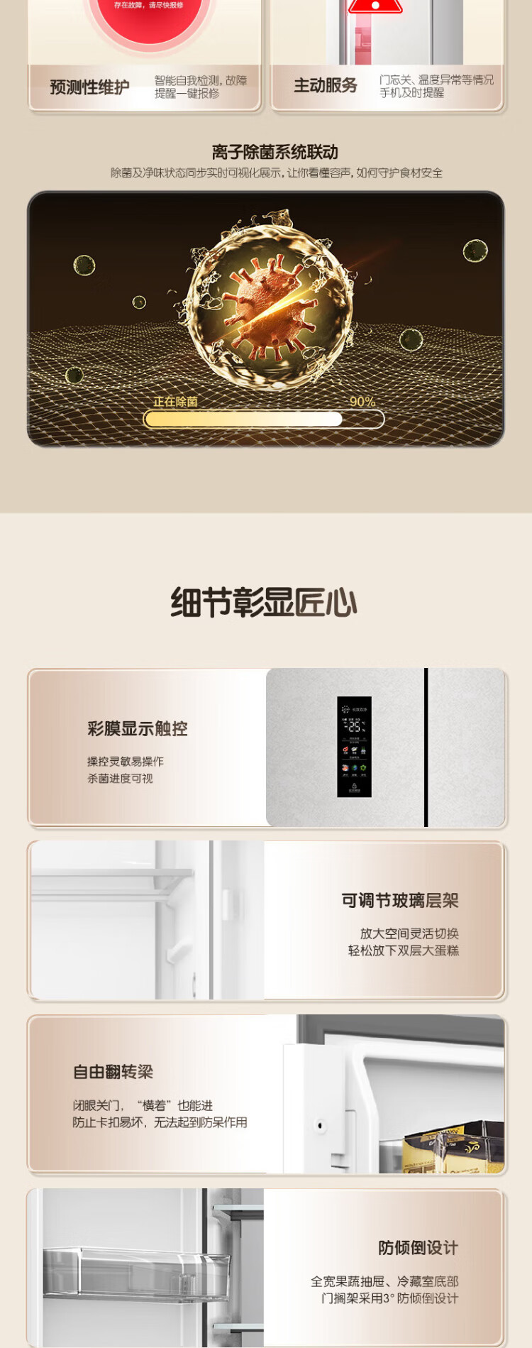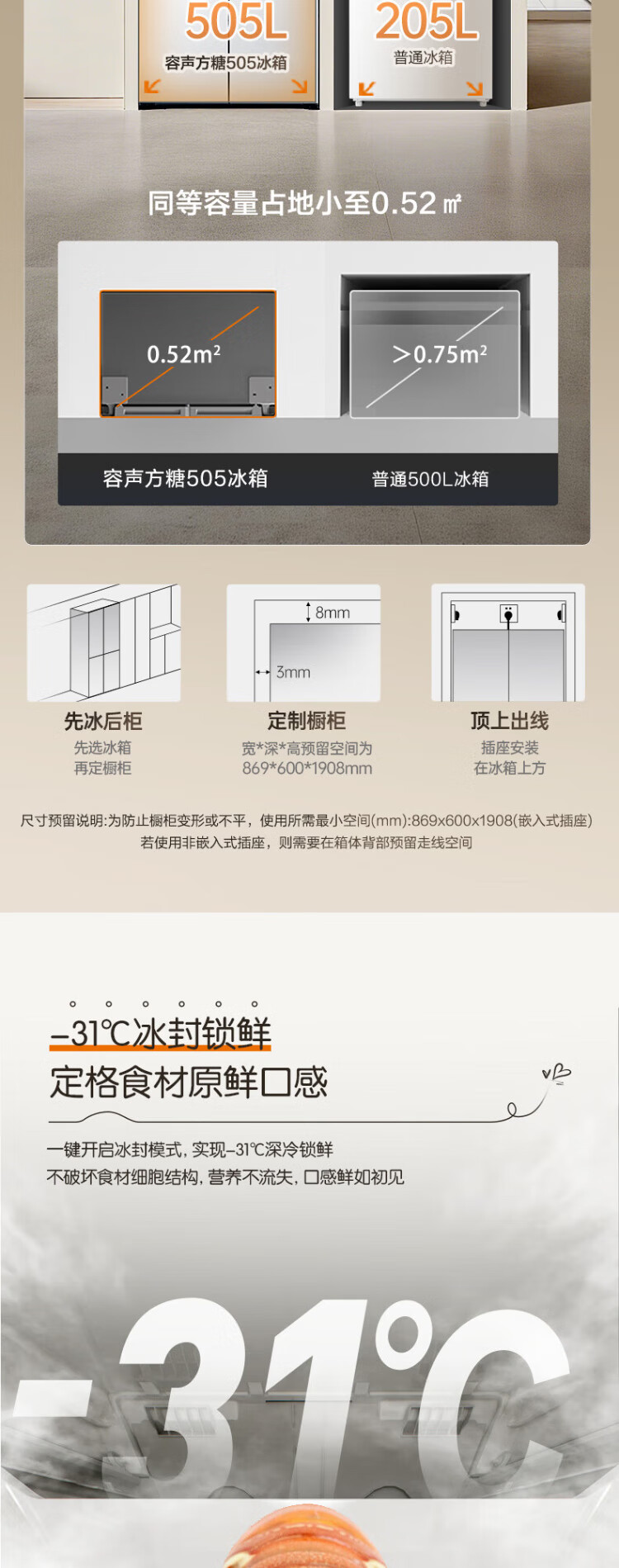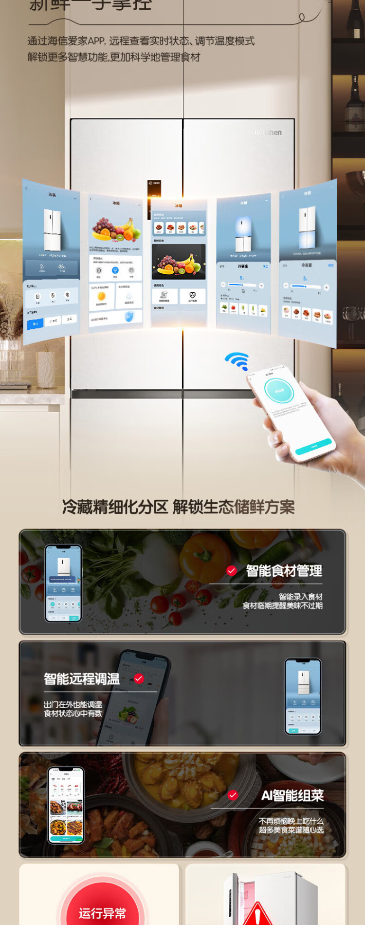 Rongsheng Tangtang 505 active dual-purification dual-system cross four-door multi-door ultra-thin zero-embedded refrigerator household first-class energy efficiency BCD-505P60CZMAD white national subsidy