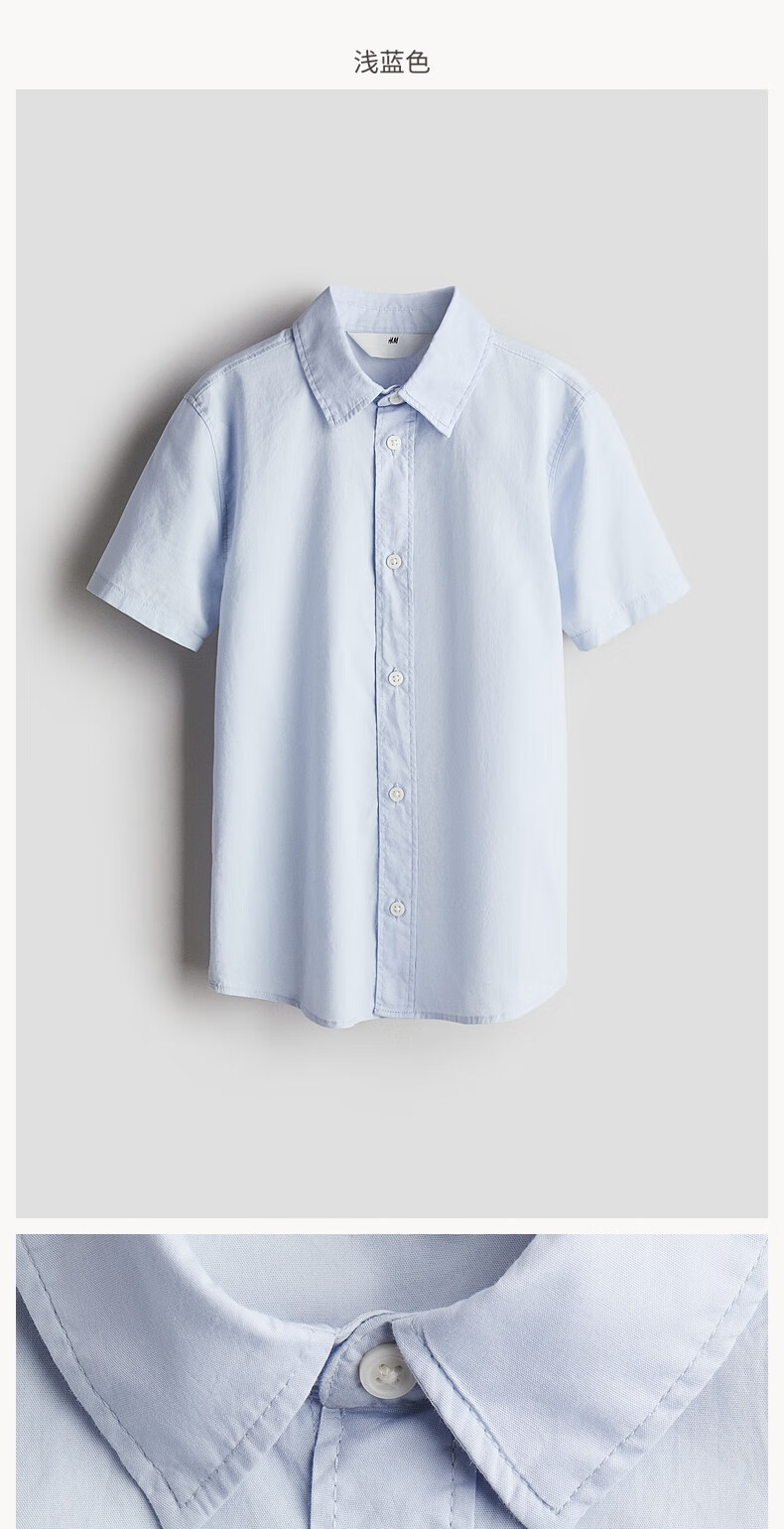 H&M children's clothing children's boys' shirts spring dress performance clothes formal shirt cotton short-sleeved top 1273445 light blue 165 165/84 (13-14Y)