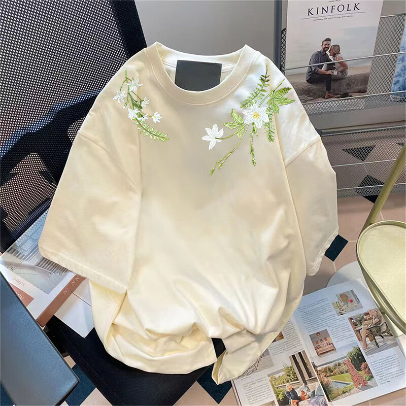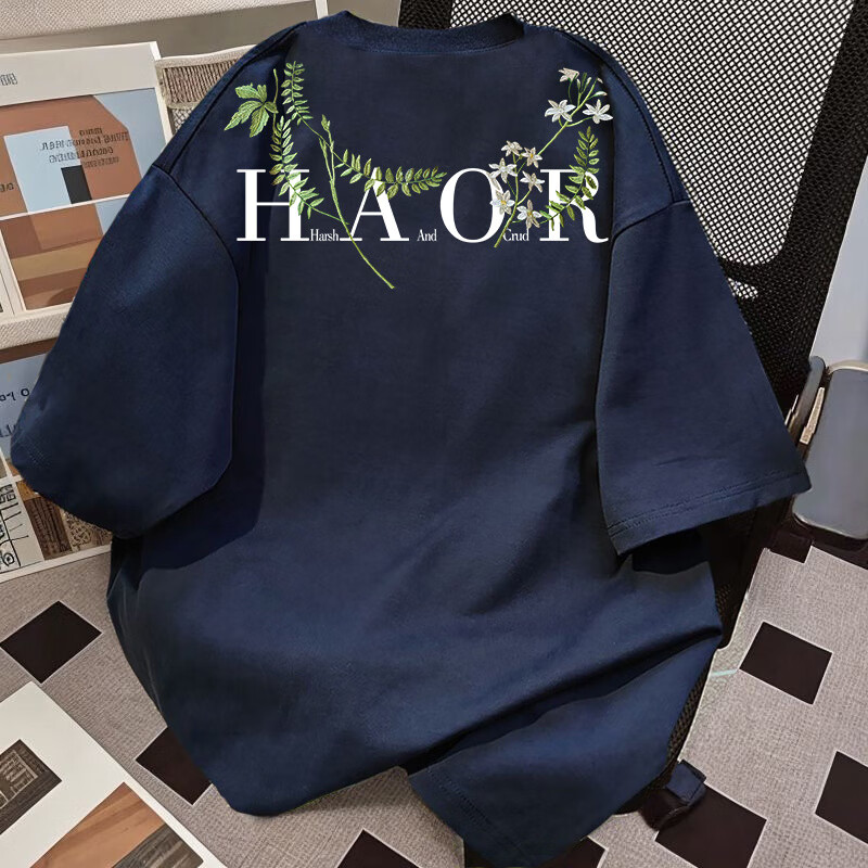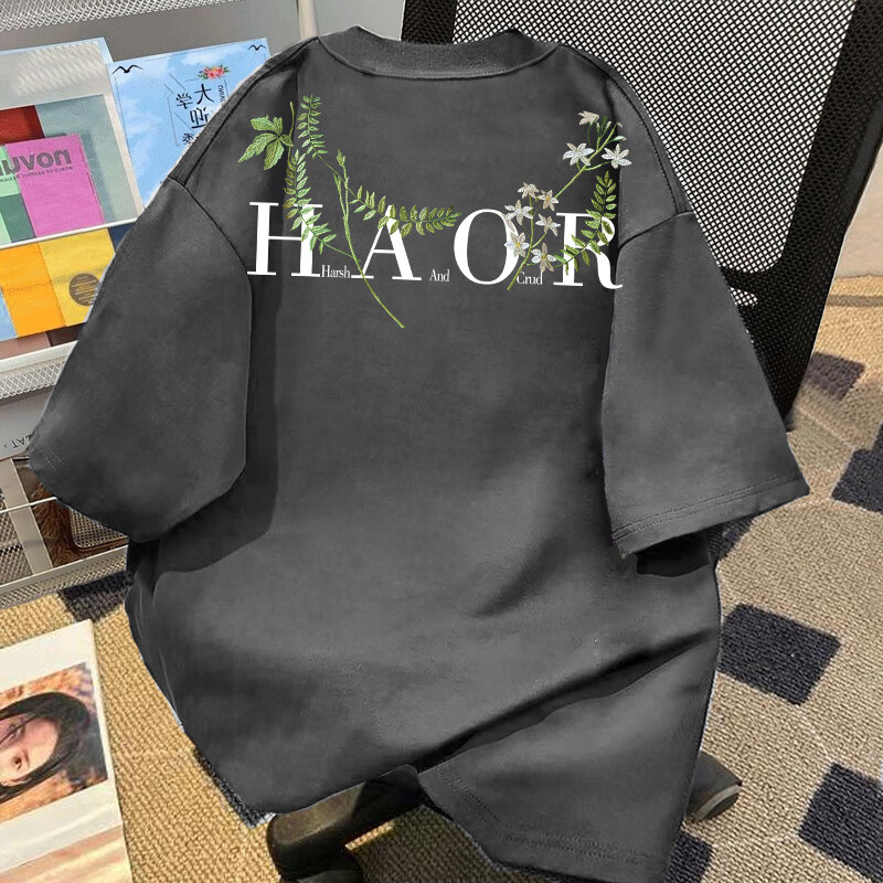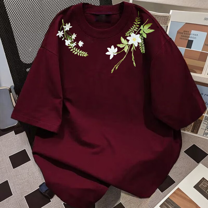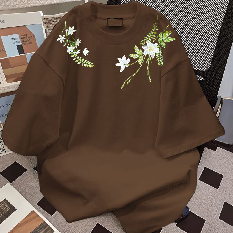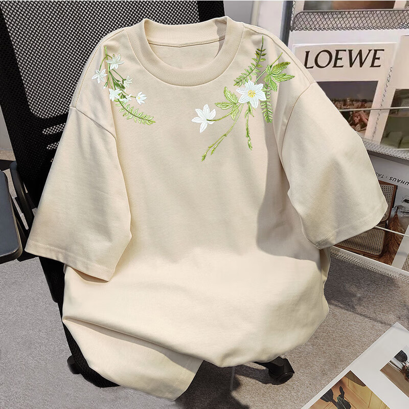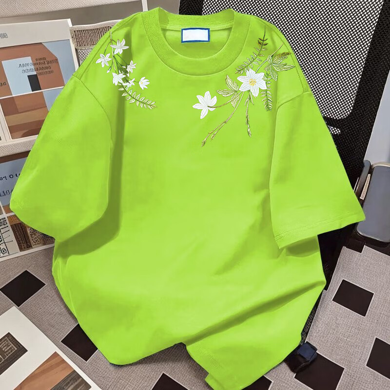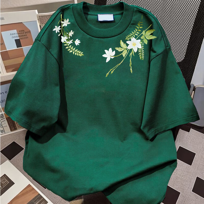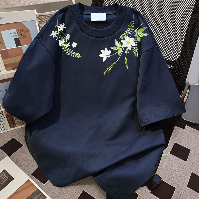 Su Yu 100% pure cotton American new Chinese style floral garland short-sleeved T-shirt for women summer loose trendy brand top half-sleeved men's 220g - black M recommended 95-110Jin Jin is equal to 0.5 kg