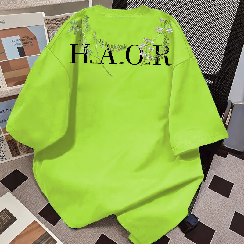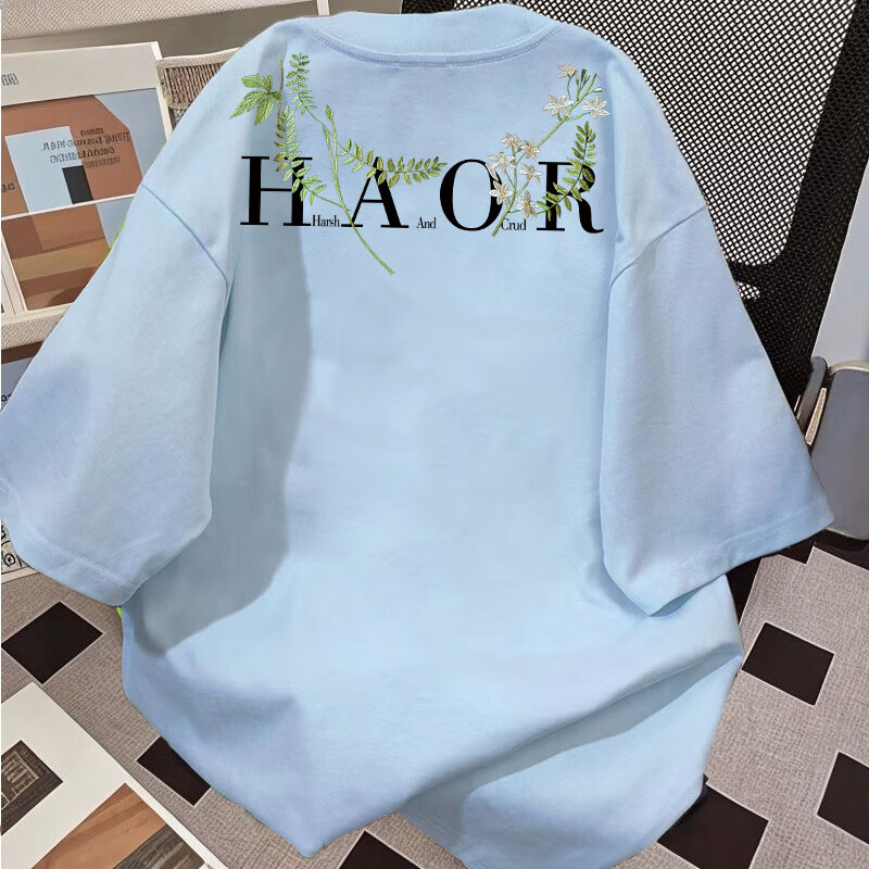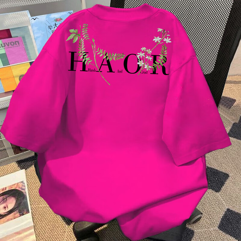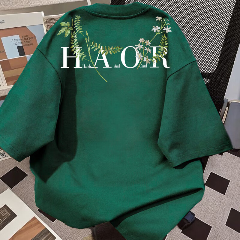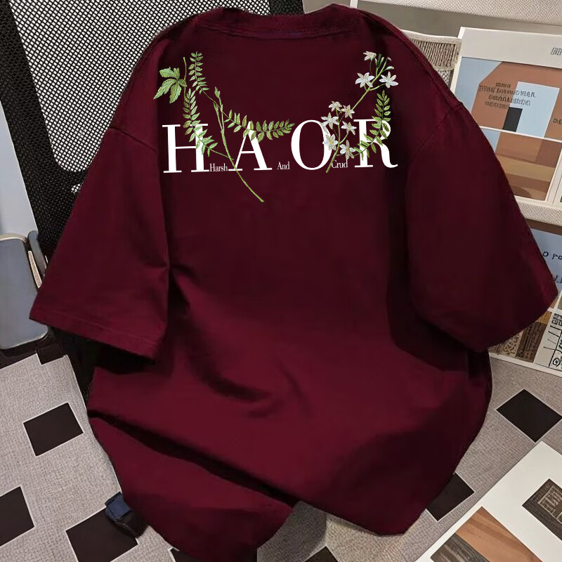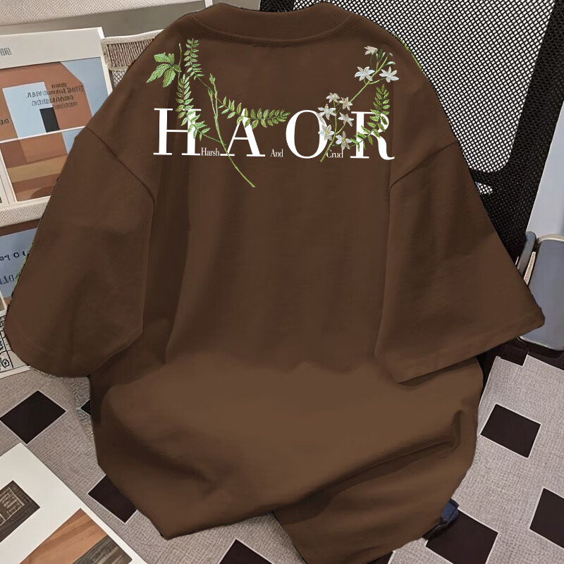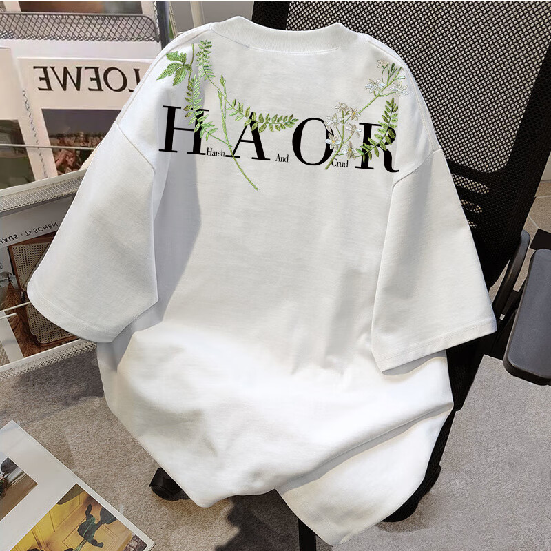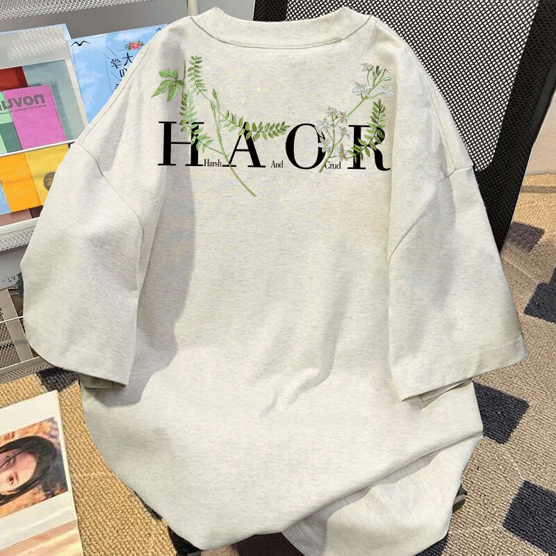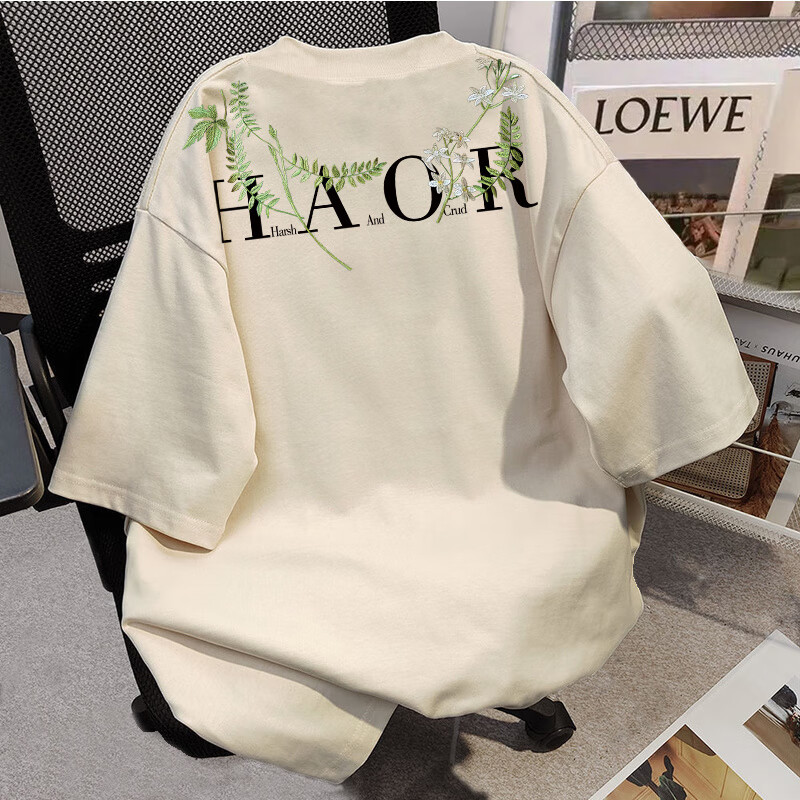 Su Yu 100% pure cotton American new Chinese style floral garland short-sleeved T-shirt for women summer loose trendy brand top half-sleeved men's 220g - black M recommended 95-110Jin Jin is equal to 0.5 kg