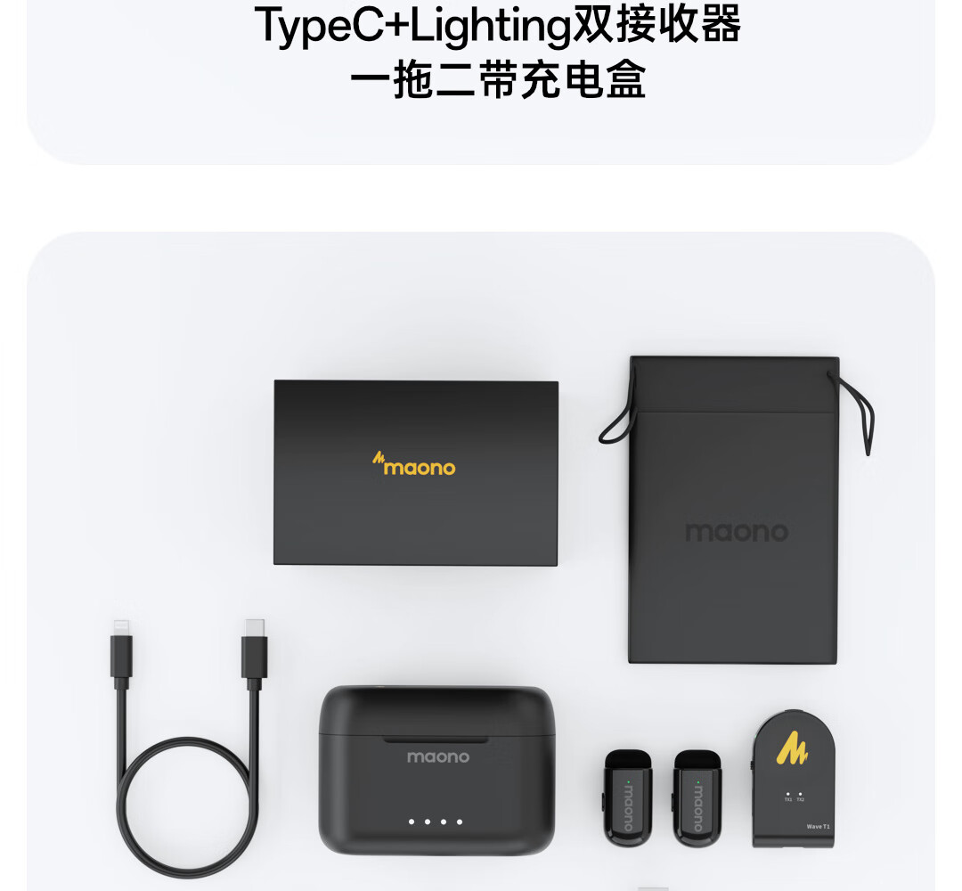 Maono Wireless Microphone Lavalier Microphone One-to-Two Live Broadcast Short Video Outdoor Noise Reduction Android and Apple Phone Camera Recording Professional Tuning Mini Microphone Voice Changer Maono T1mini T1 One-to-Two + Charging Compartment Android + Apple 15 and above