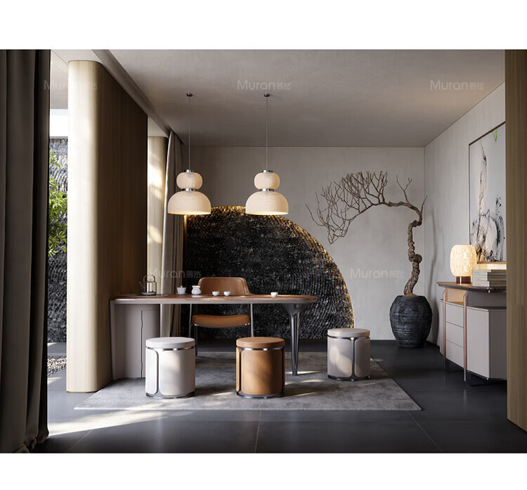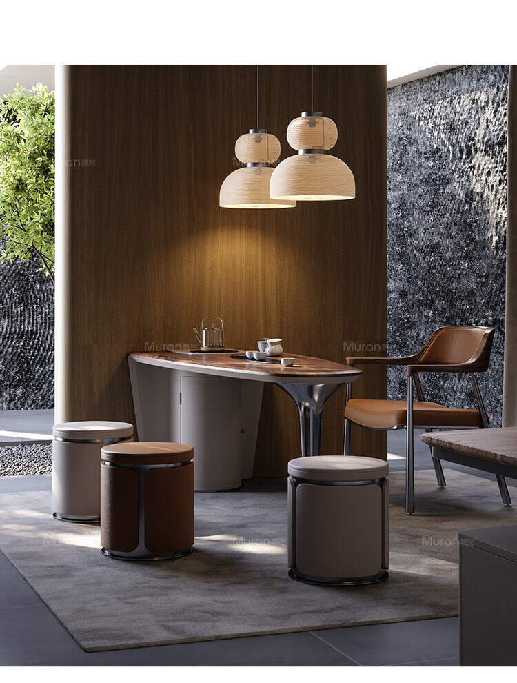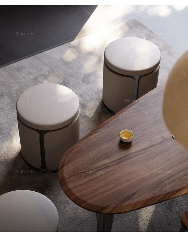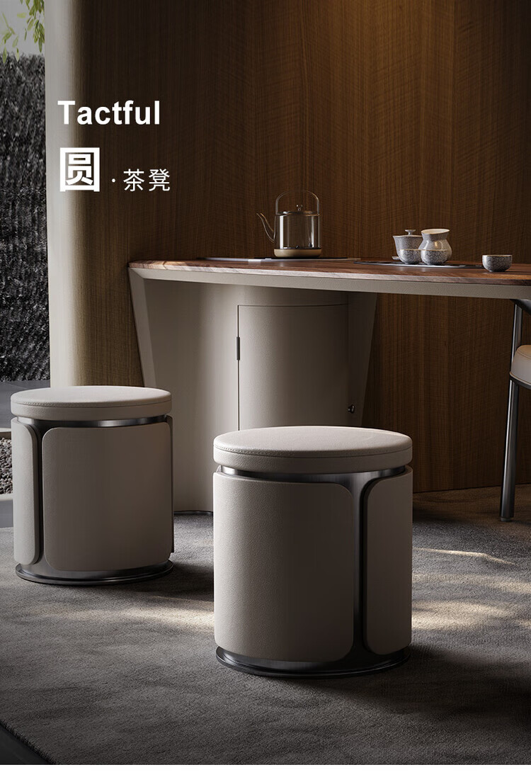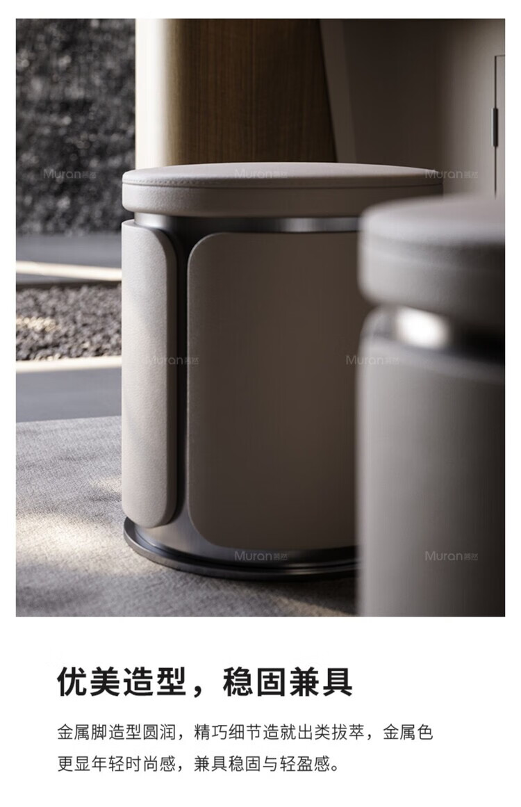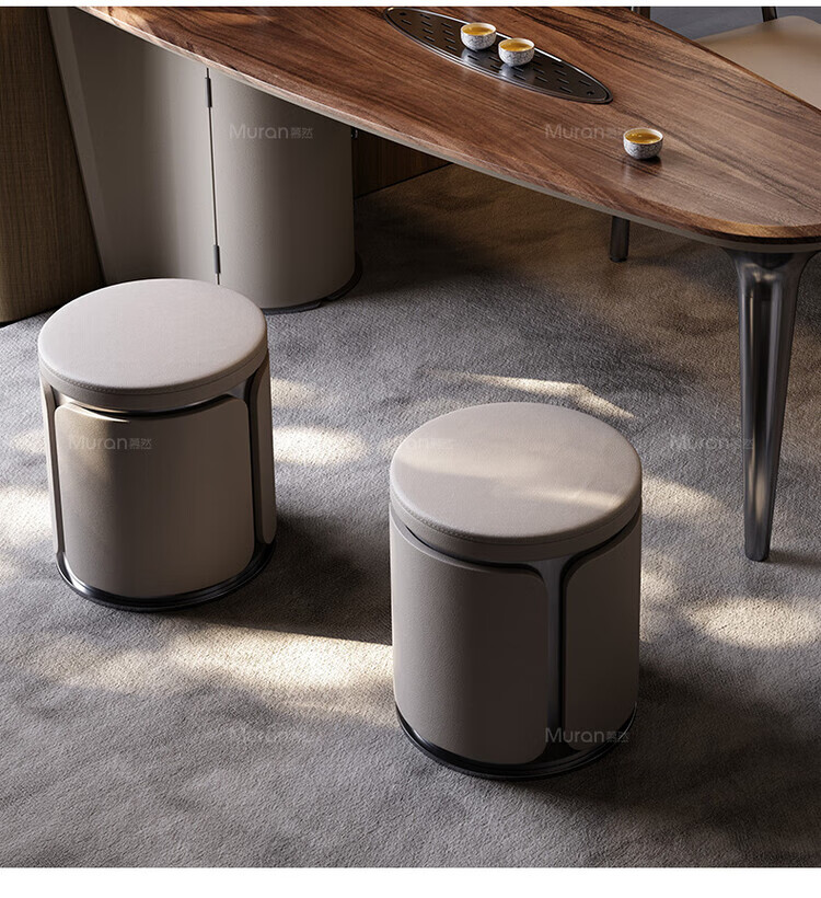 Senarson light luxury tea stool designer living room modern Internet celebrity leather round stool dressing table chair high-end desk small block Bronze black titanium microfiber leather tea stool