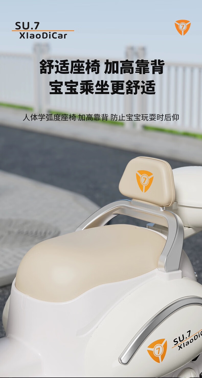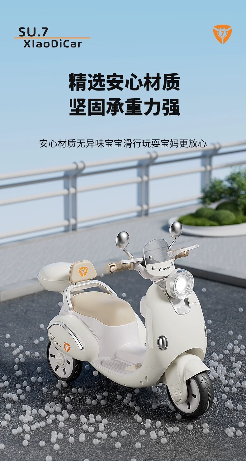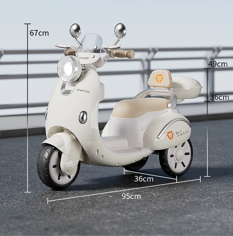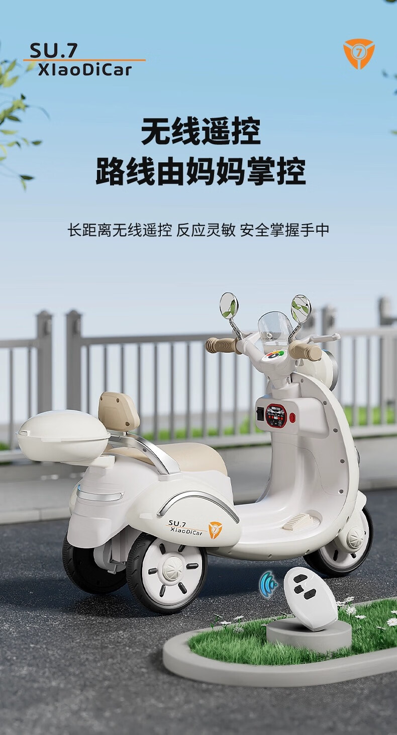 Aibei'ao children's electric motorcycle tricycle for boys and girls baby battery car children's car rechargeable early education remote control toy off-white remote control dual drive + 6V7A + Bluetooth music Children's Day gift