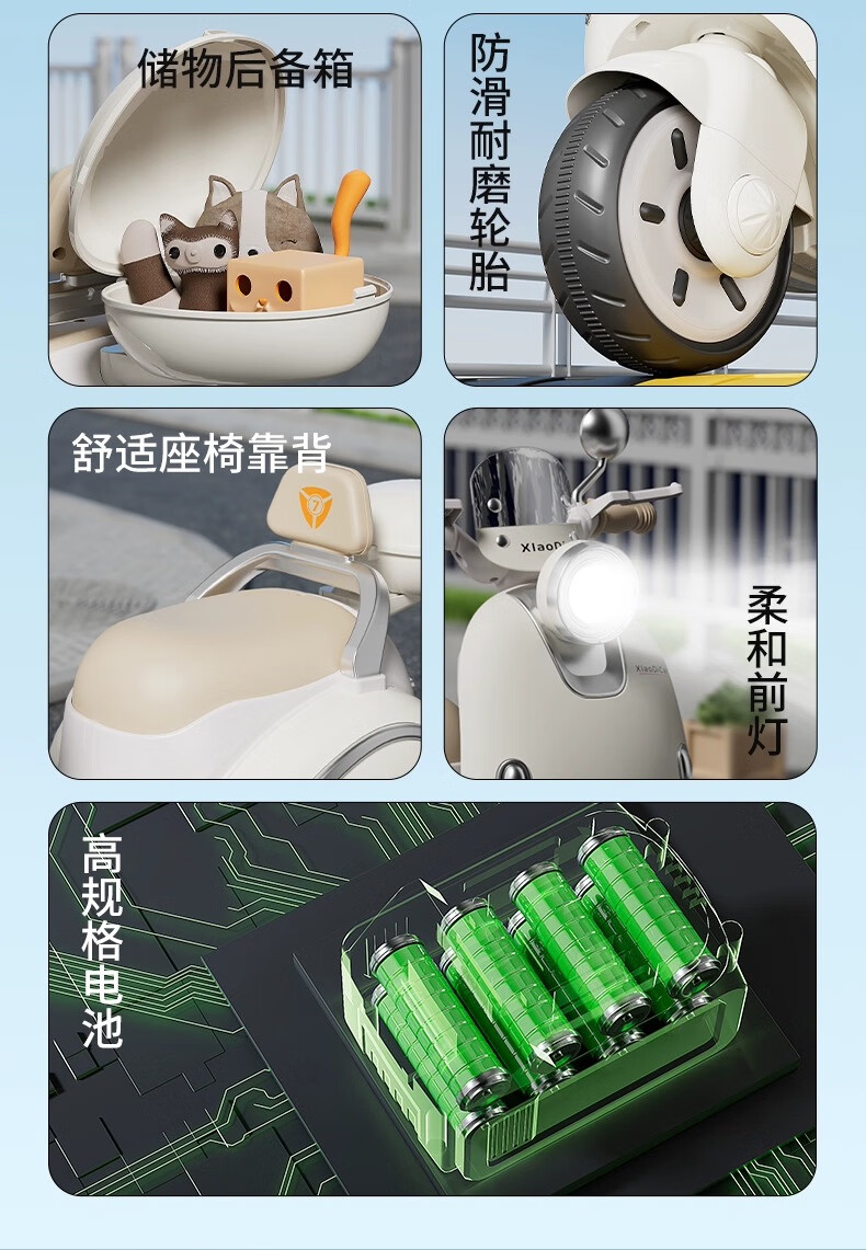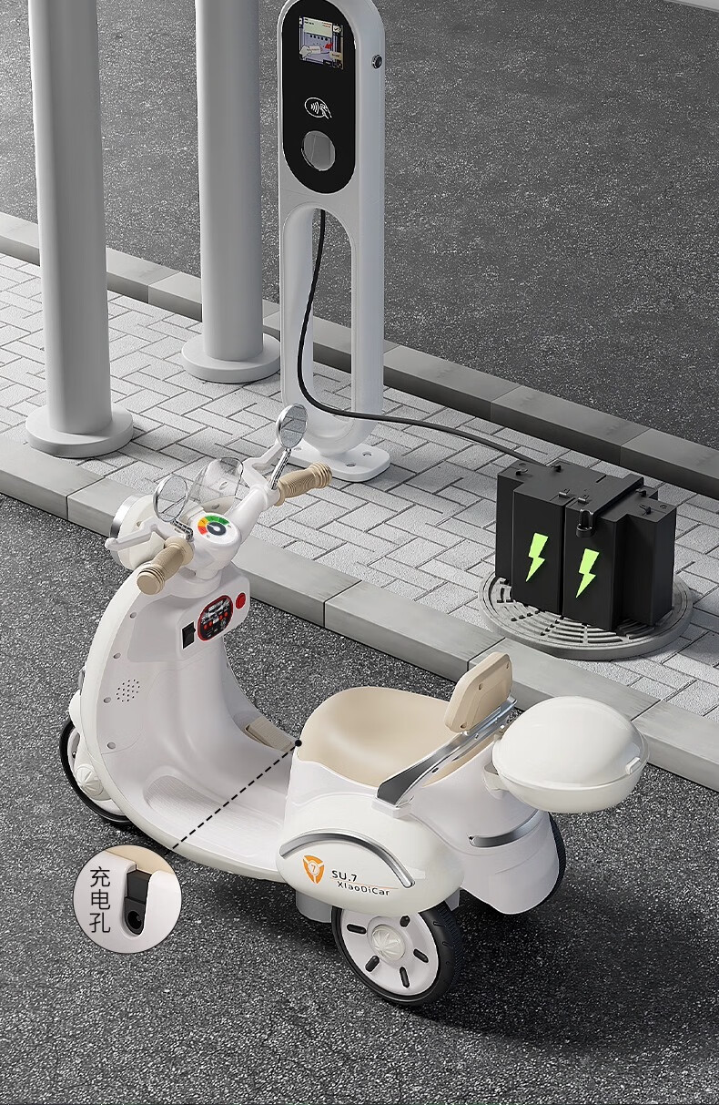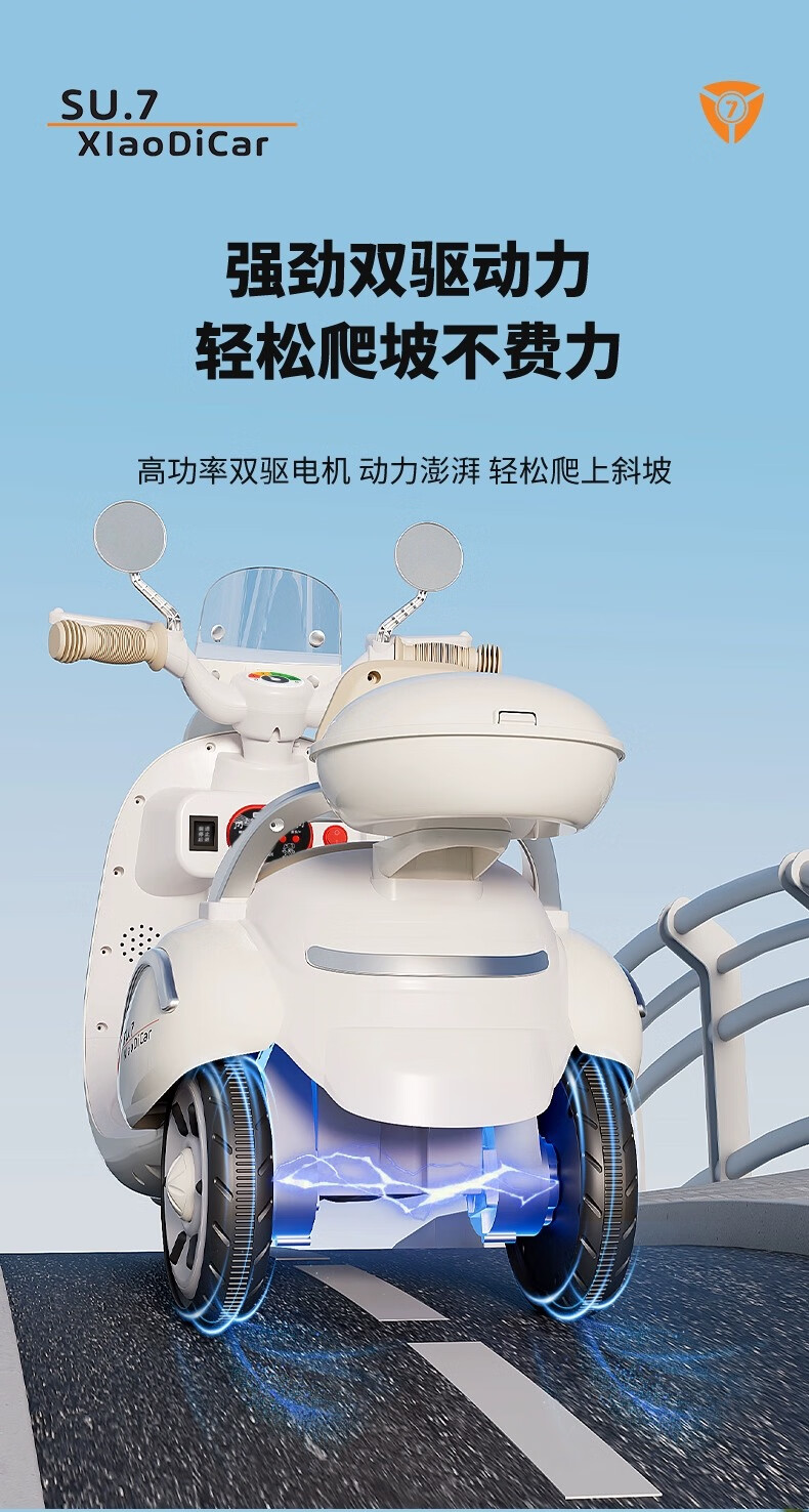 Aibei'ao children's electric motorcycle tricycle for boys and girls baby battery car children's car rechargeable early education remote control toy off-white remote control dual drive + 6V7A + Bluetooth music Children's Day gift
