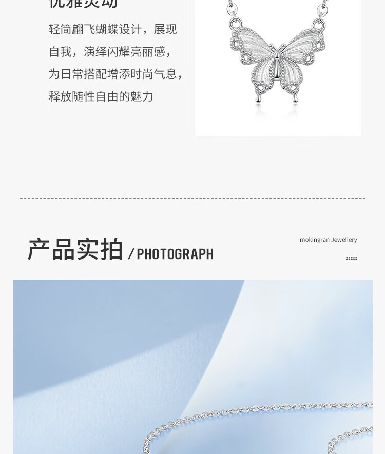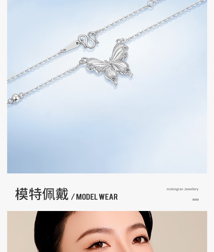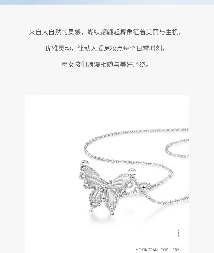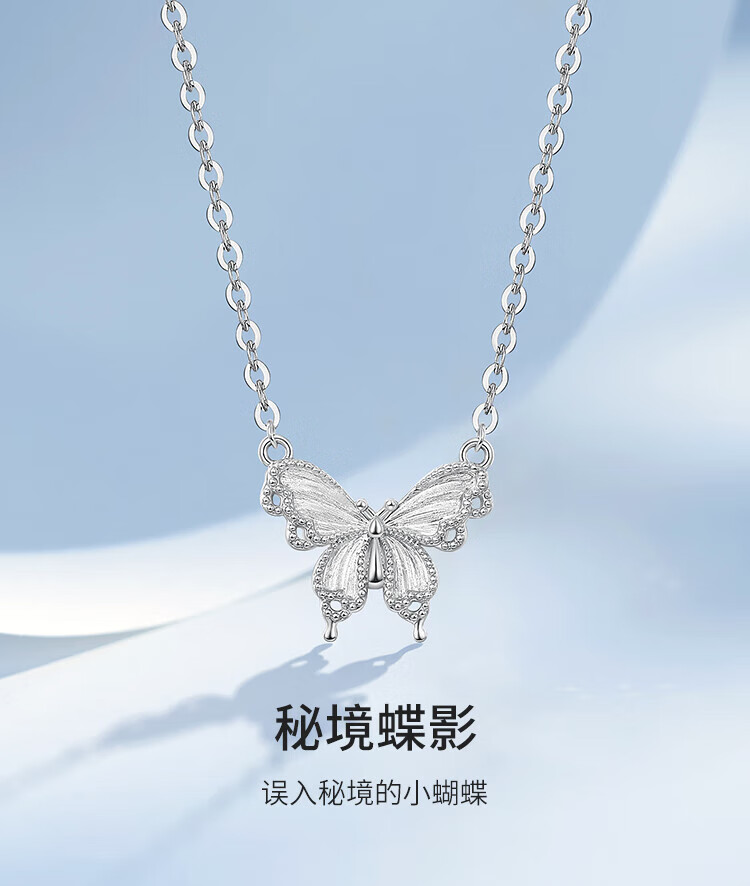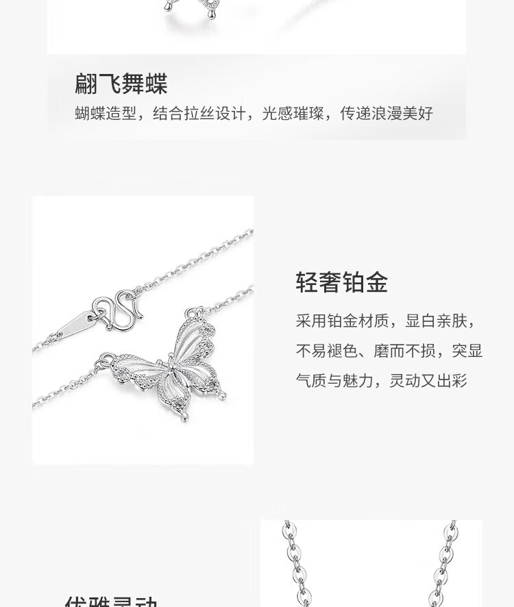Mengjinyuan Platinum Necklace PT950 Platinum Butterfly Necklace Secret Butterfly Shadow Set Chain for Girlfriend’s Birthday Gift 43cm - About 4.85g