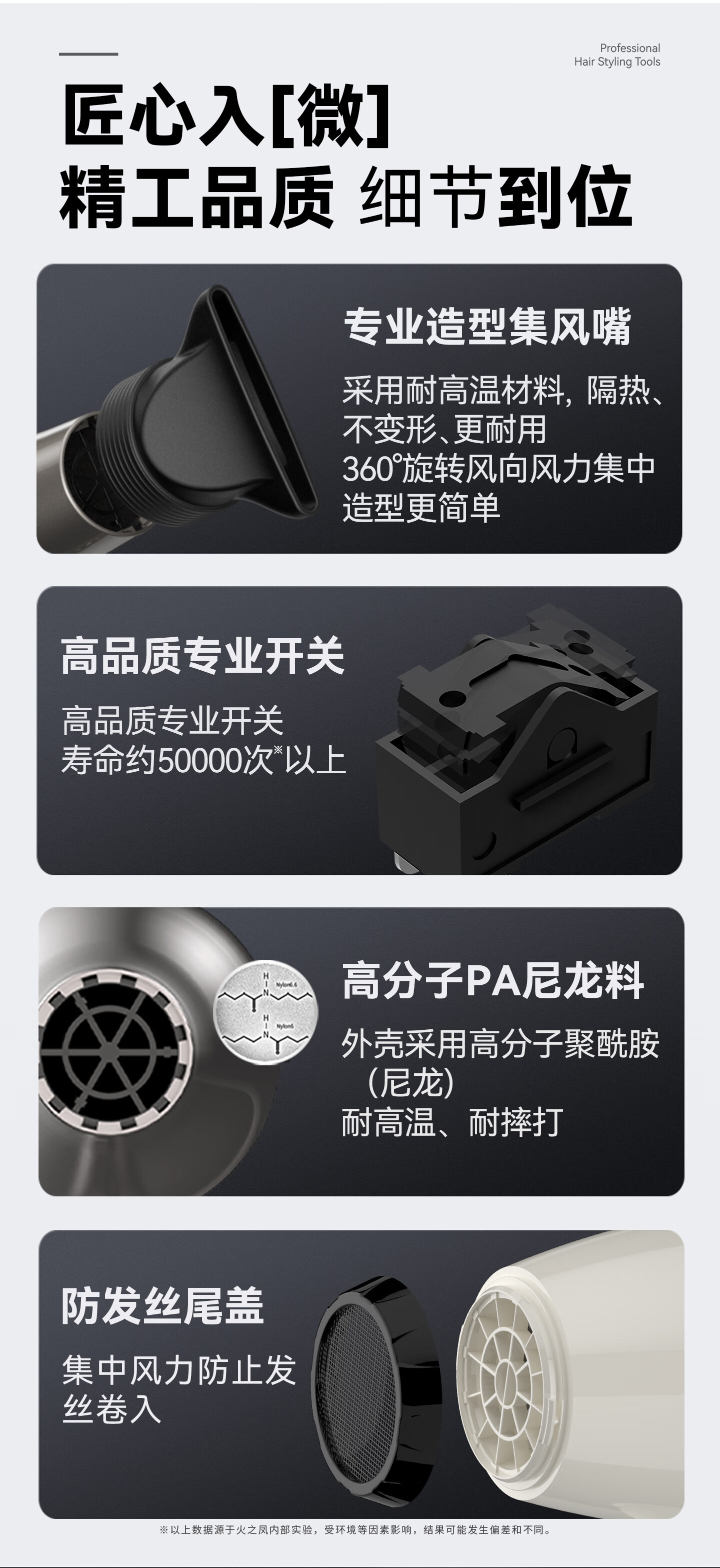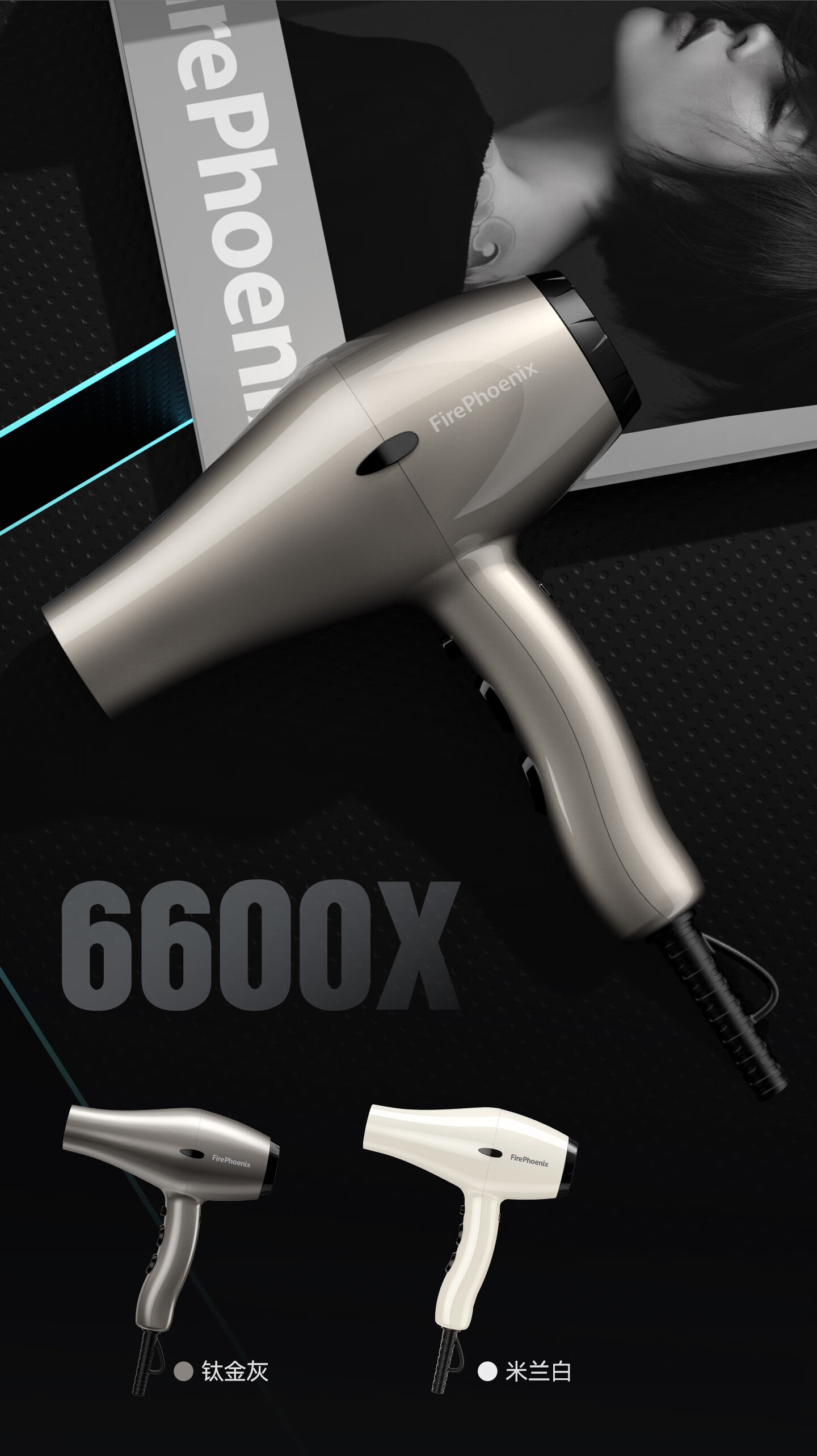 Fire Phoenix 6600X high-speed hair dryer, household high-power 2400W hair salon, large air volume, quick drying, low noise, barber shop special hair dryer, constant temperature hair care, no damage to hair 6600H+Milan White (four wind speeds) 6600X