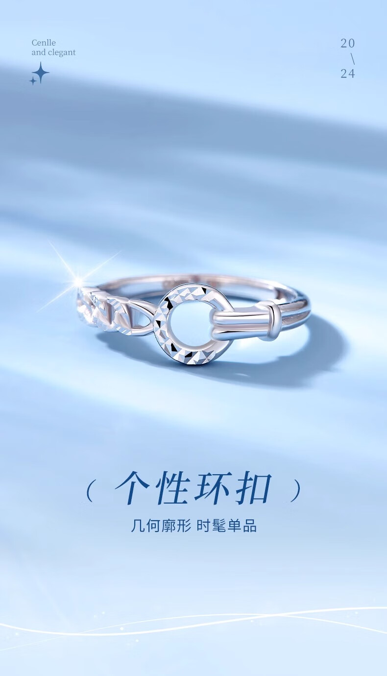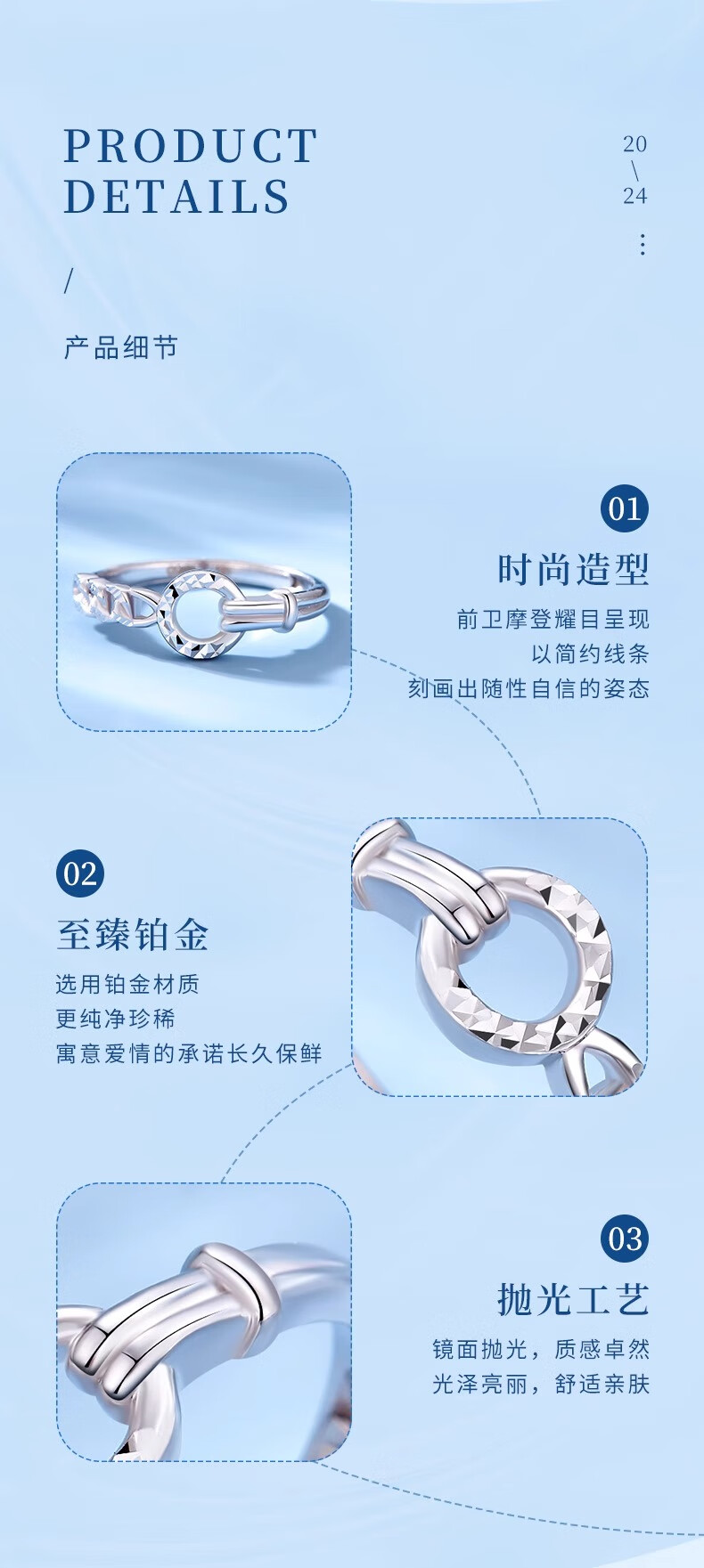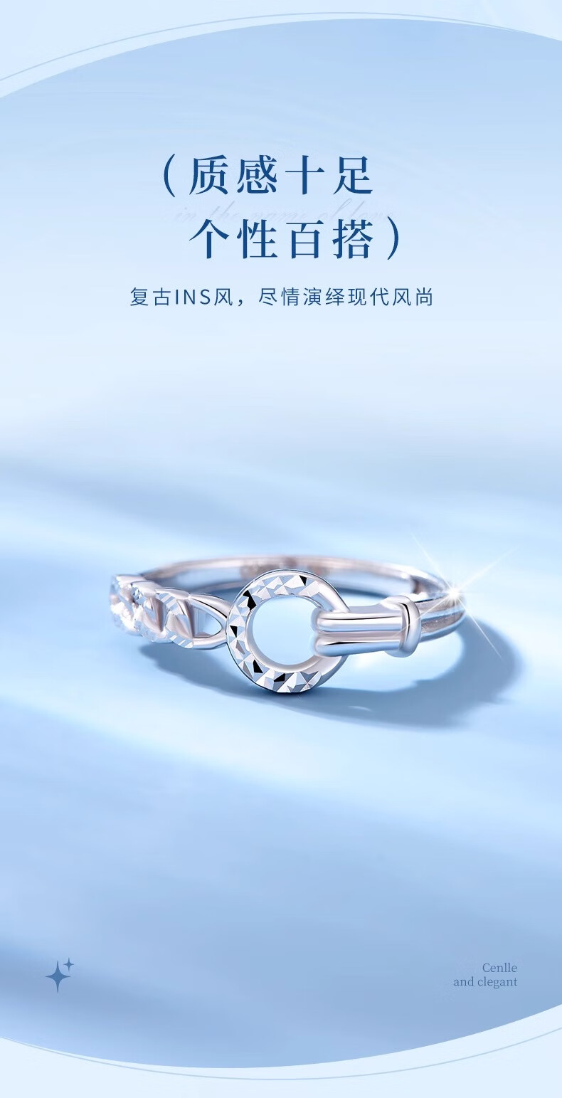 Lao Fengxiang ring buckle pt950 platinum ring new female ring proposal ring Valentine's Day birthday gift for girlfriend and wife ring buckle platinum ring about 3.6g