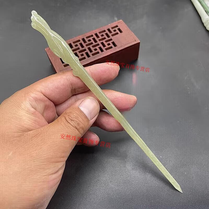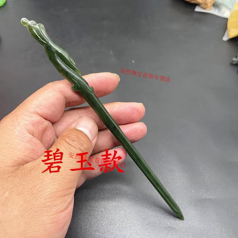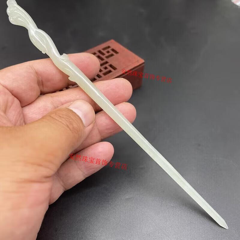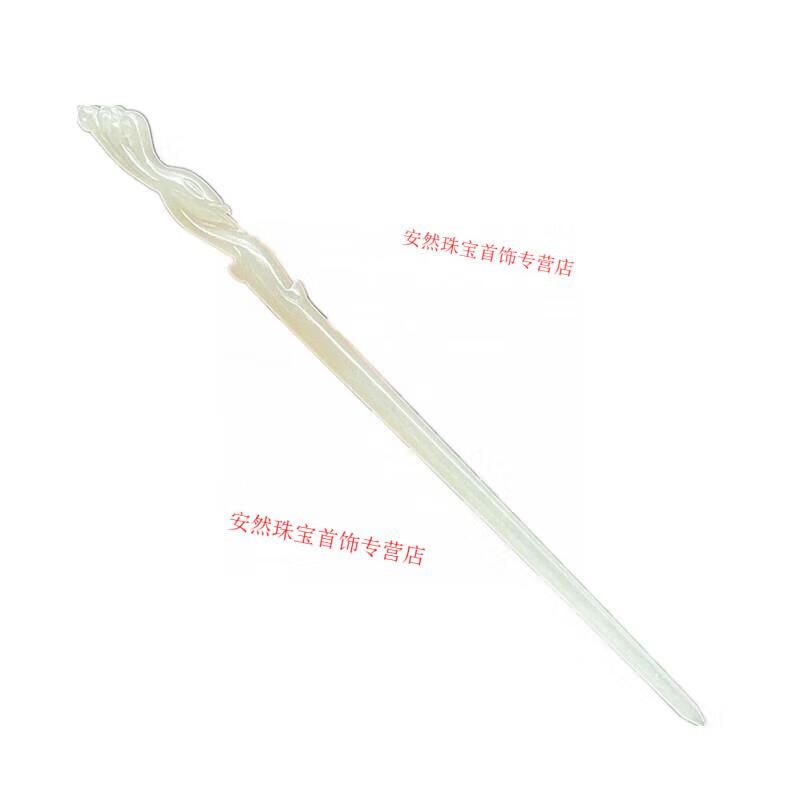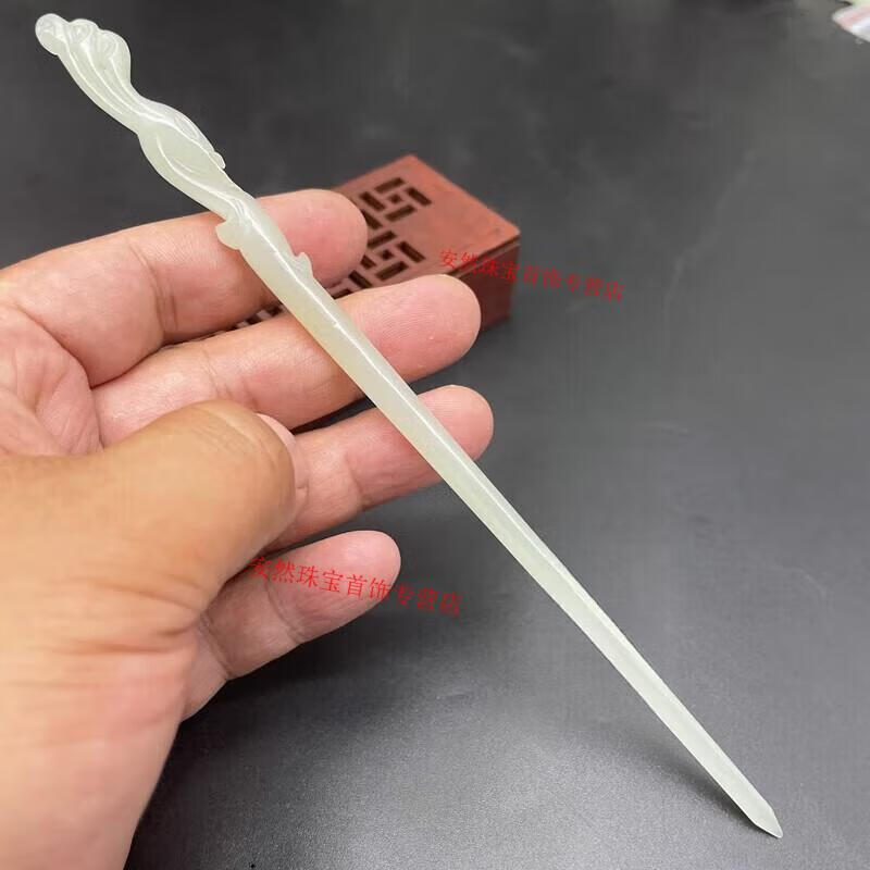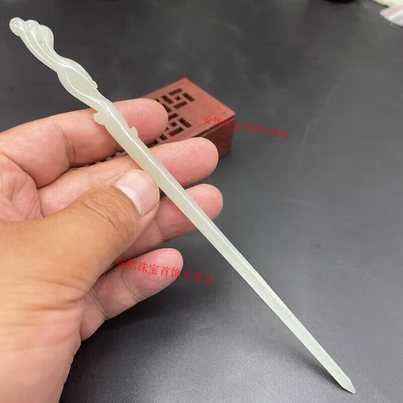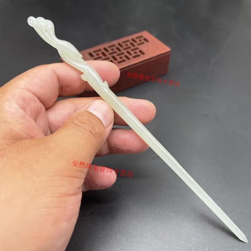 Cijia new style jade hairpin phoenix hairpin headdress hair accessories Hetian jade green and white jade phoenix head ancient style Hanfu hair insert blue and white jade single + gift box