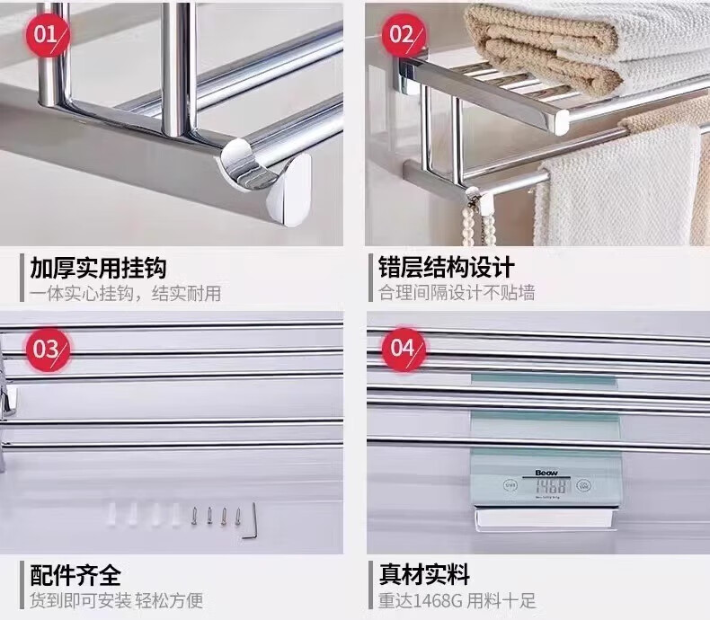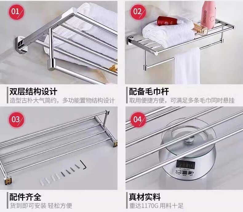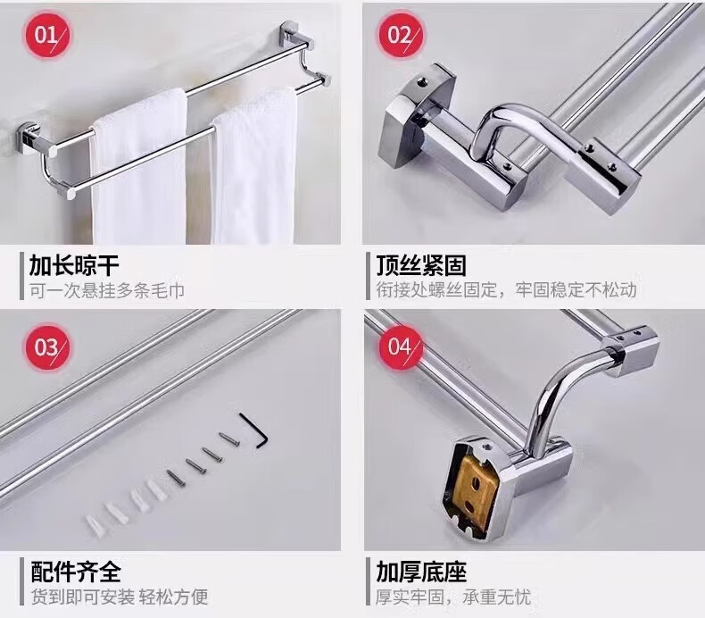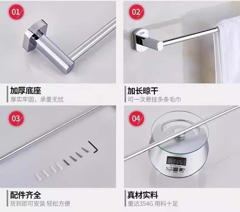GROHE Bathroom Copper Towel Rack Bathroom Towel Rack Single and Double Rod Hotel Engineering Bathroom Hardware Pendant Copper Classic Silver-Towel Rack Single Rod 60cm (Punched