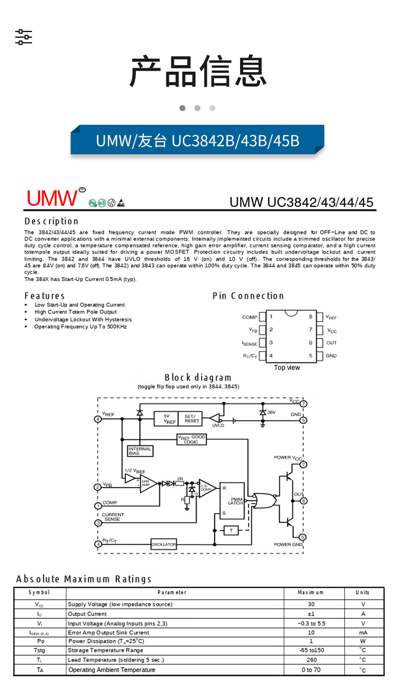 Original genuine UMW UC3842B 3843B 3845B 2843B 2842B SMD SOP8 UMW/Friend Taiwan UC3842B SOP-8 (5 pieces)