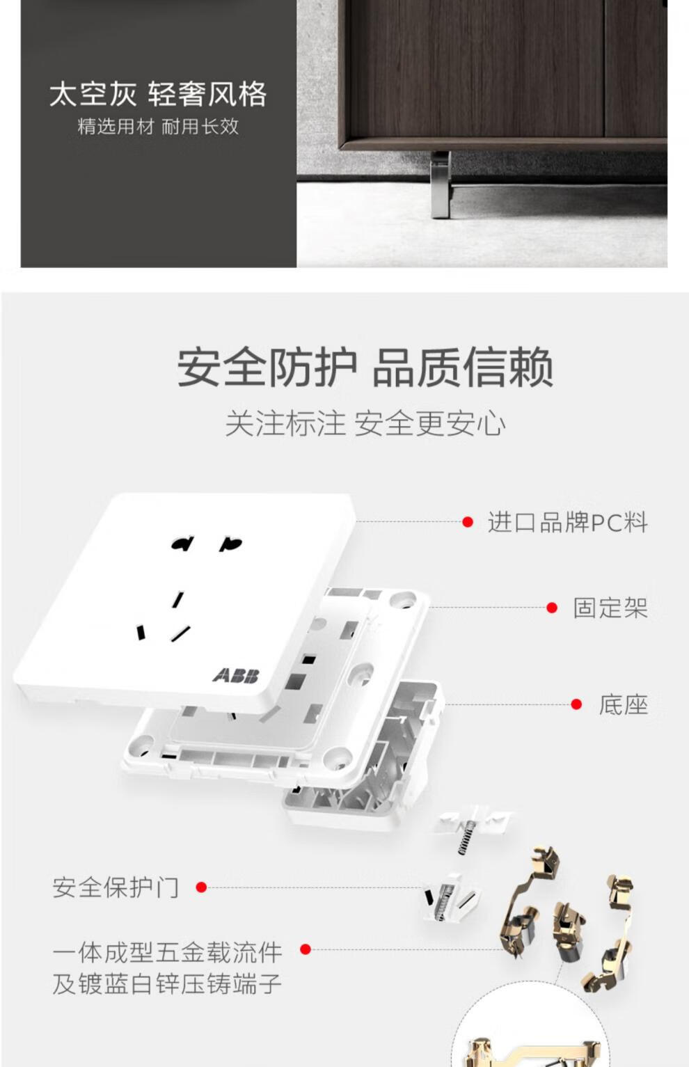 Shantou Lincun ABB switch socket Junzhi space gray one open two open five-hole USB pure flat panel household dark positive five-hole AZ207-MG 1 piece