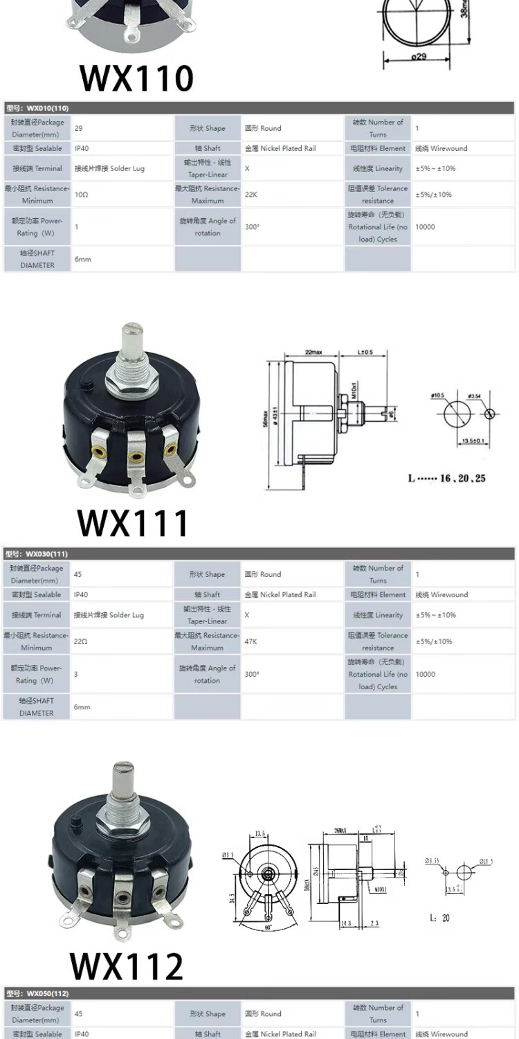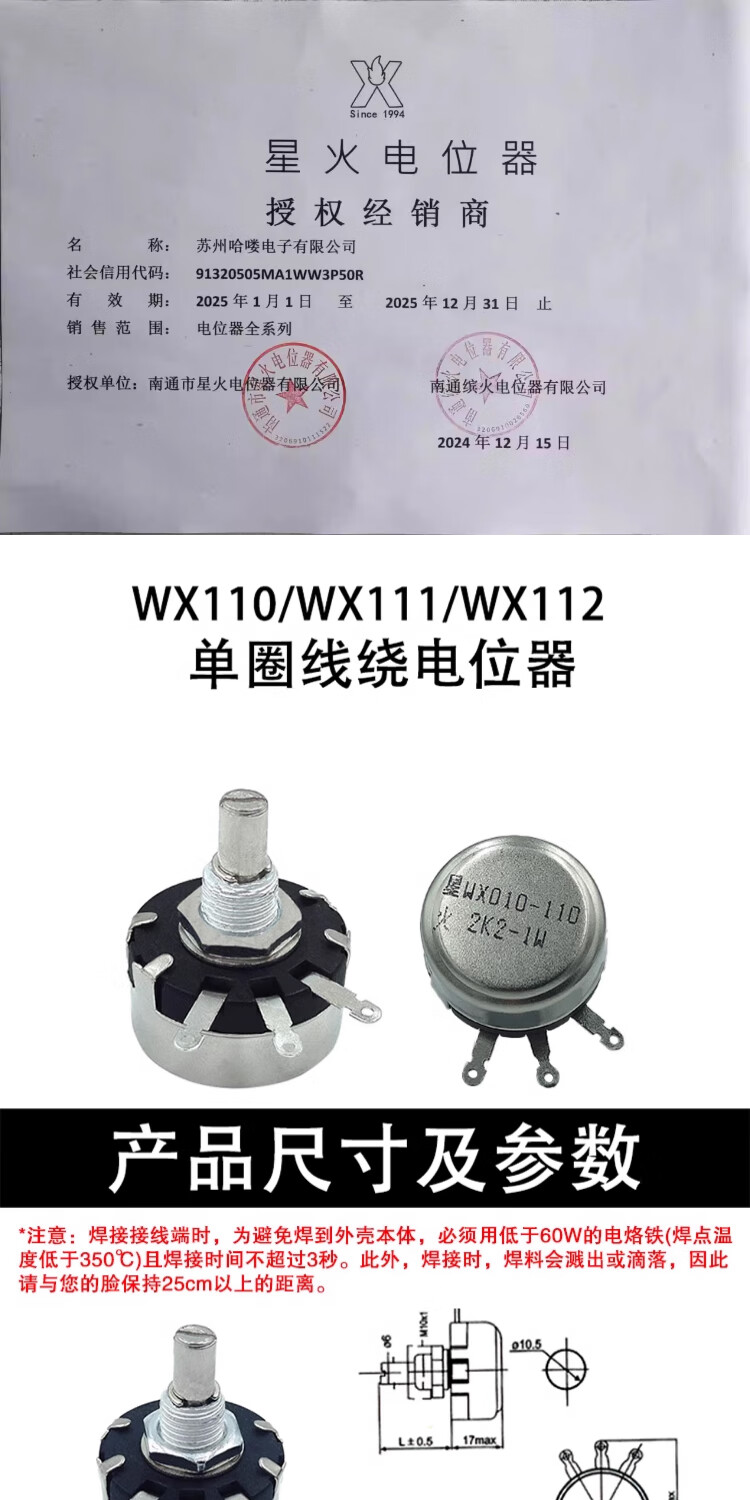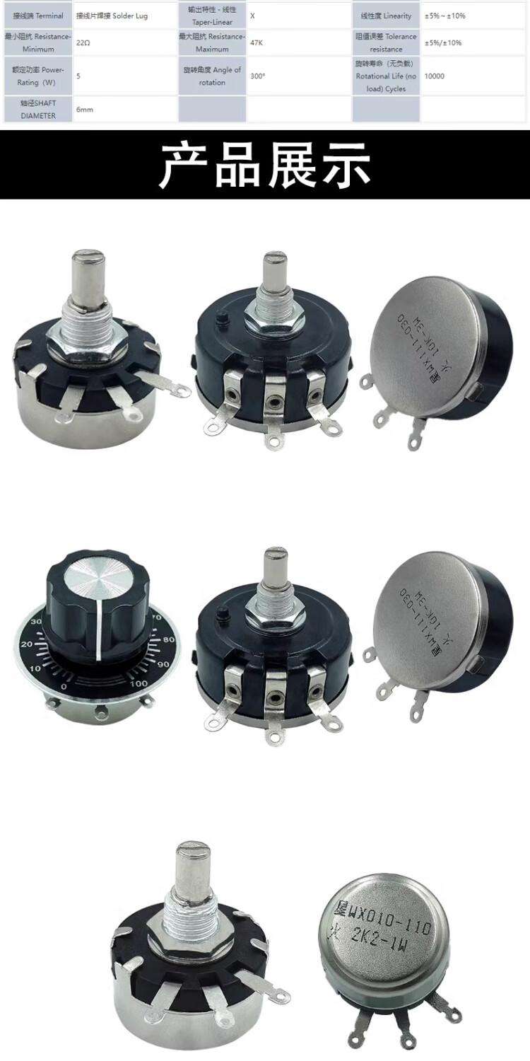 Nantong Spark WX110(010)/WX111(030)/WX112(050) single-turn wire-wound potentiometer WX112+knob+scale 4K7