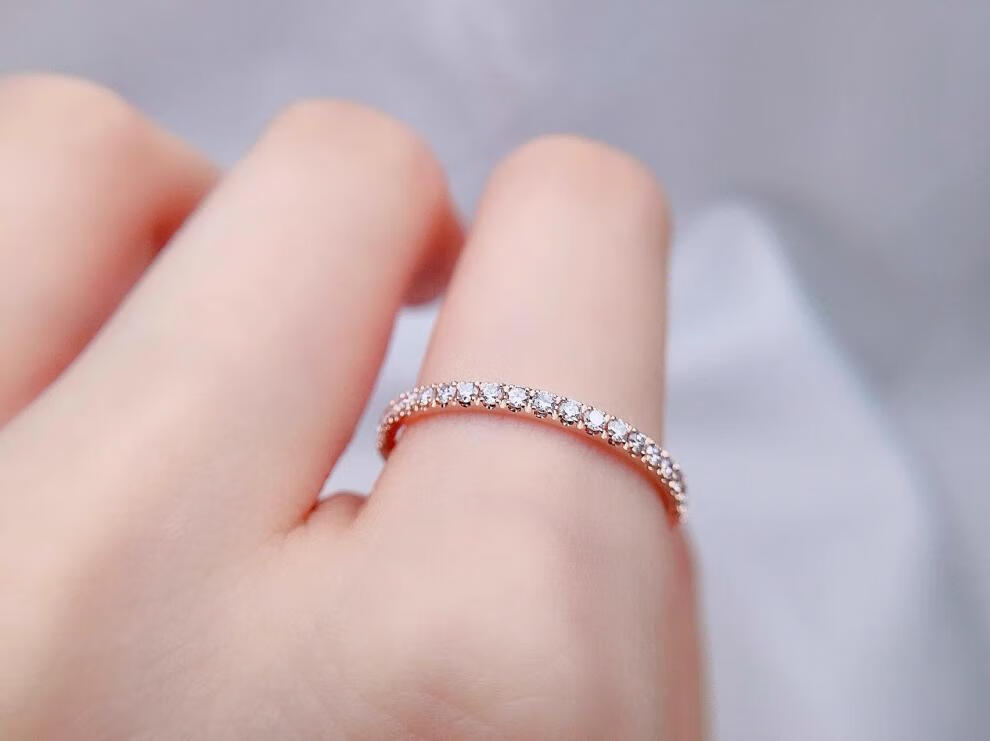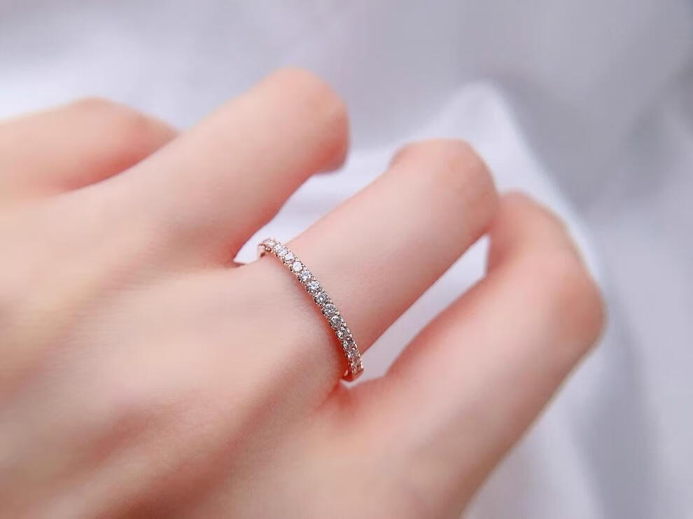 Fat Donglai's same style 18k gold ring Zhou Huanfu K female Au rose gold diamond ring tail ring as a gift for girlfriend. Rose gold diamond plain ring ring No. 8