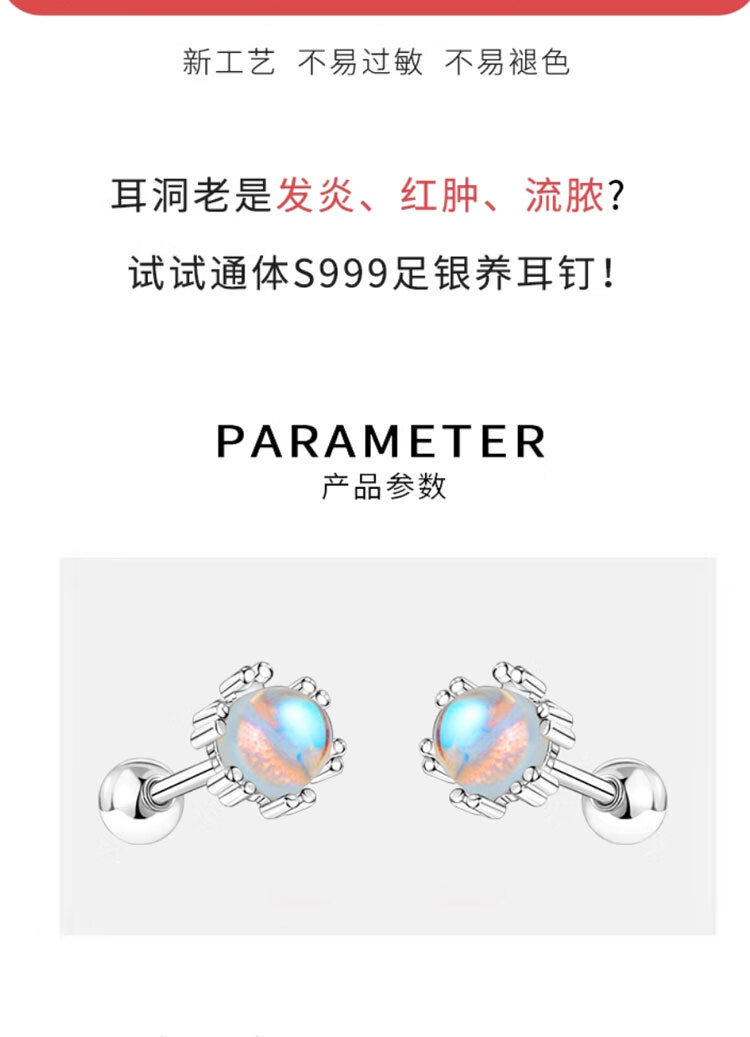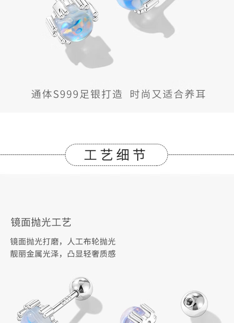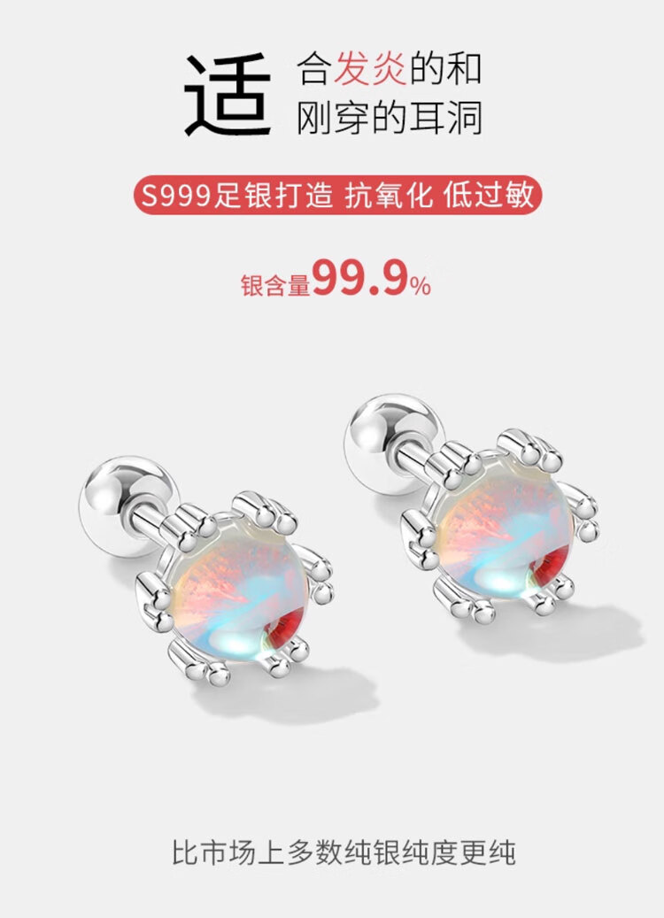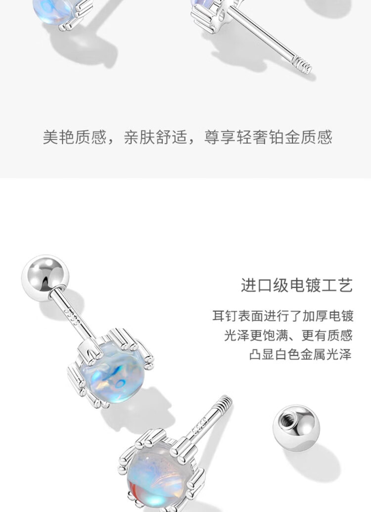 Mansheng 999 sterling silver moonstone earrings for women screw-buckle ear sticks for pierced ears 2026 new earrings ear bone nail earrings S999 pure silver moonstone earrings a pair