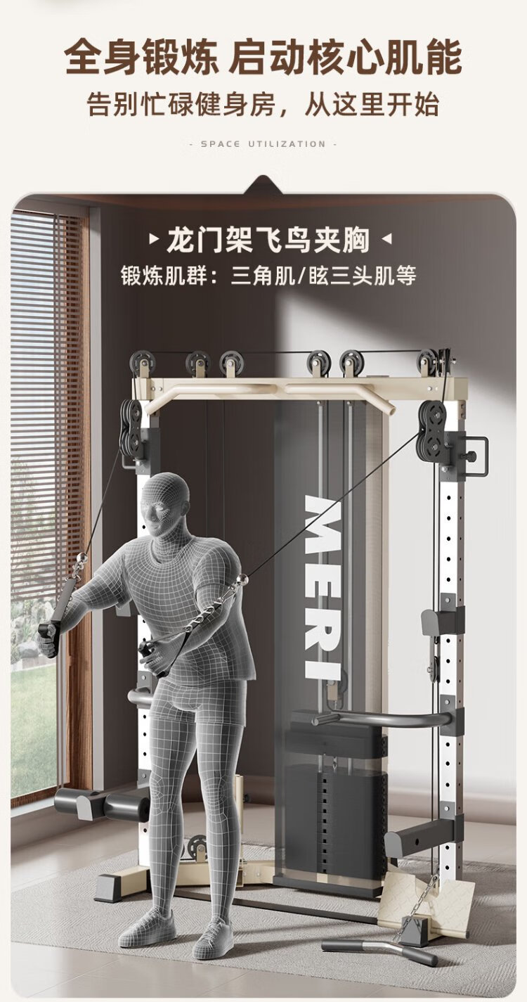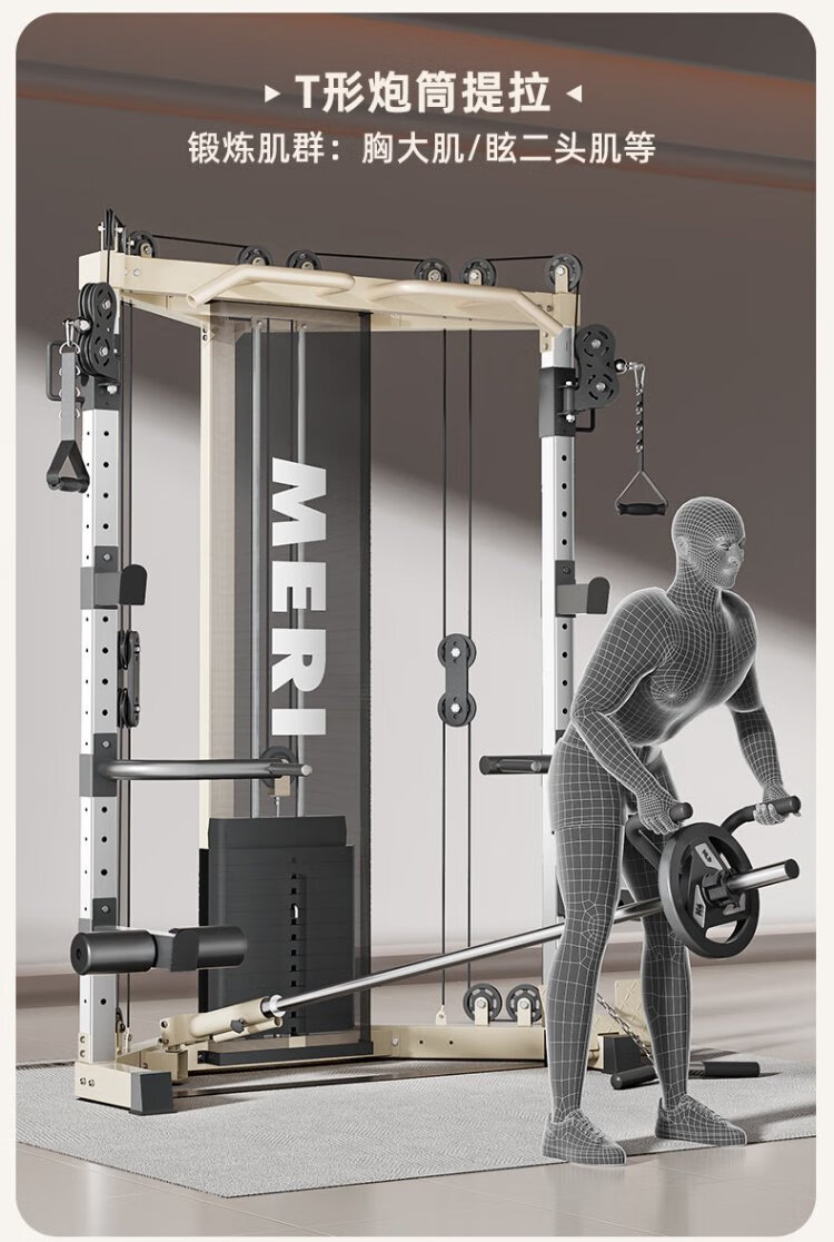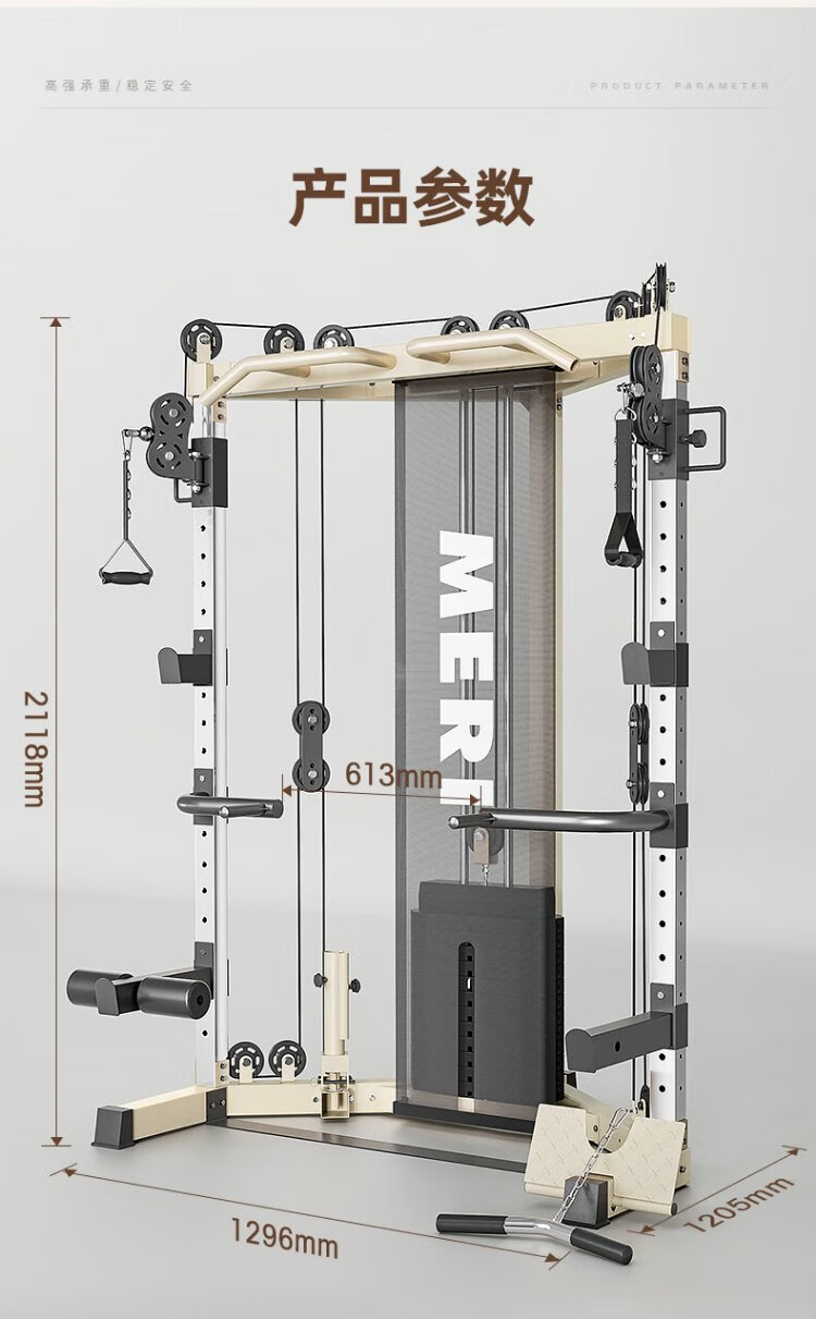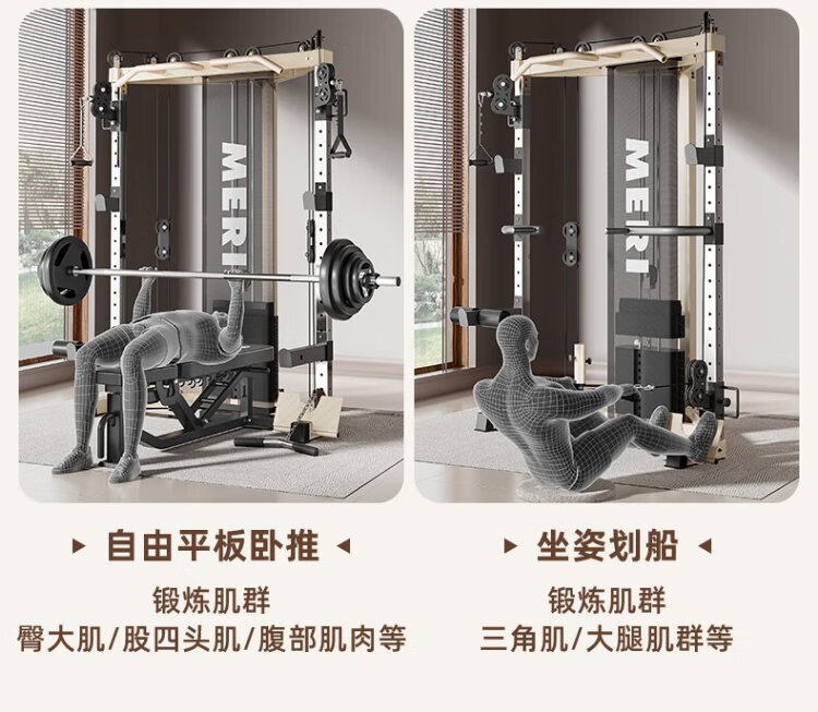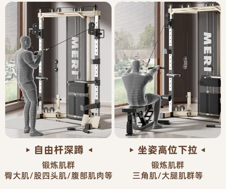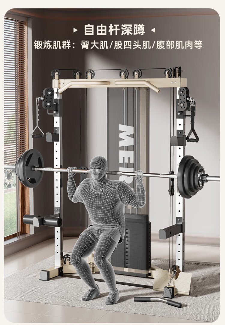 Meride Little Flying Bird Gantry Comprehensive Trainer Fitness Equipment Home Multifunctional All-in-one Machine Squat Bench Press Barbell Rack Professional Model + Austrian Bar + Stool + 100KG Bells Package Installation
