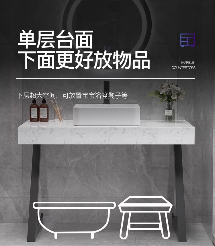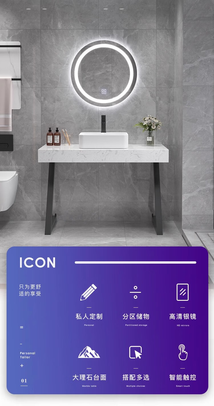 South Sandwich floor-standing wash basin wash basin floor-standing marble wash basin bathroom basin home bathroom hotel B&B 60CM above counter basin ordinary round mirror set